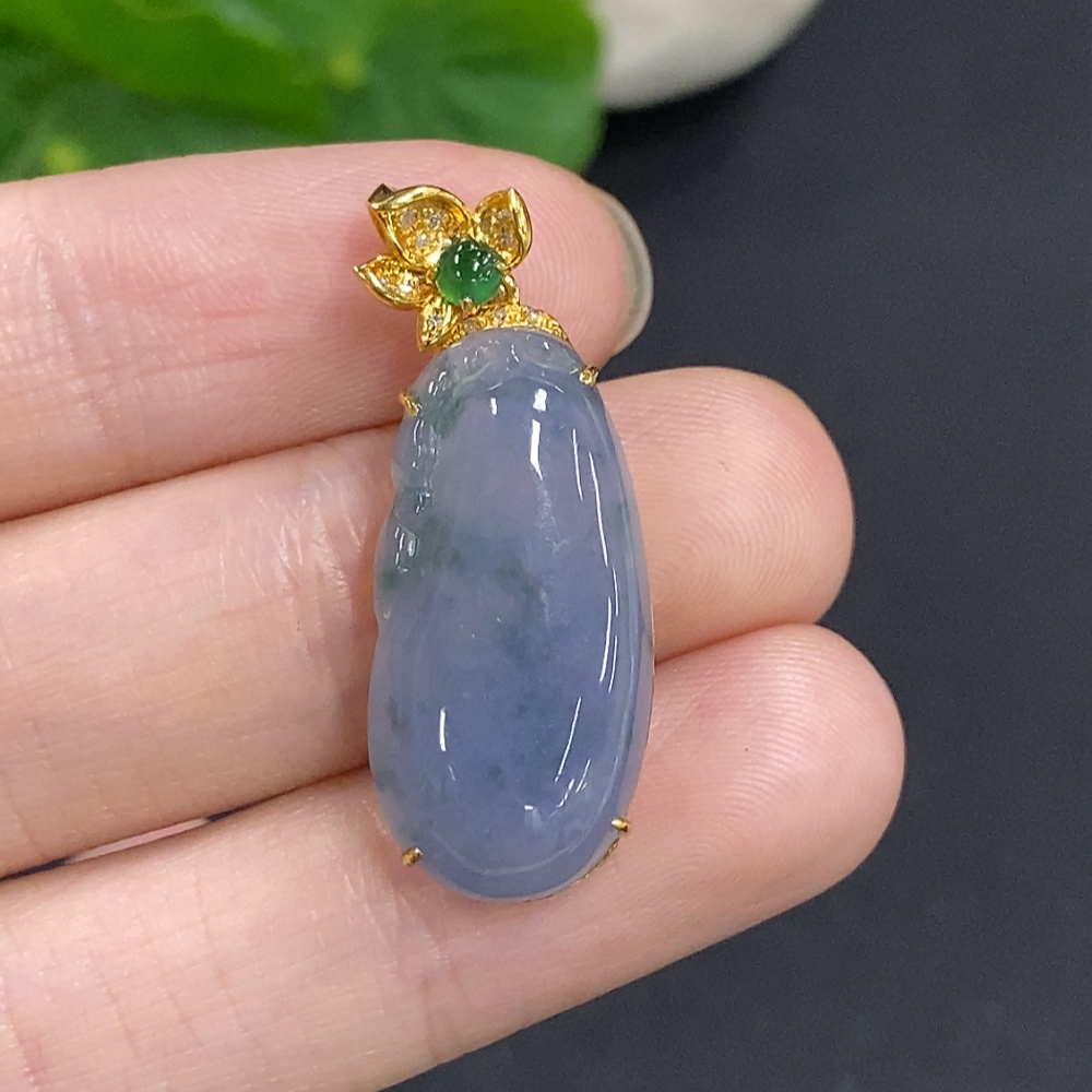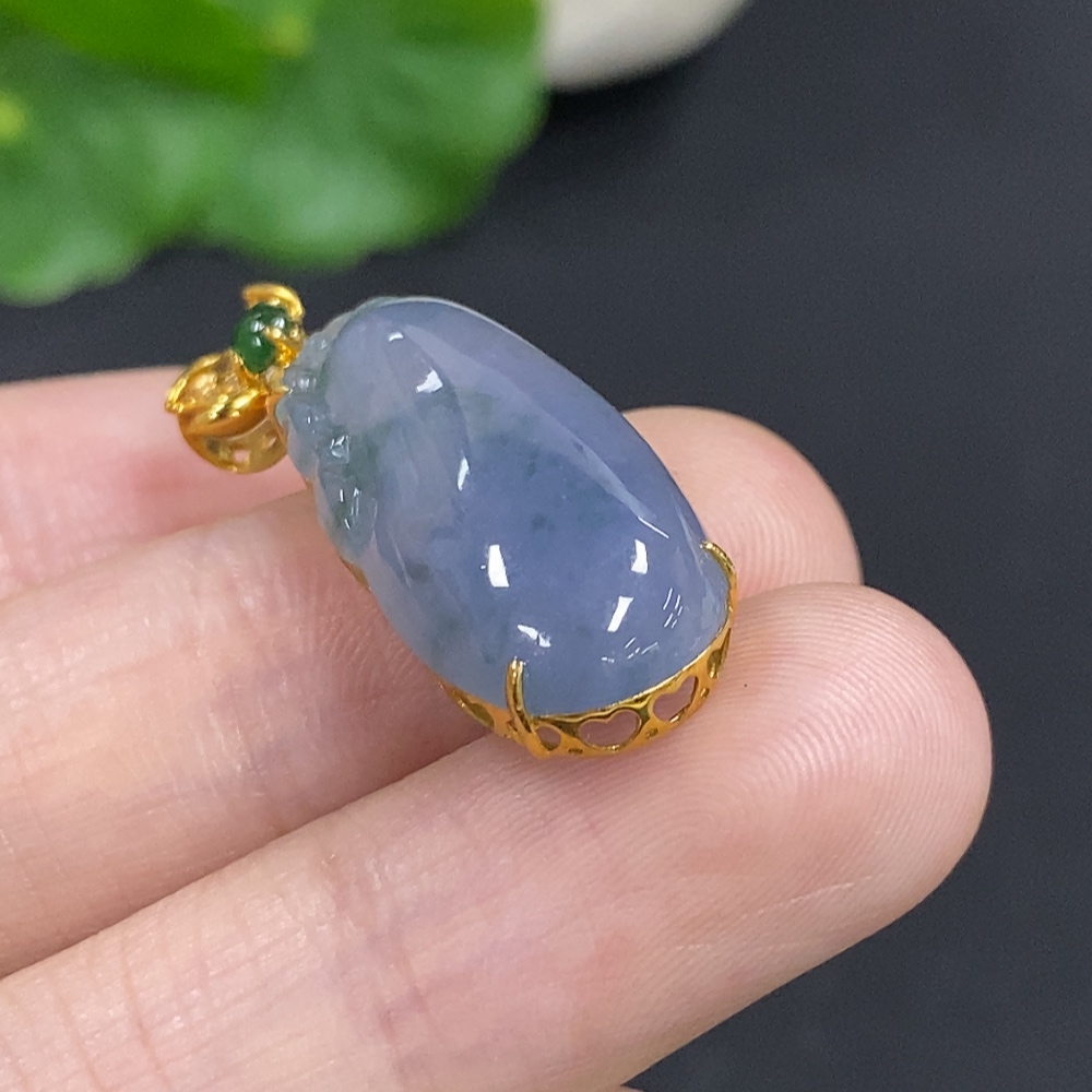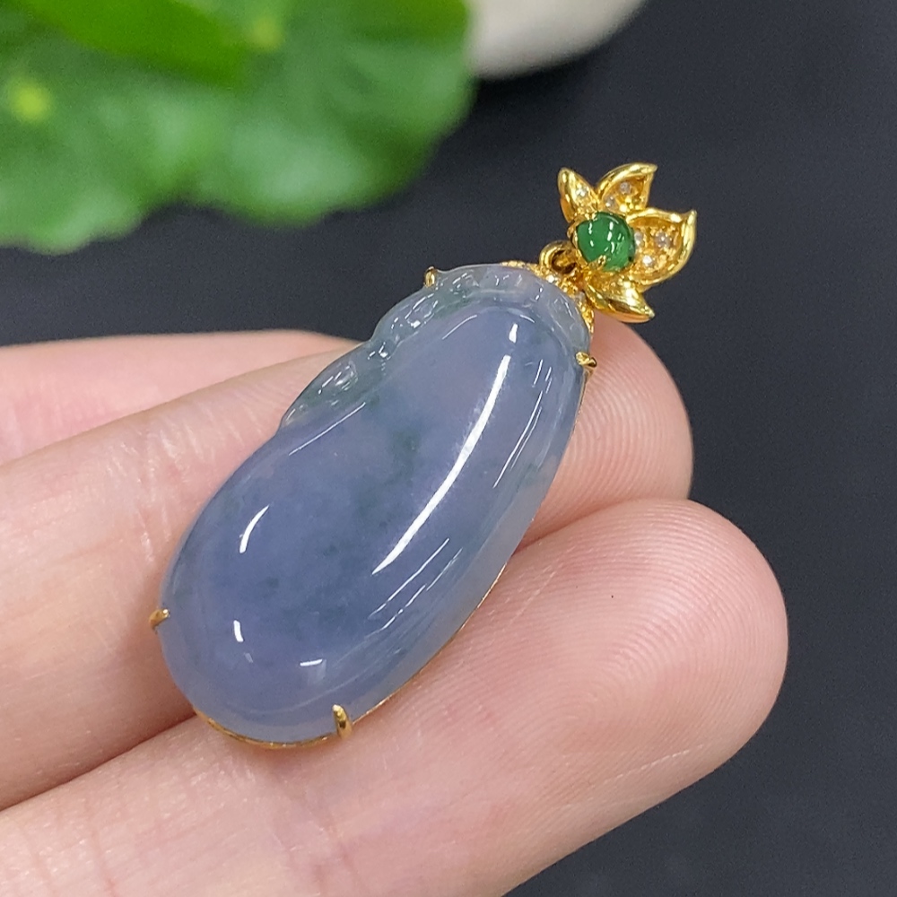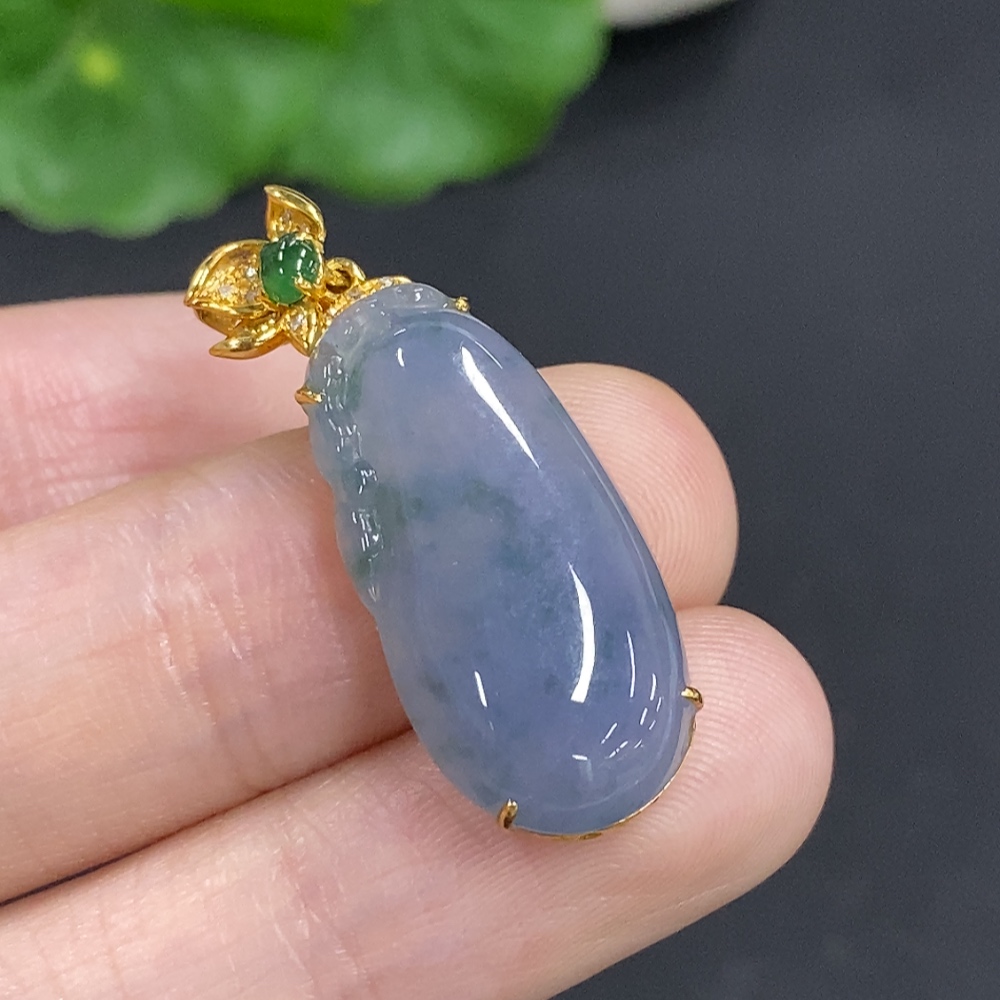 Jadeite Melon Pendant with 18K Gold and Diamond Accents, Total Weight Approx. 4.1g