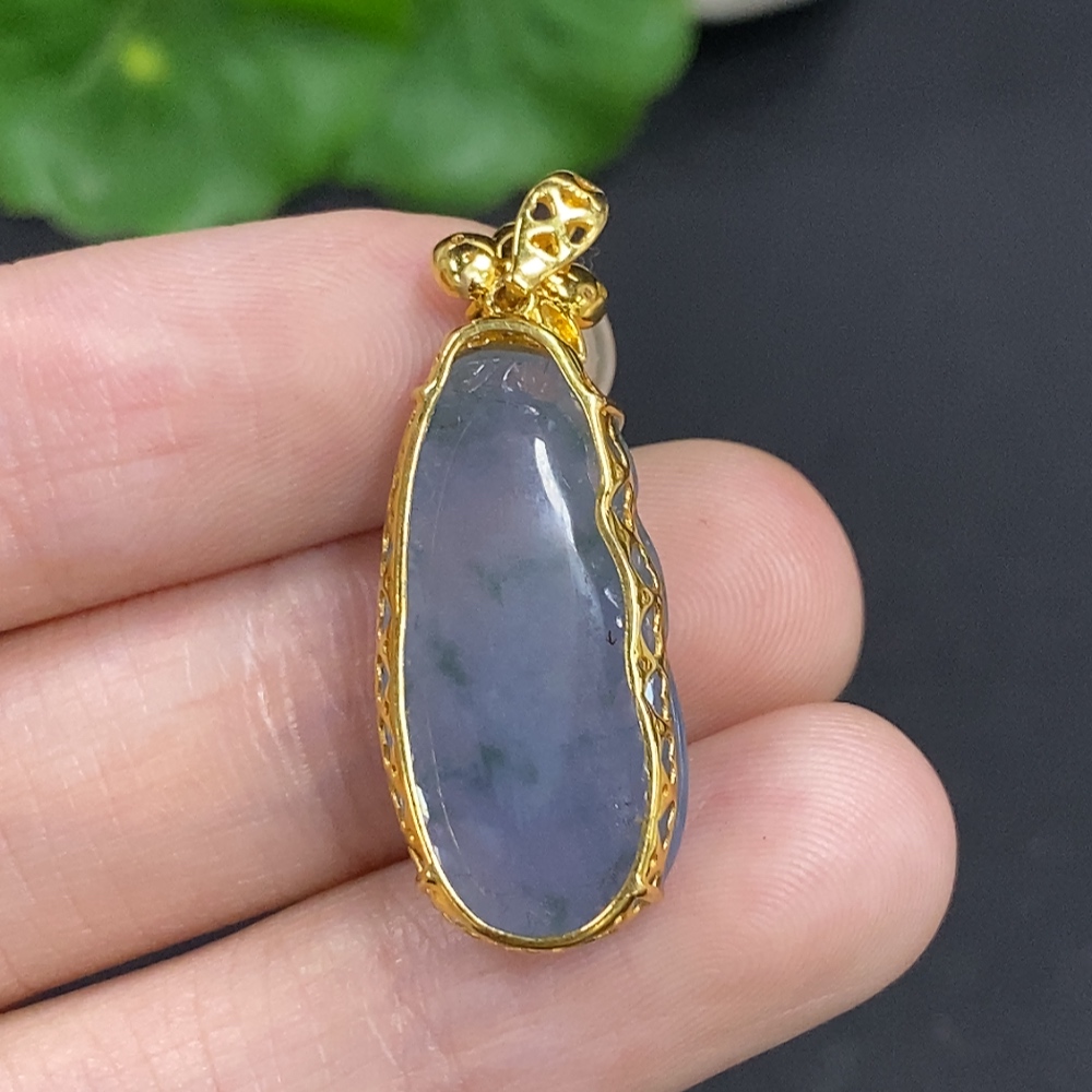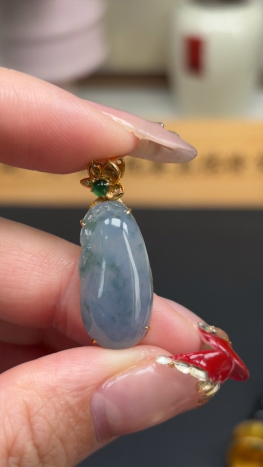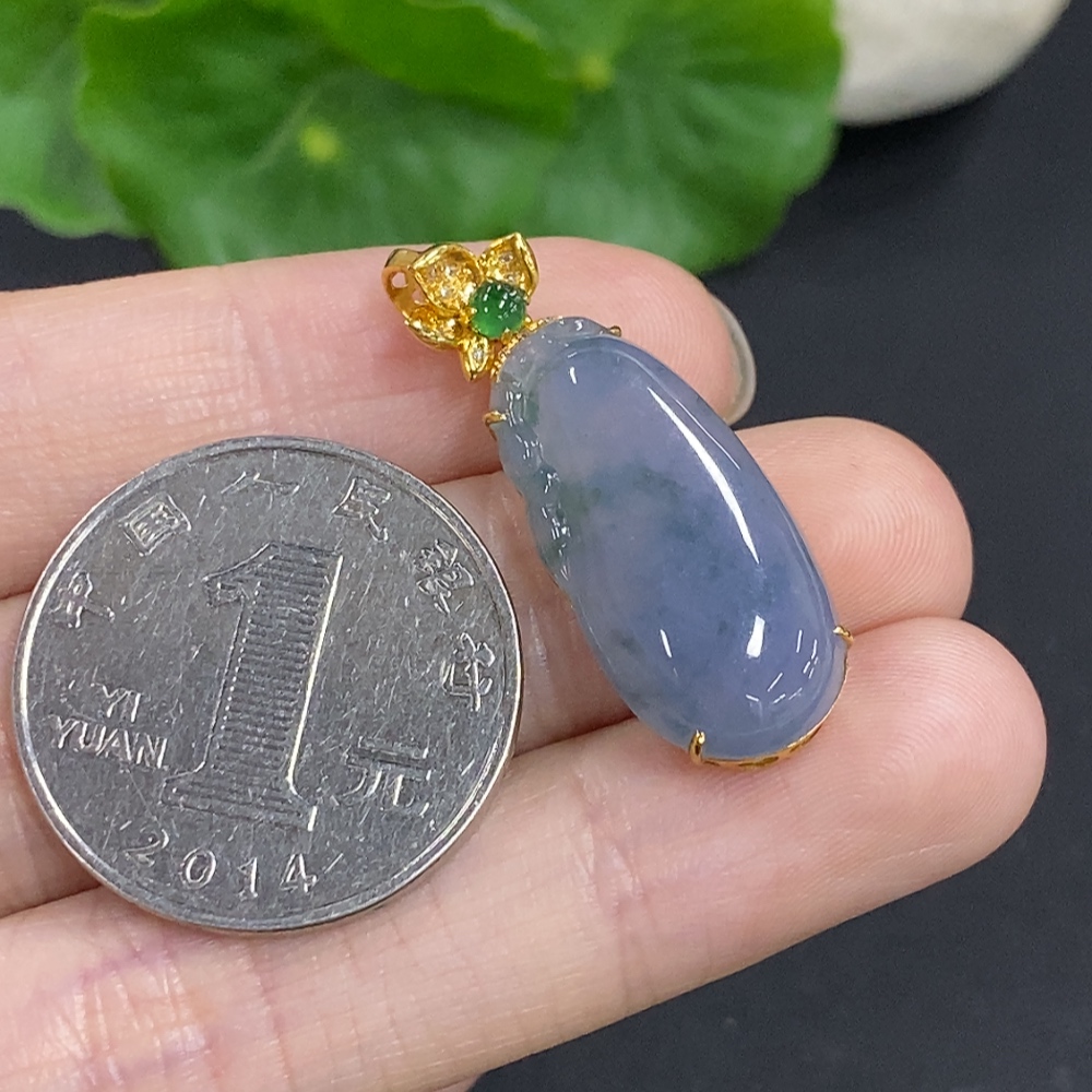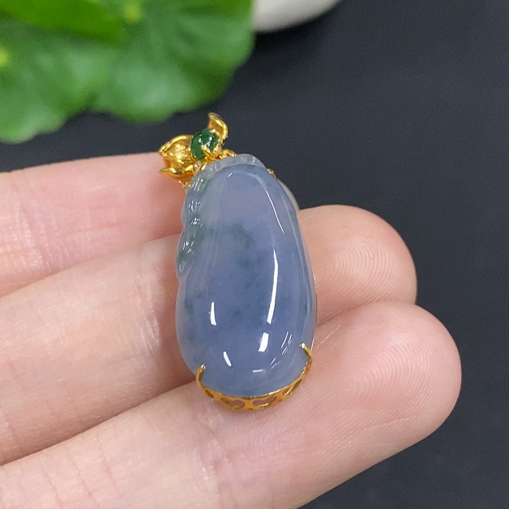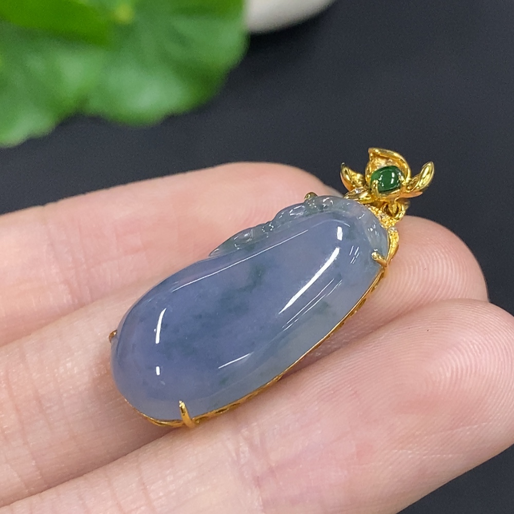 Jadeite Melon Pendant with 18K Gold and Diamond Accents, Total Weight Approx. 4.1g
