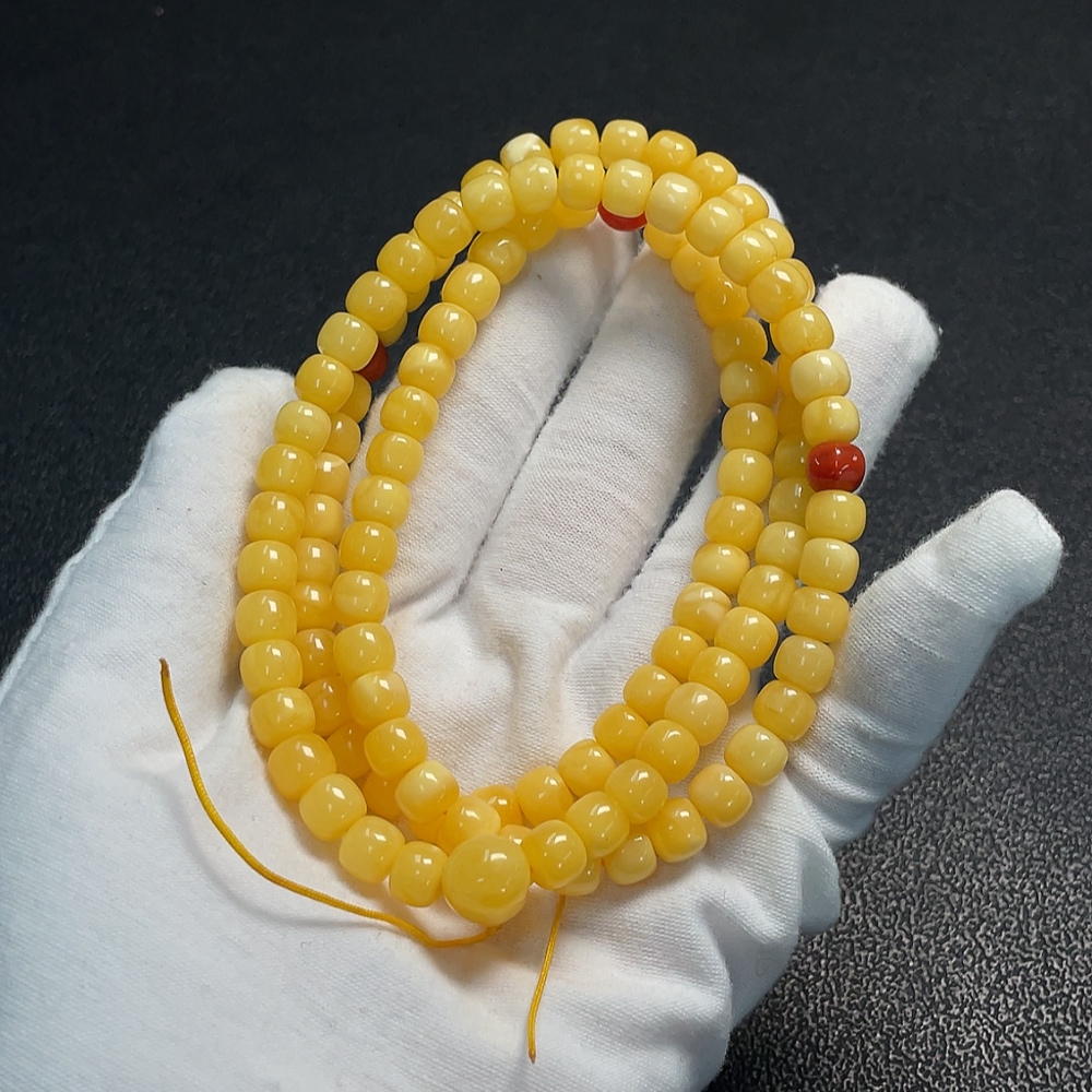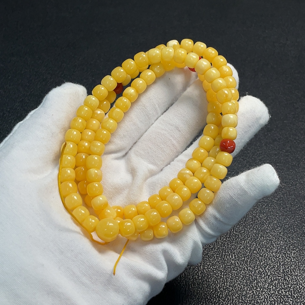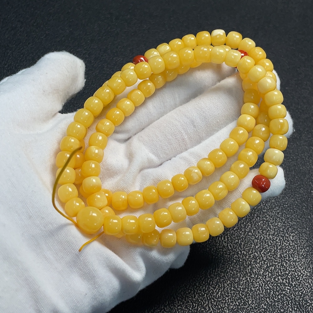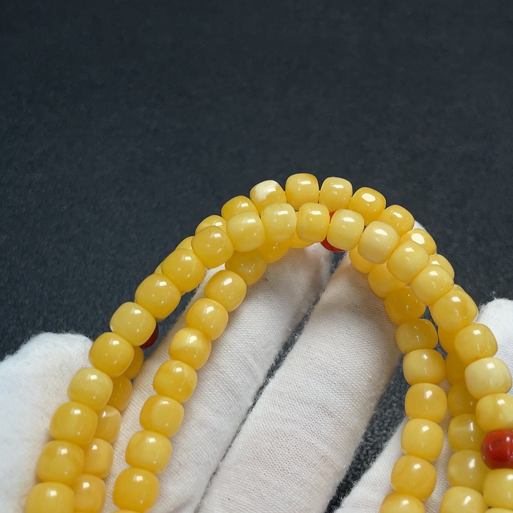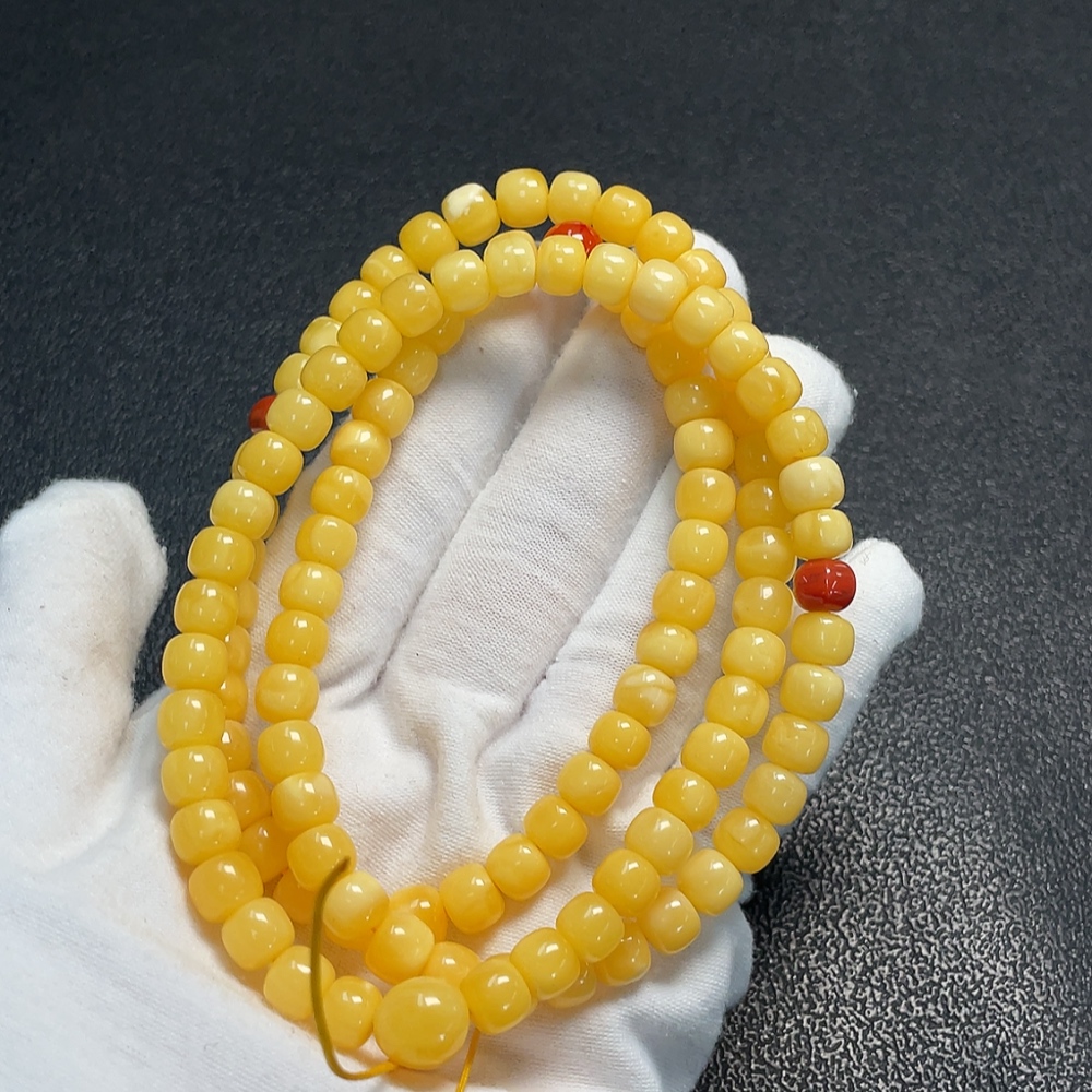 Amber and Beeswax Bead Bracelet with Southern Red Agate, Non-Natural Accent Stones Considered, Total Weight Approx. 25.92g, Size About 7mm