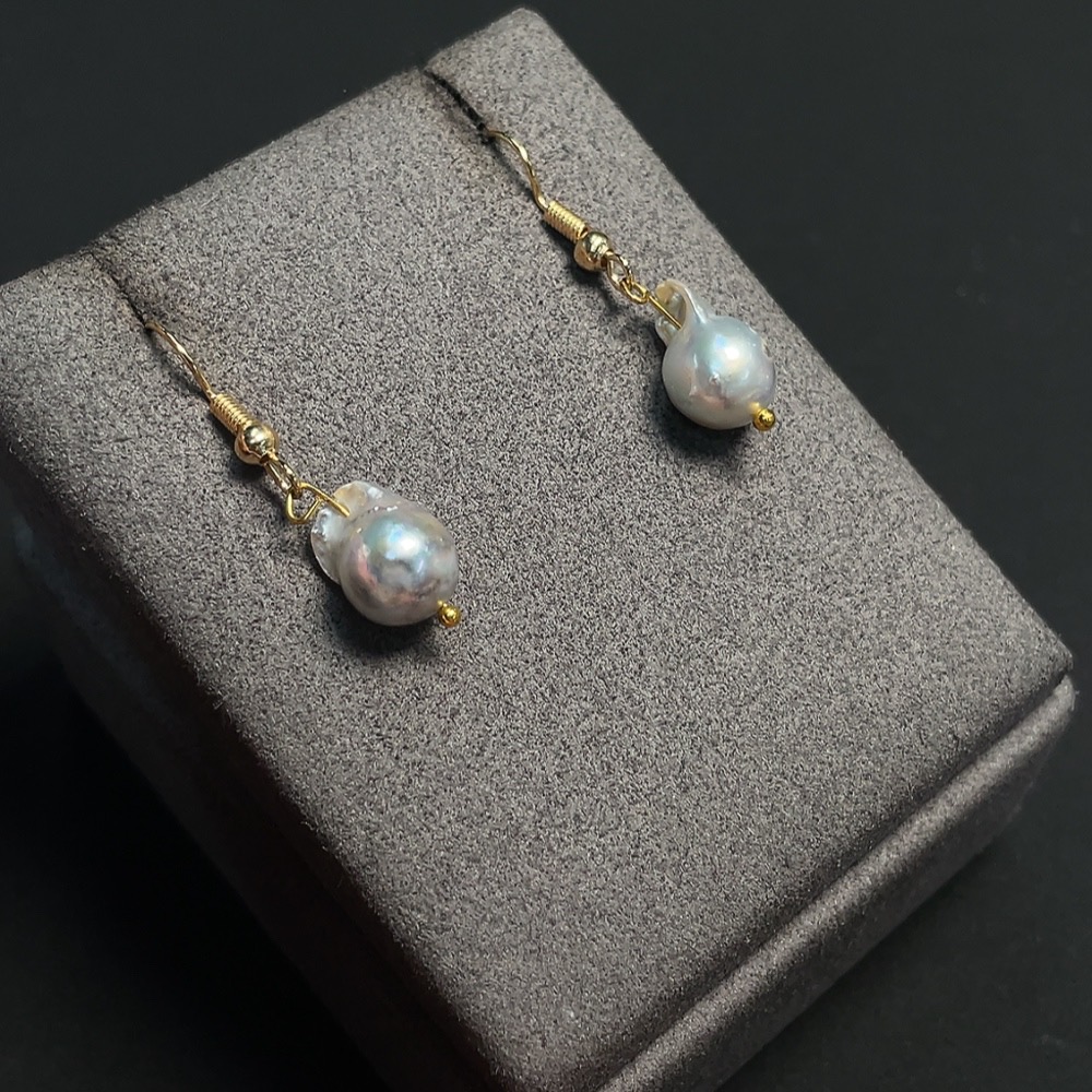 Seawater Pearl Earrings, Non-Gold Setting, Approx. 8.3mm, Total Weight About 2.57g, Color Origin Undetermined