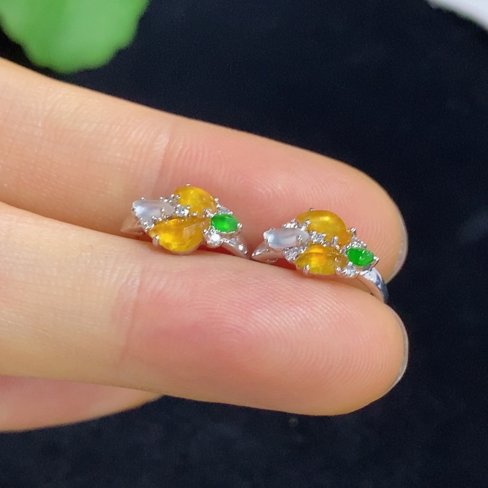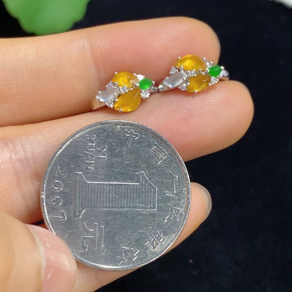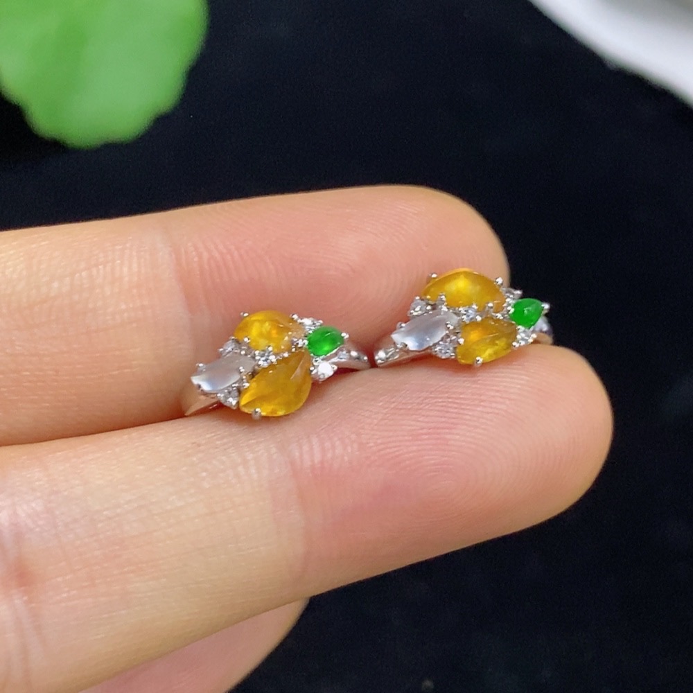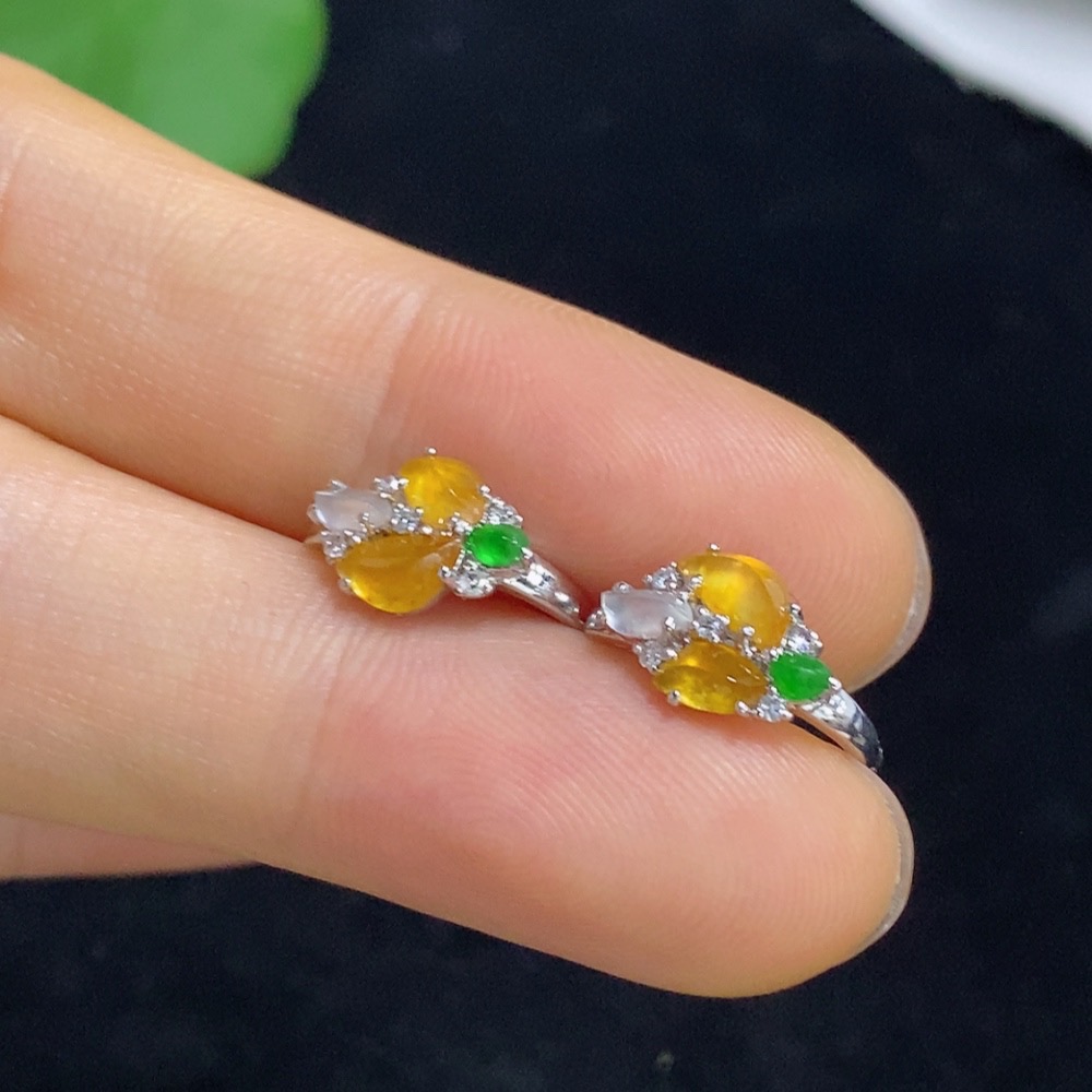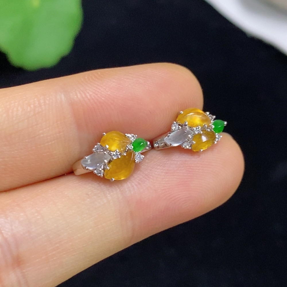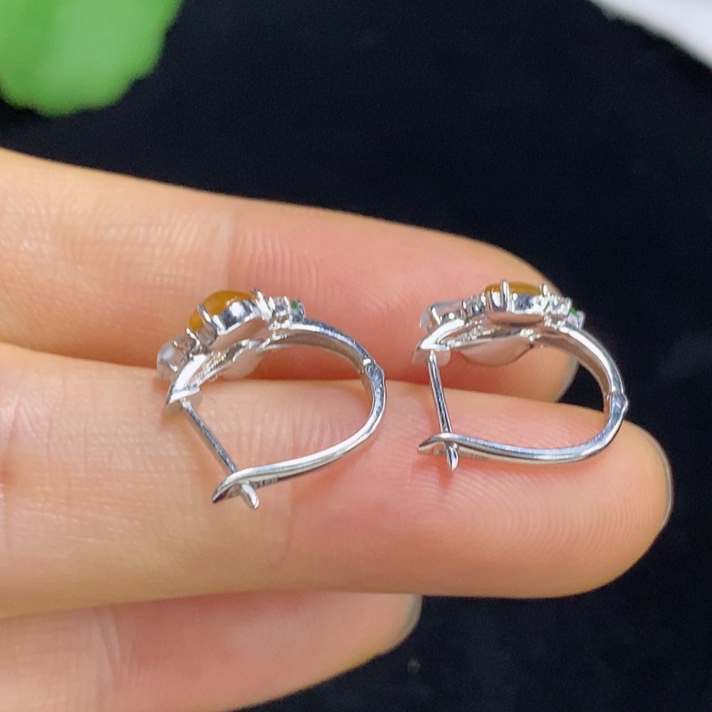 Jadeite ear clips with 18k gold and diamond accents, total weight approximately 2.18 grams