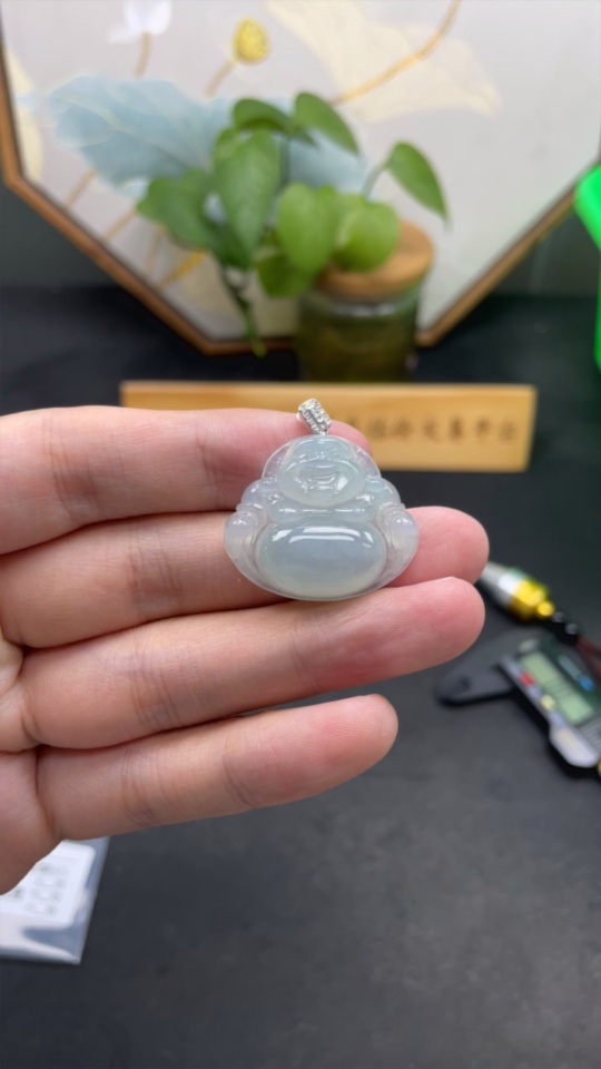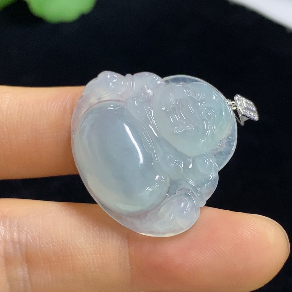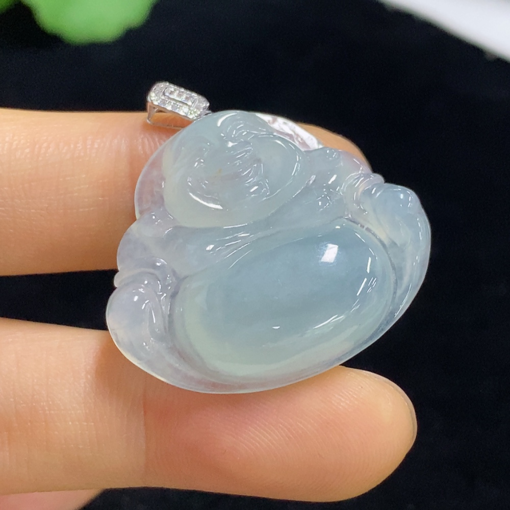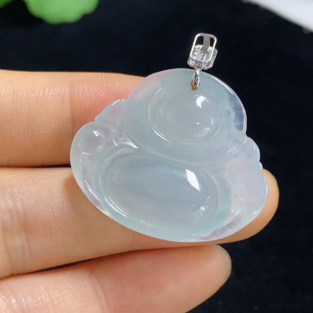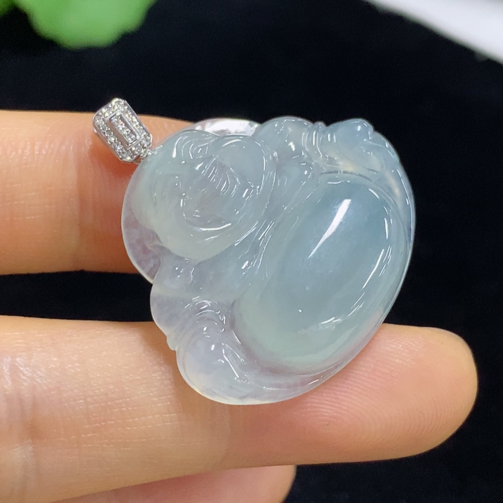 Jadeite Pendant Buddha 18k Diamond Accent Total Weight Approx. 7.46g