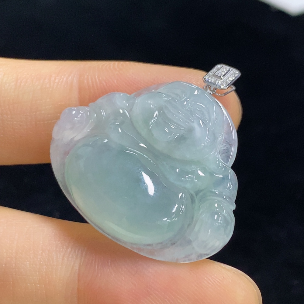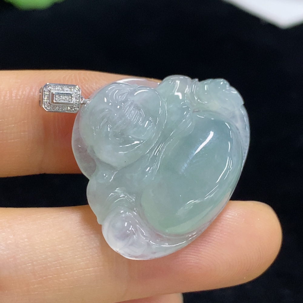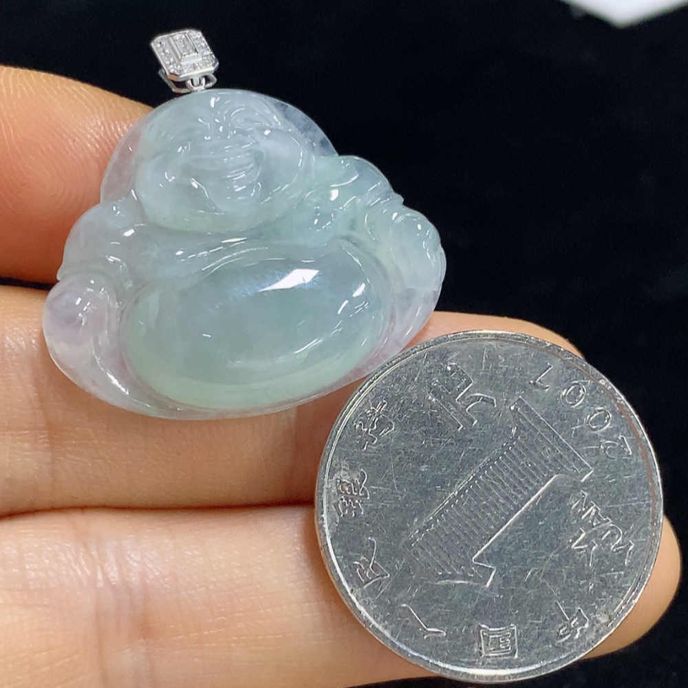 Jadeite Pendant Buddha 18k with Diamond Accents Total Weight Approx. 6.4g