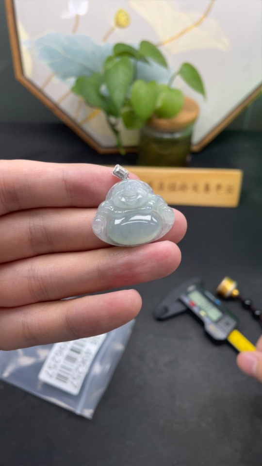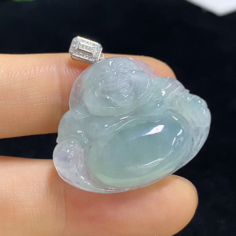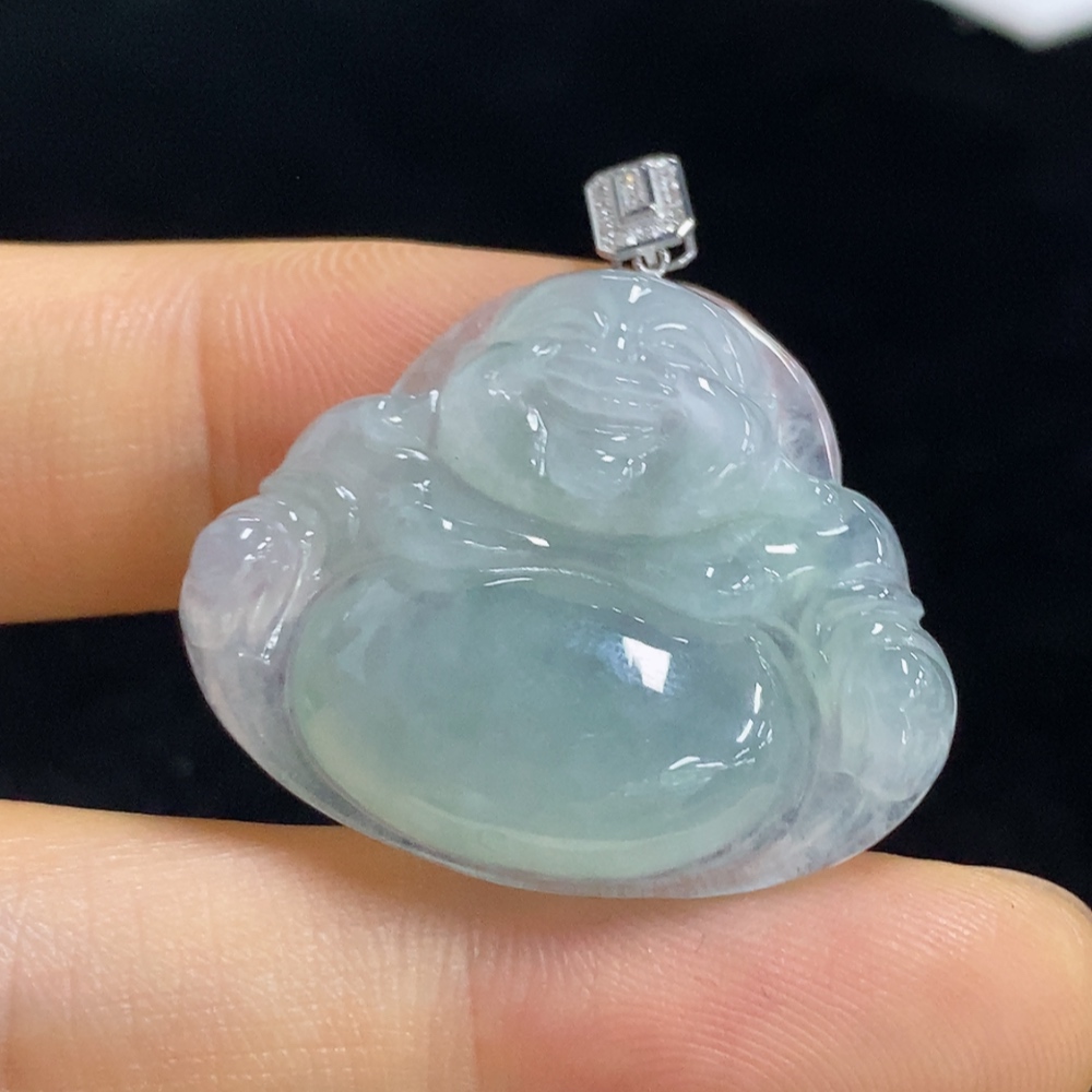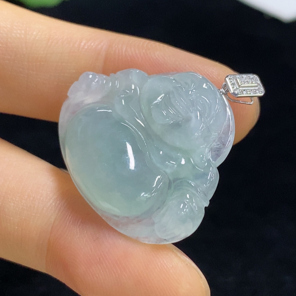 Jadeite Pendant Buddha 18k with Diamond Accents Total Weight Approx. 6.4g