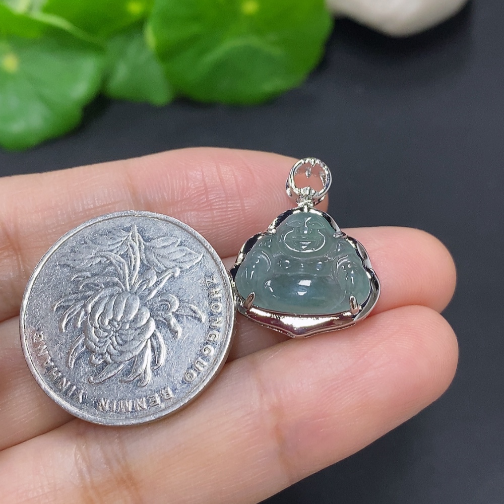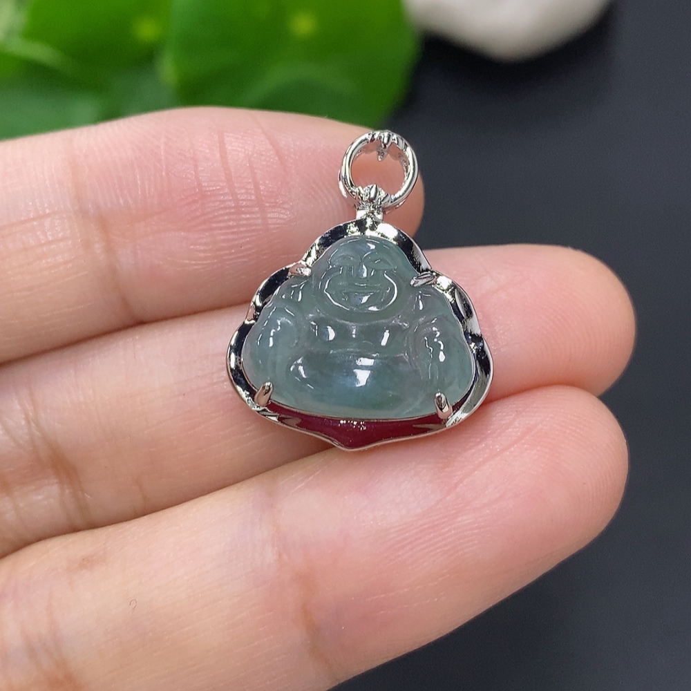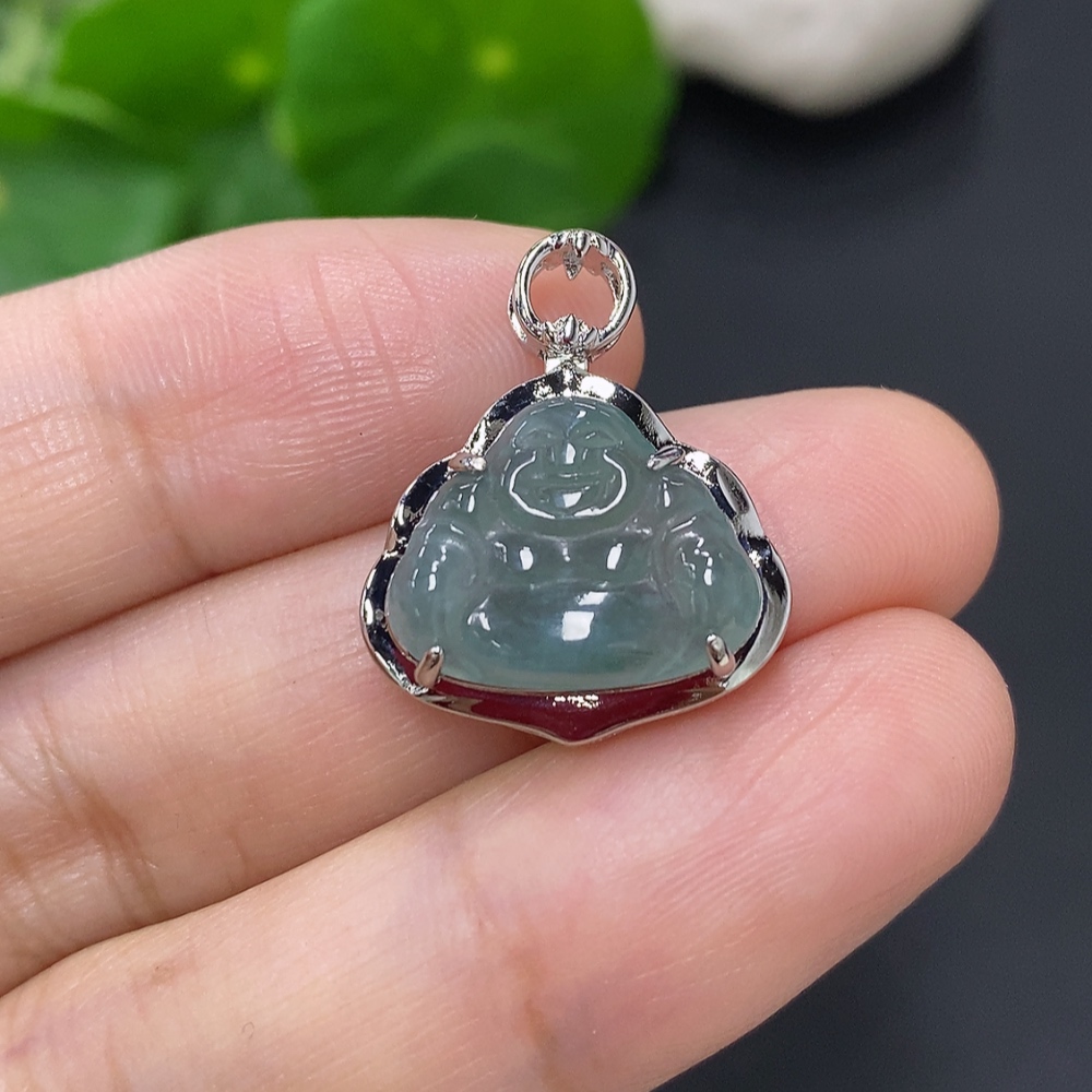 Jadeite Buddha Pendant with Inlay Non-Gold Inlay Total Weight Approximately 1.9g
