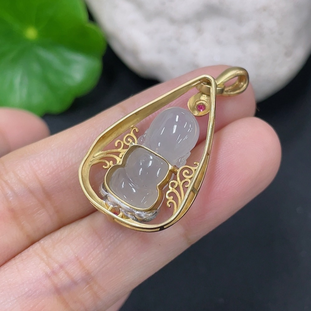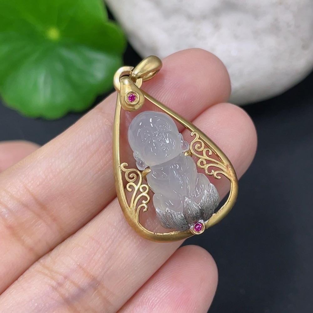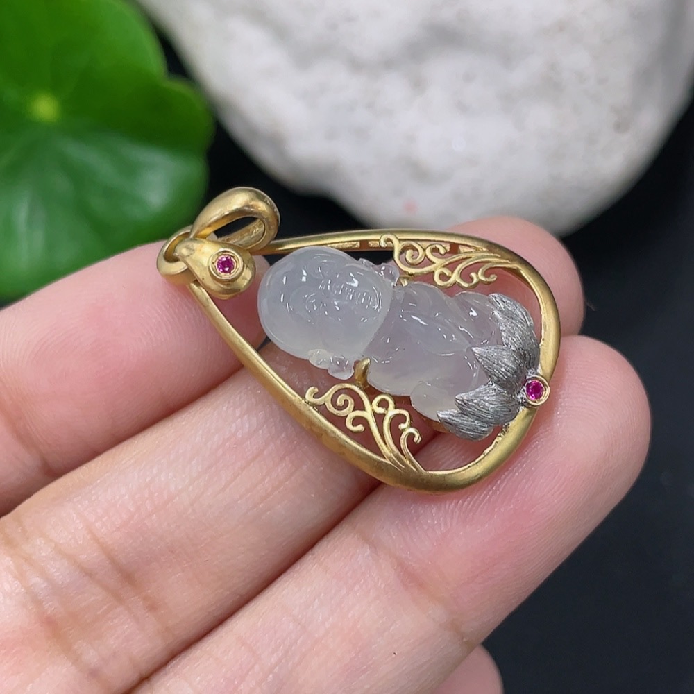 Jadeite Inlaid Pendant Inlaid with approximately 72% Au Total product weight approximately 4.42g