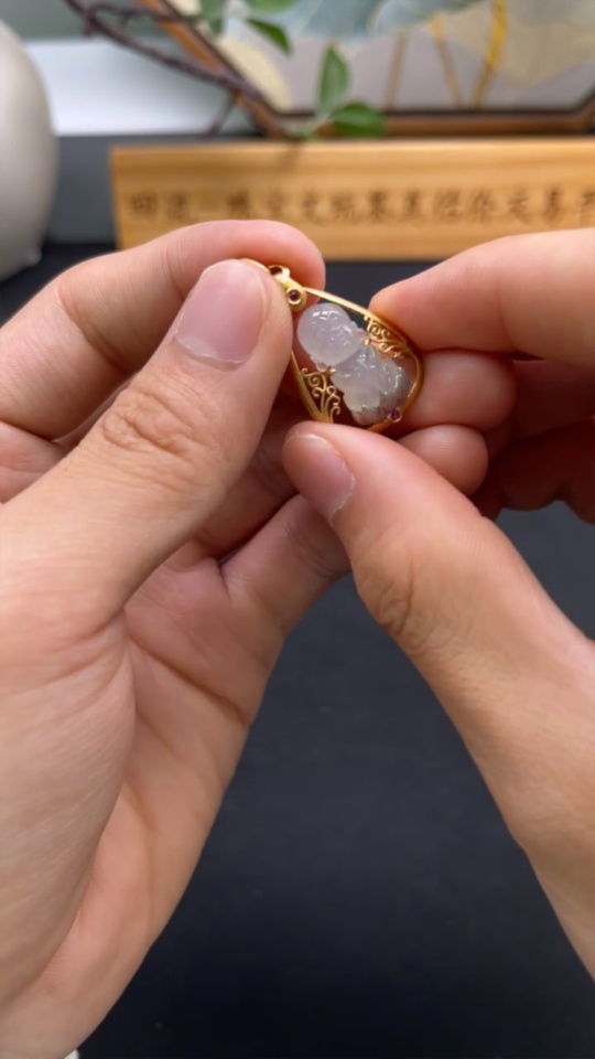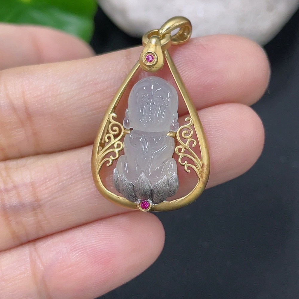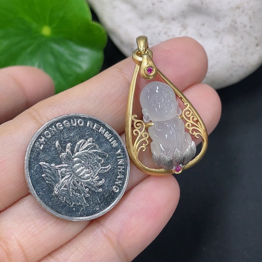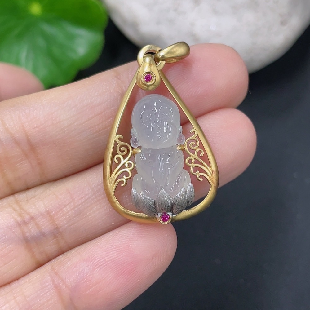 Jadeite Inlaid Pendant Inlaid with approximately 72% Au Total product weight approximately 4.42g