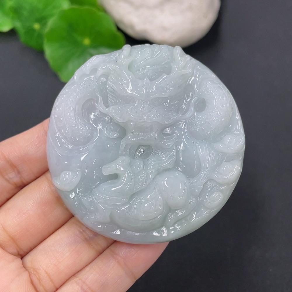 Jadeite Pendant Dragon Plaque Total Weight Approx. 68.35g