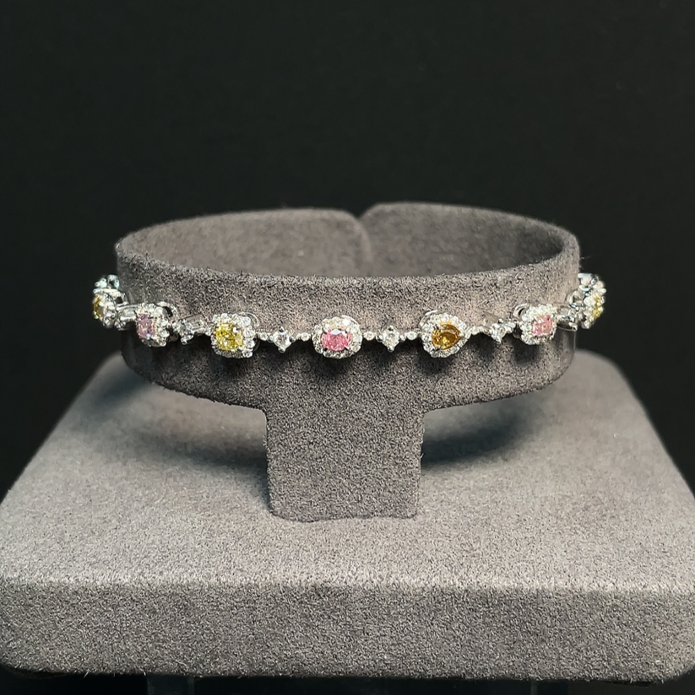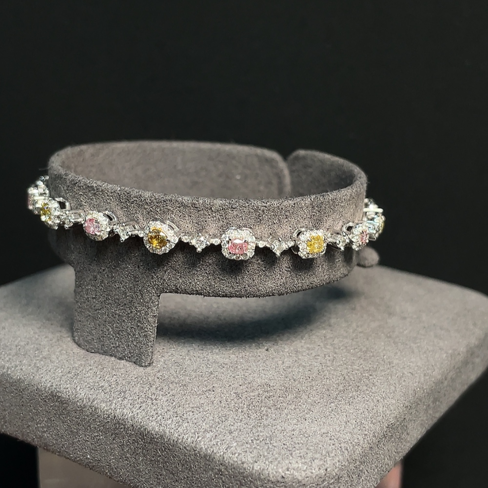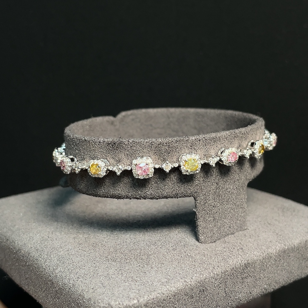 18K Diamond Bracelet, Color Origin Undetermined, Bottom Lined, Total Weight Approx. 9g, Marked D1.45ct d1.54ct (Color)