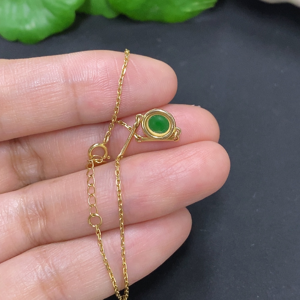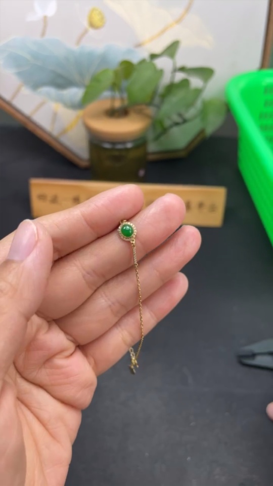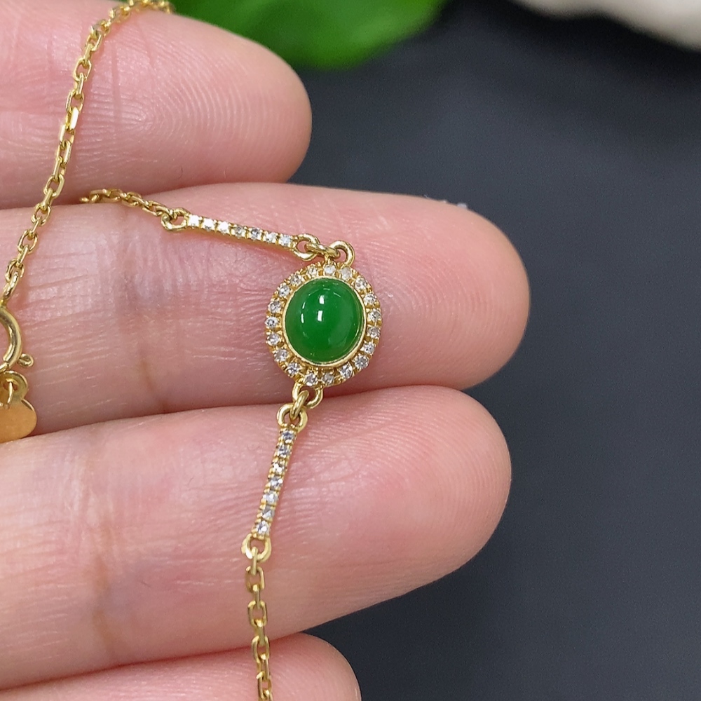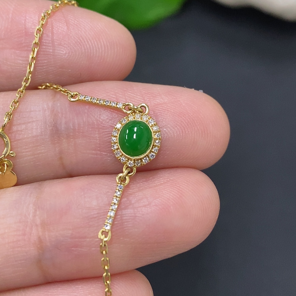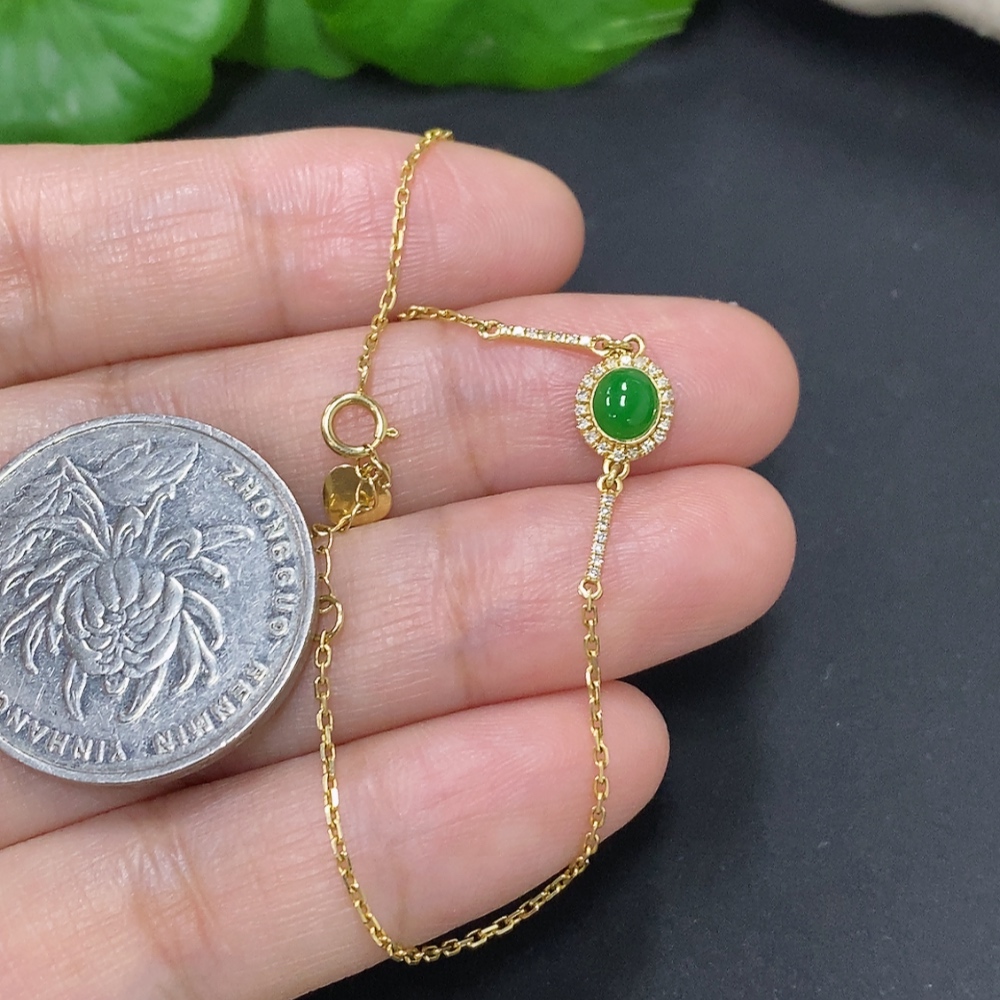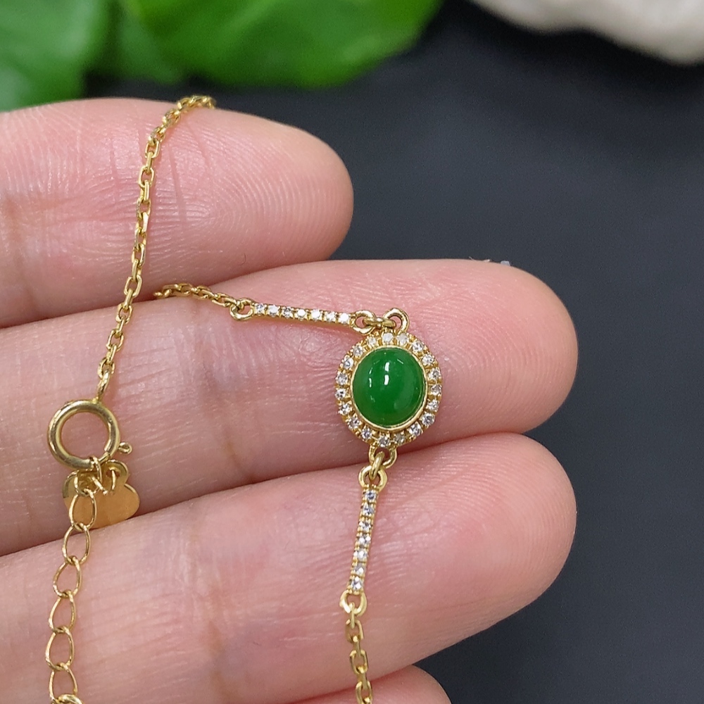 Jadeite Cabochon Inlay Bracelet 18K Gold Total Weight Approx. 1.1g (With Diamond Accents)