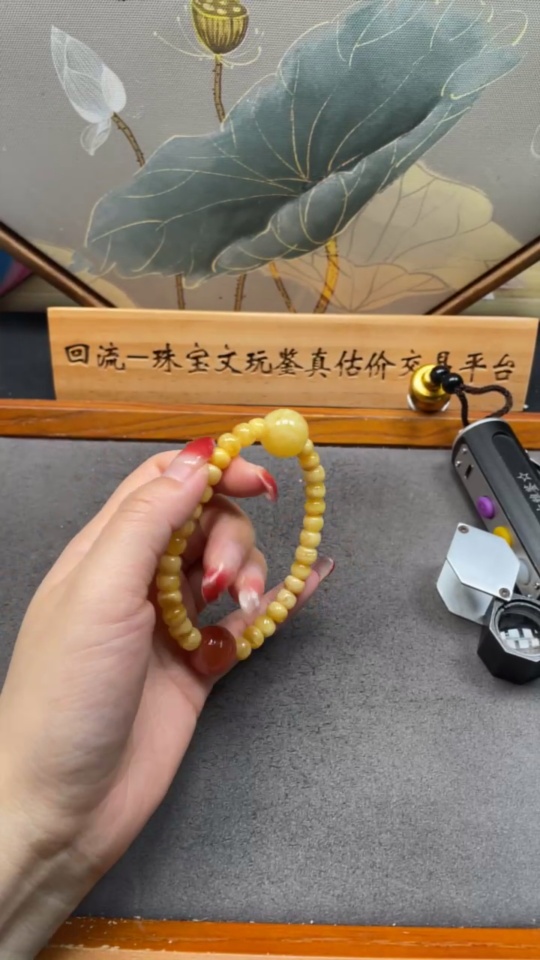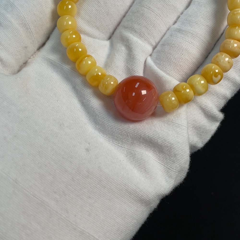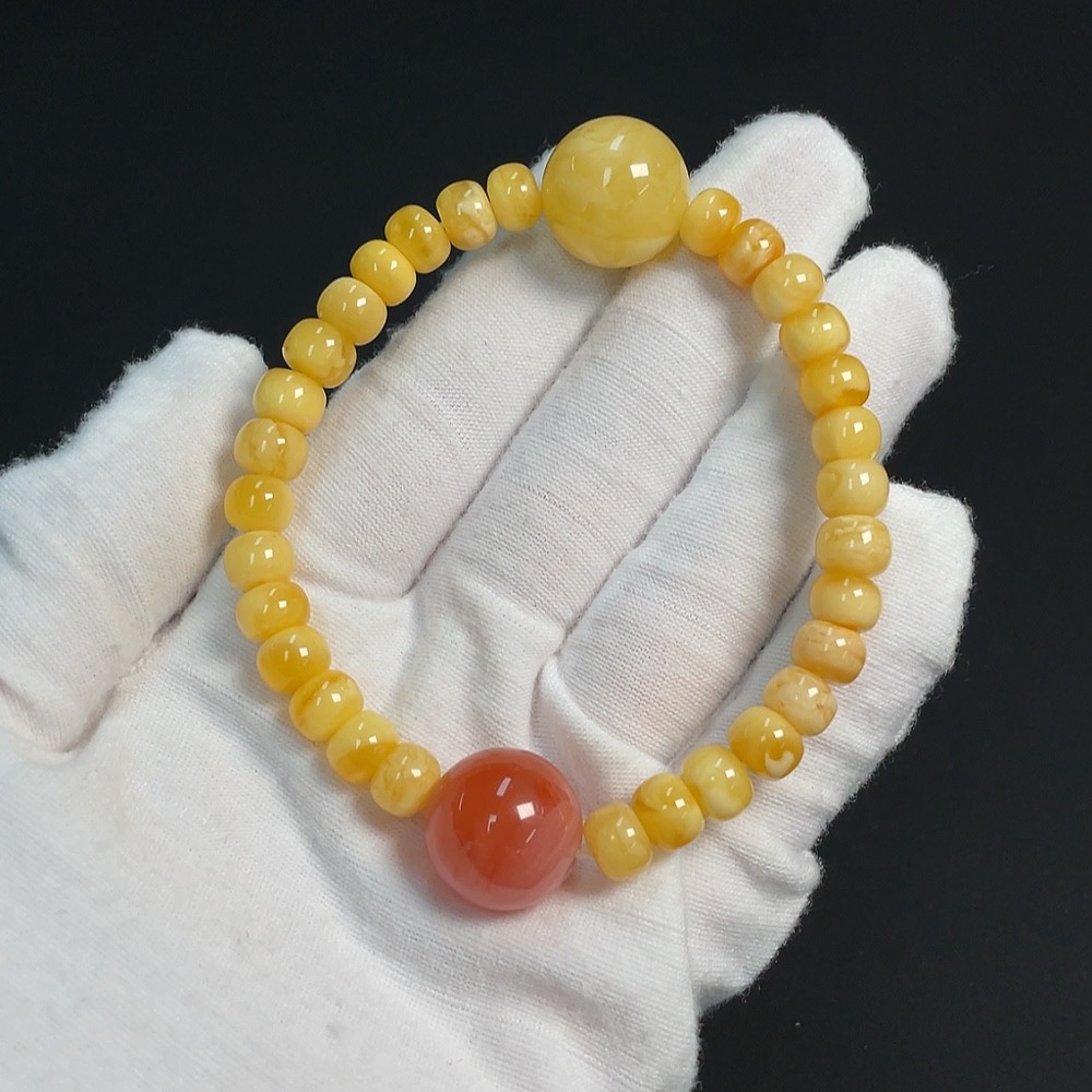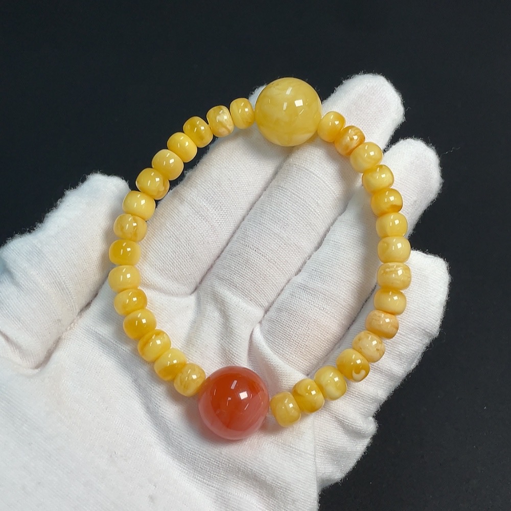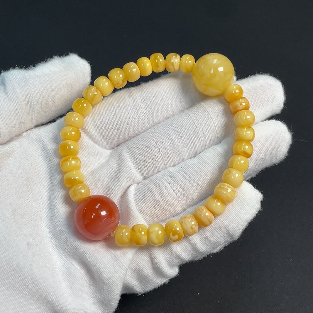 Amber and Beeswax Bracelet, Size 7.5-16.3mm, Total Weight Approx. 15.21g, Paired with Southern Red Agate