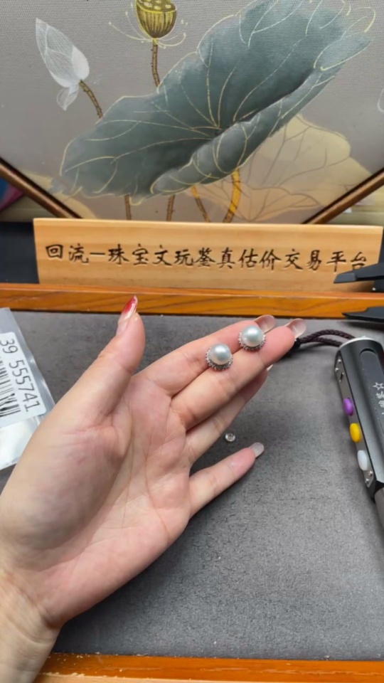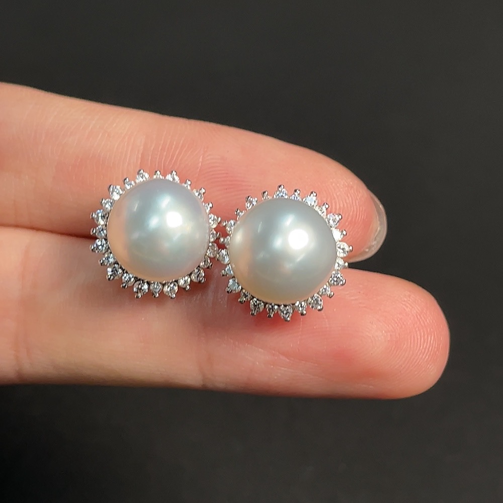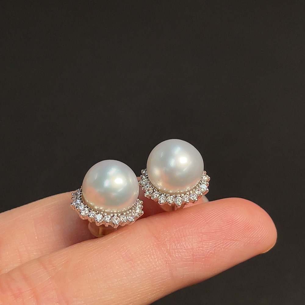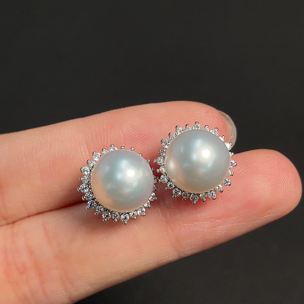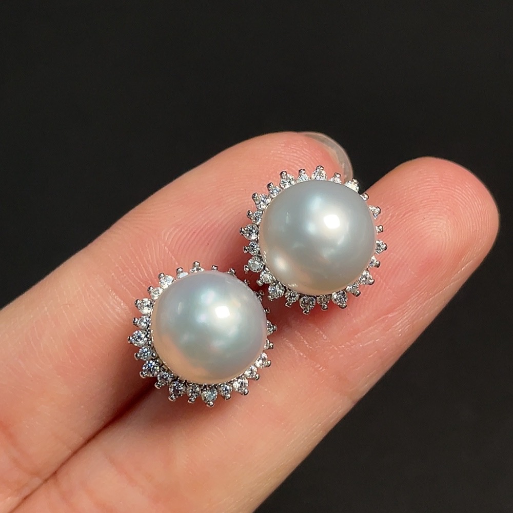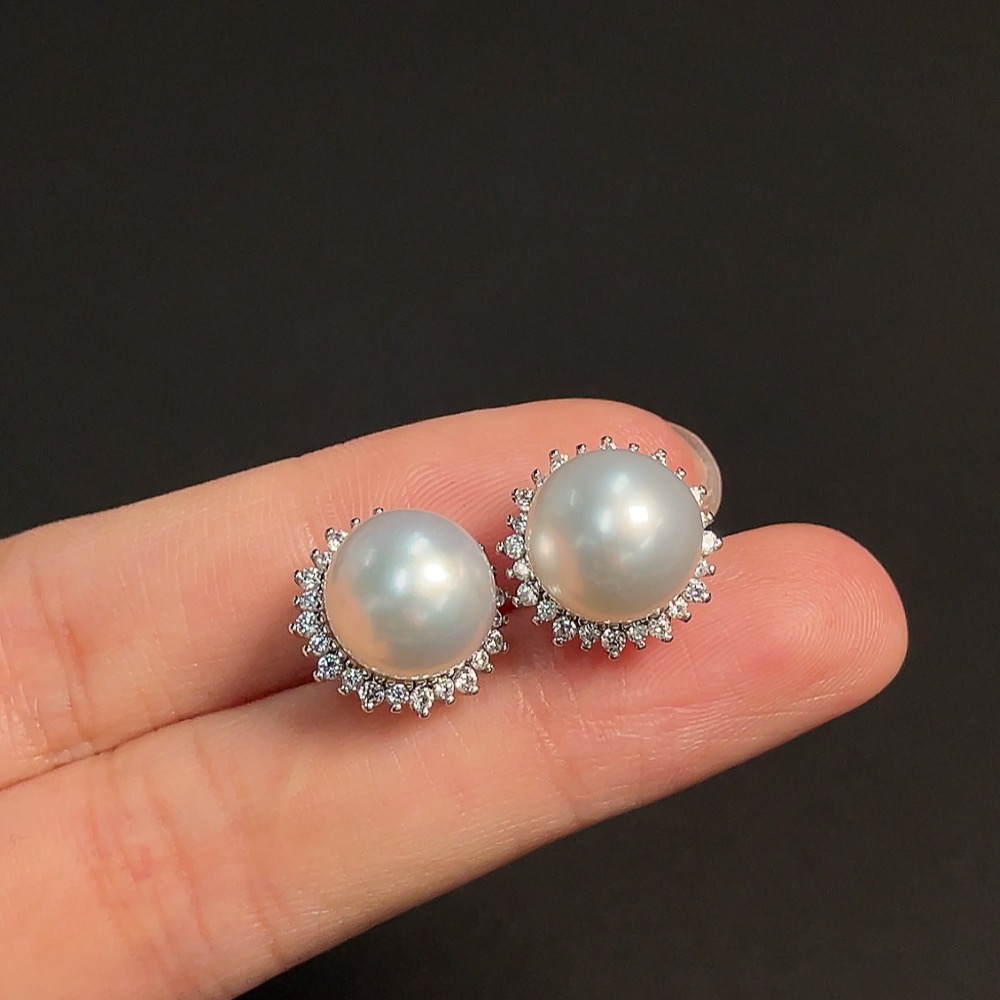 Seawater pearl stud earrings non-gold setting approx. 9.8mm total weight about 4.84g