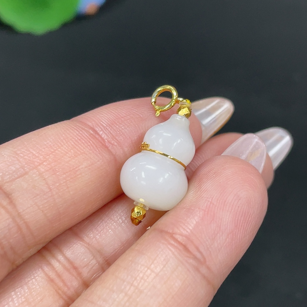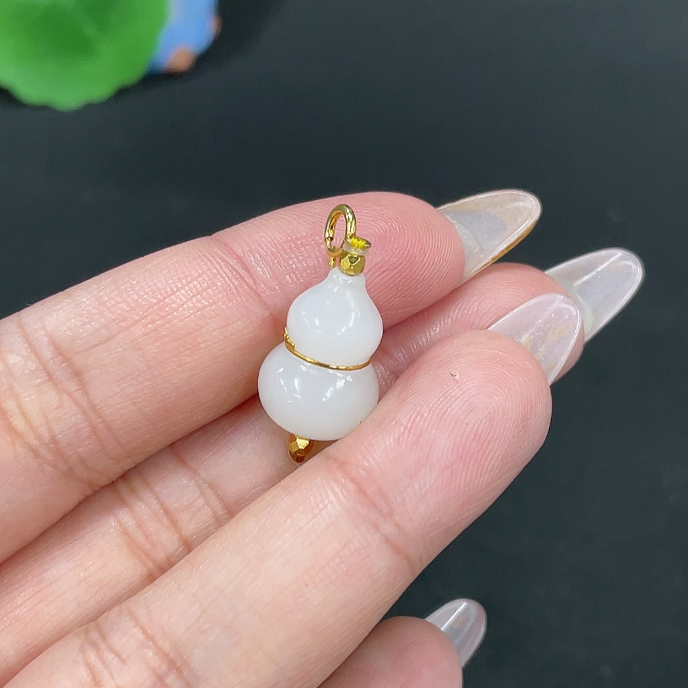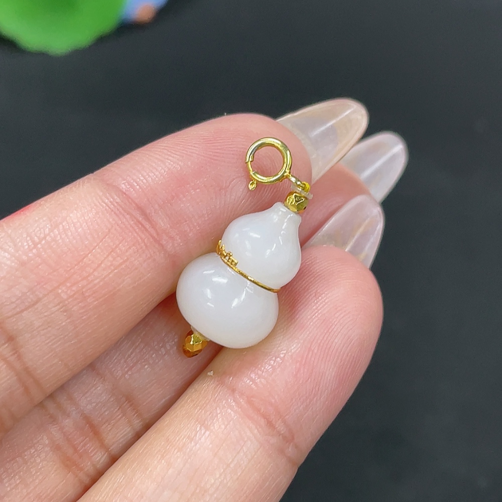 Hetian Jade Inlaid Pendant Gourd Total Weight Approx. 2.8g No Imprint 18k in Gourd Center Non-Gold Elsewhere