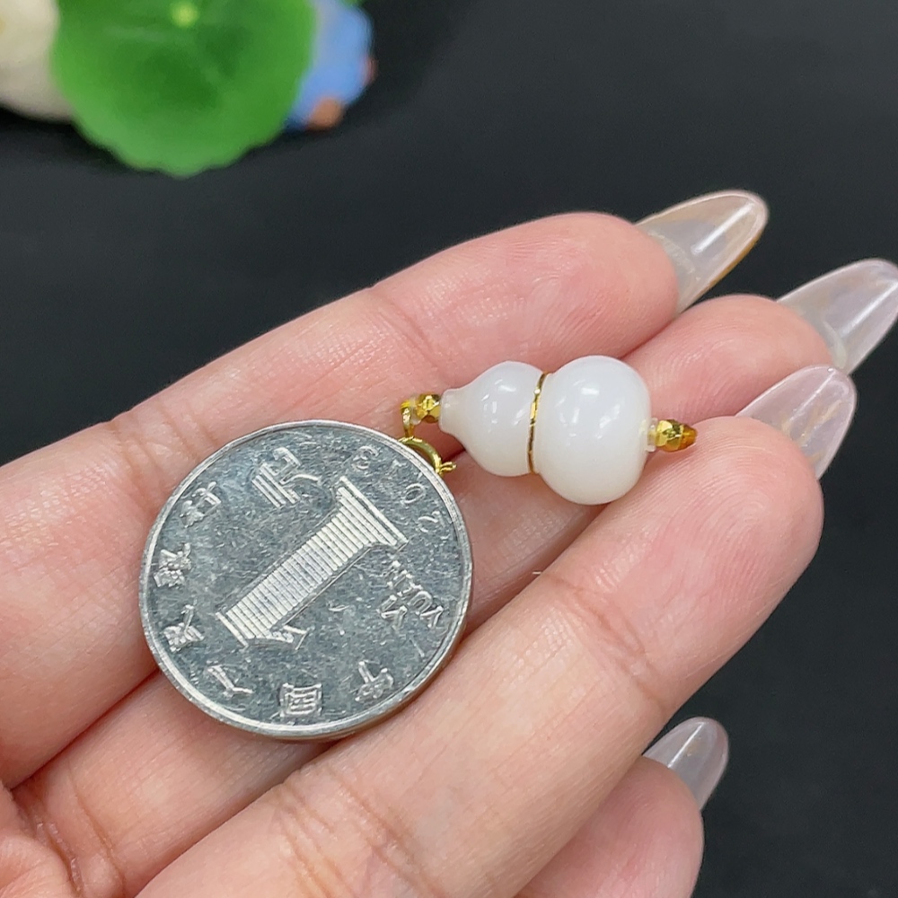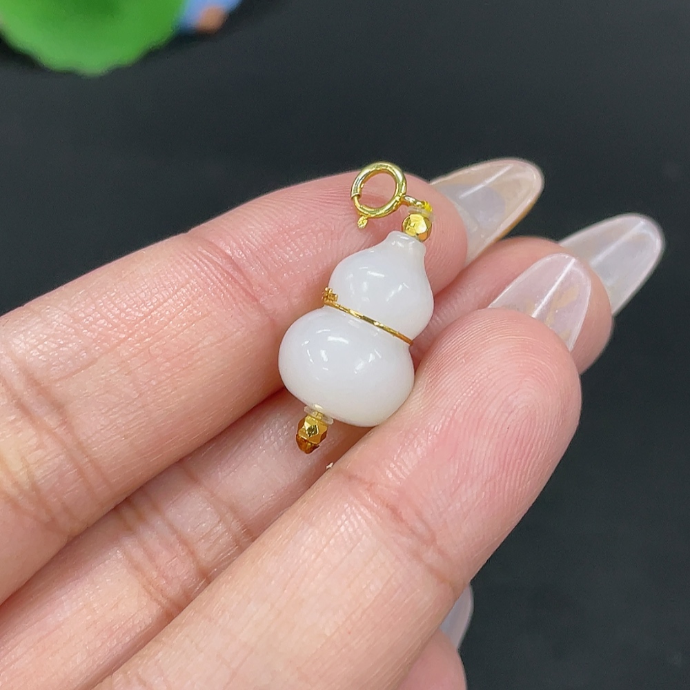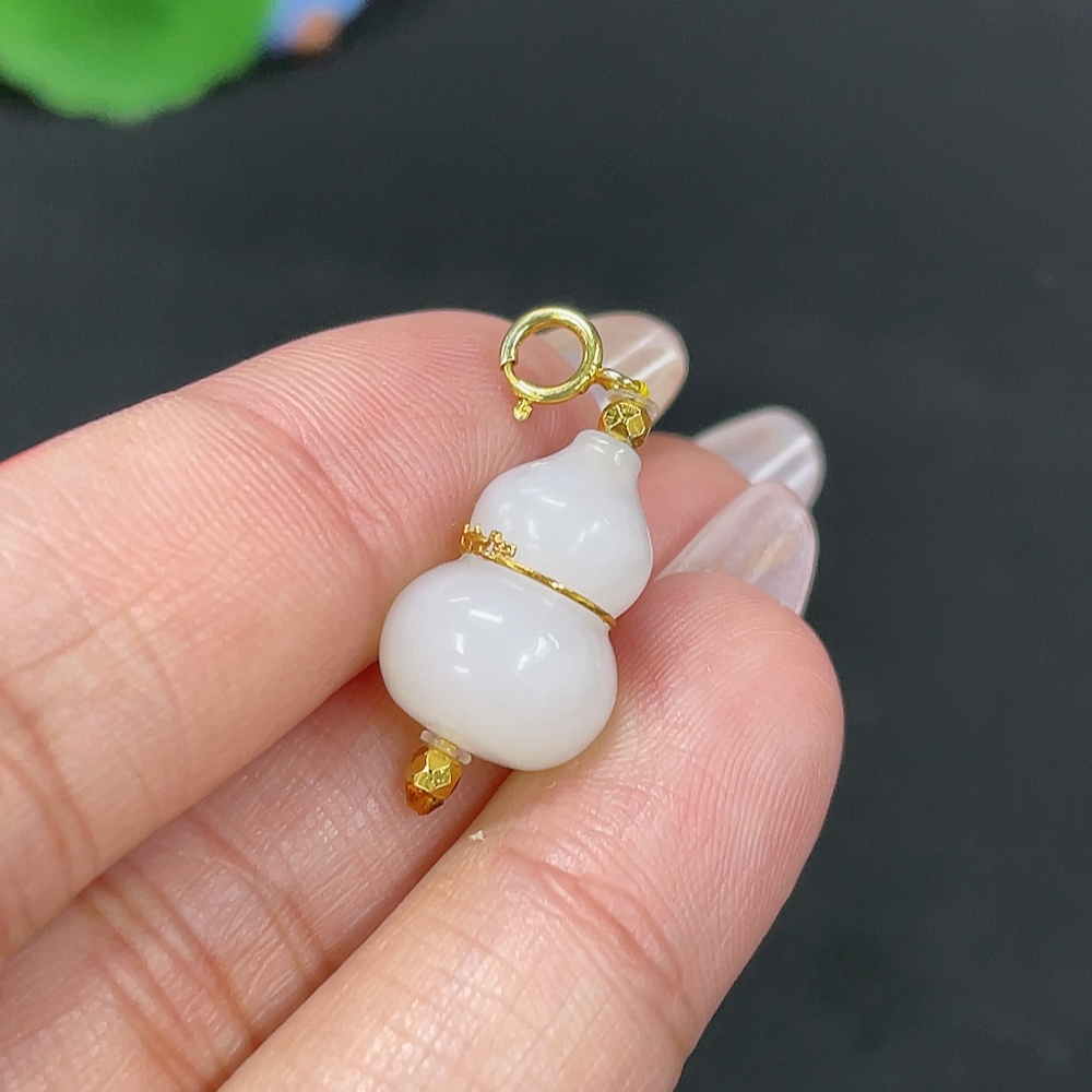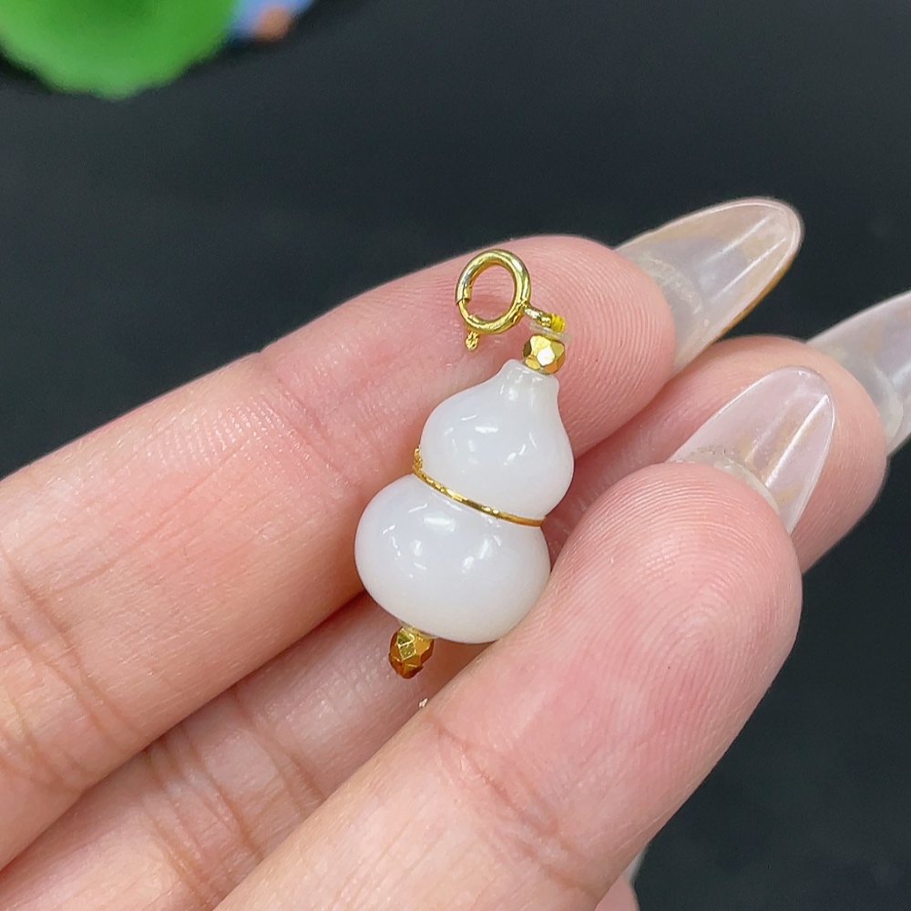 Hetian Jade Inlaid Pendant Gourd Total Weight Approx. 2.8g No Imprint 18k in Gourd Center Non-Gold Elsewhere