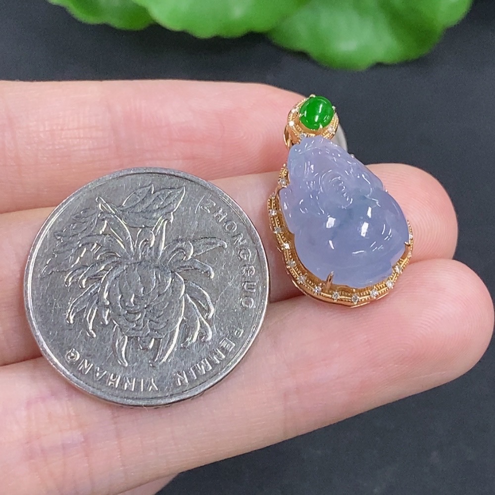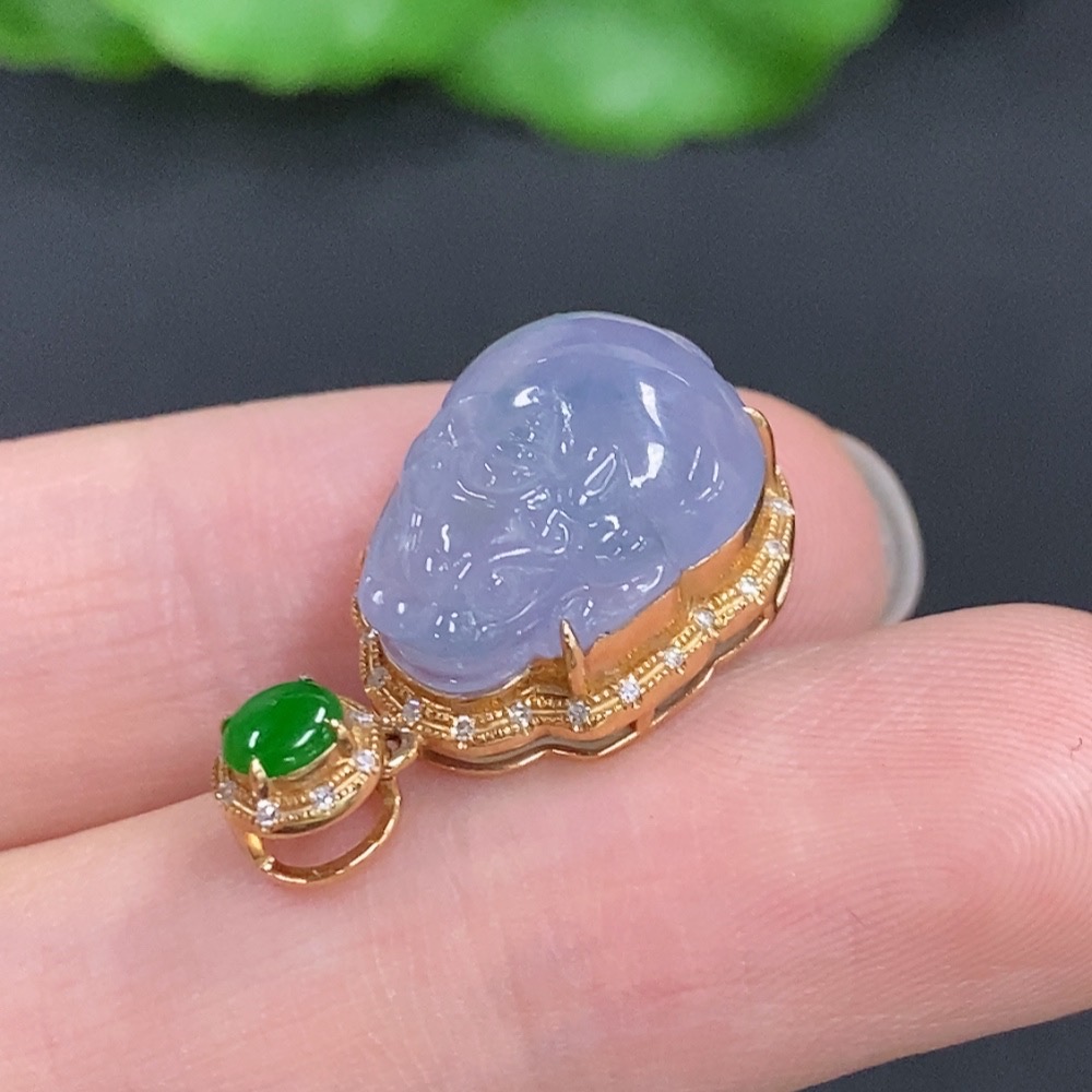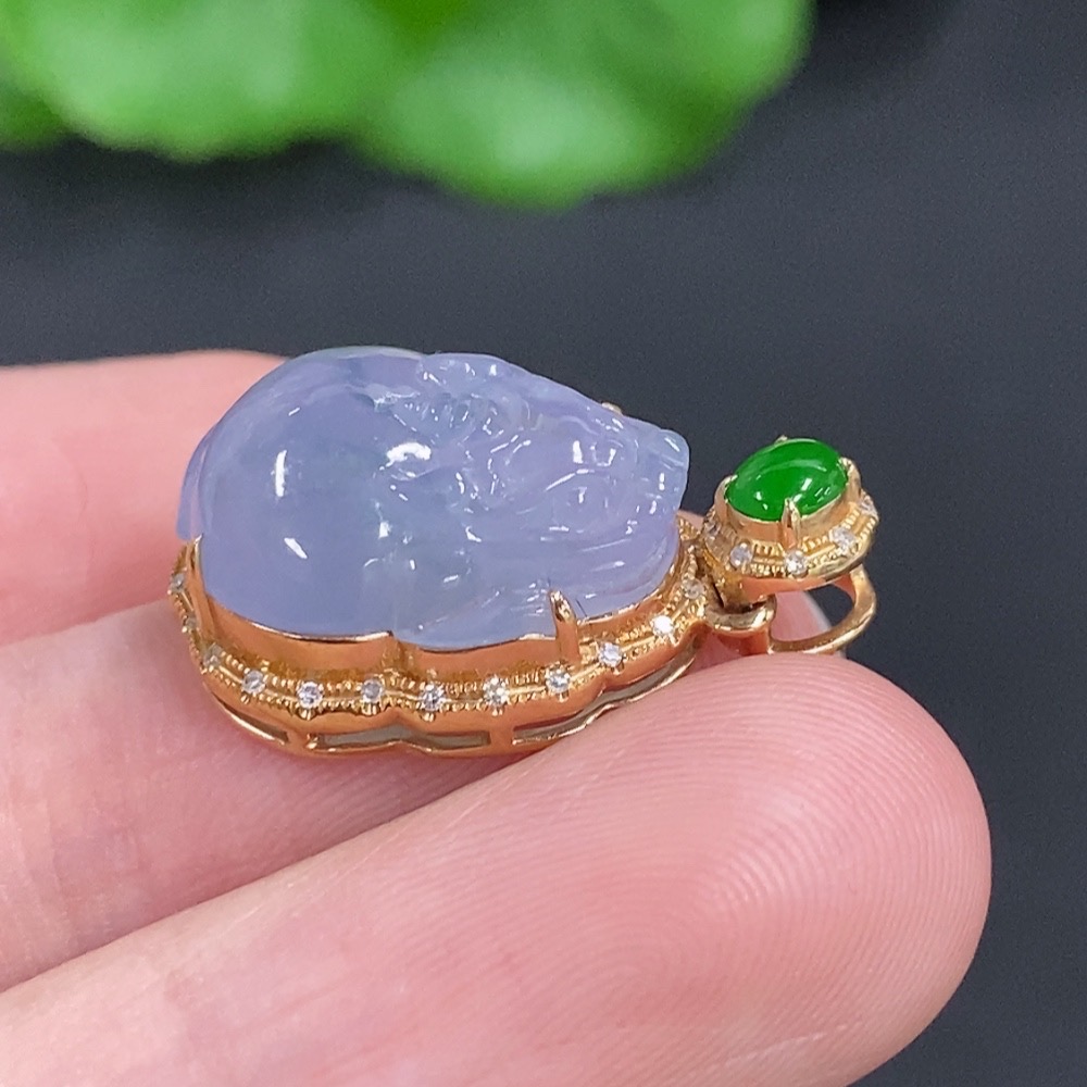 Jadeite Three-Legged Golden Toad Inlaid Pendant 18k Gold Total Weight Approx. 3.7g with Diamond Accents