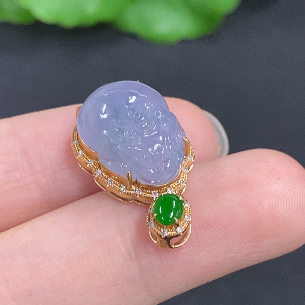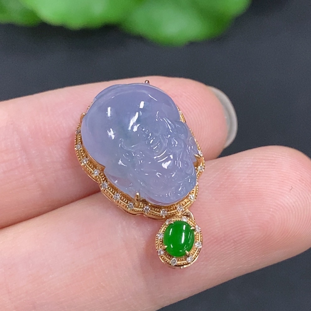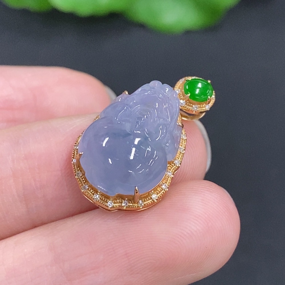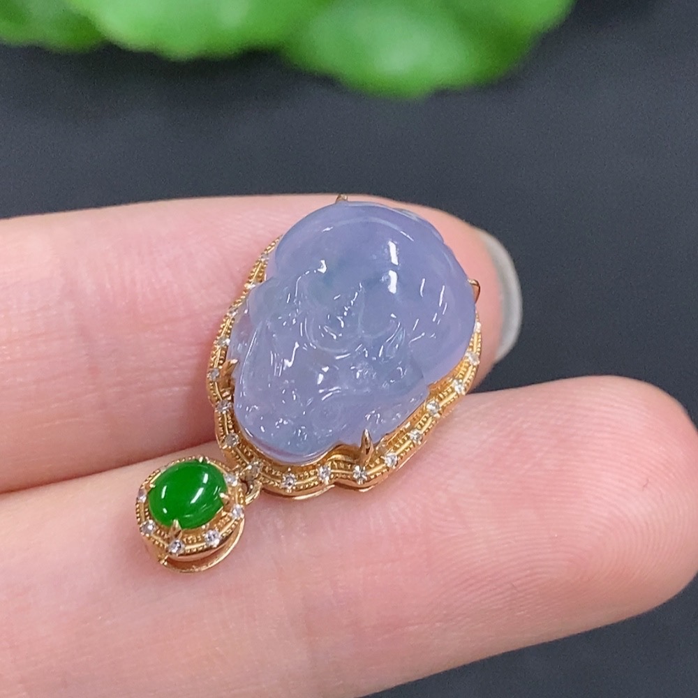 Jadeite Three-Legged Golden Toad Inlaid Pendant 18k Gold Total Weight Approx. 3.7g with Diamond Accents