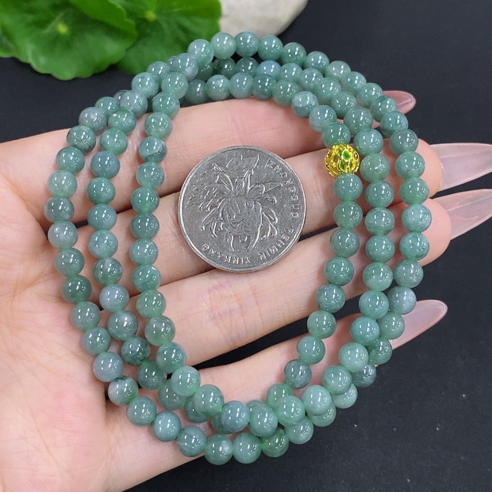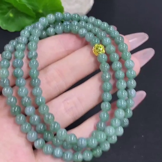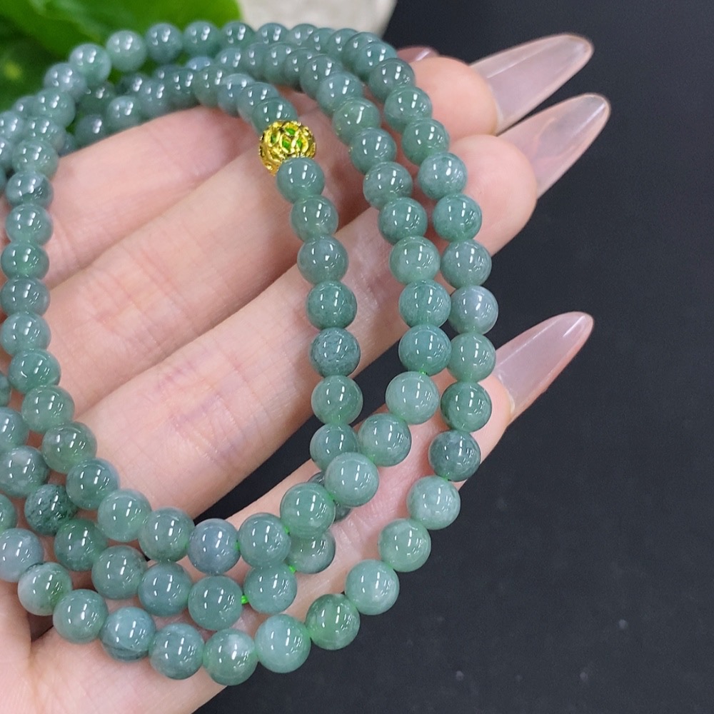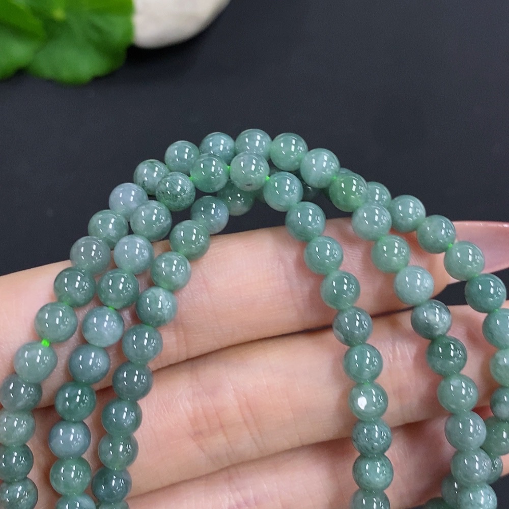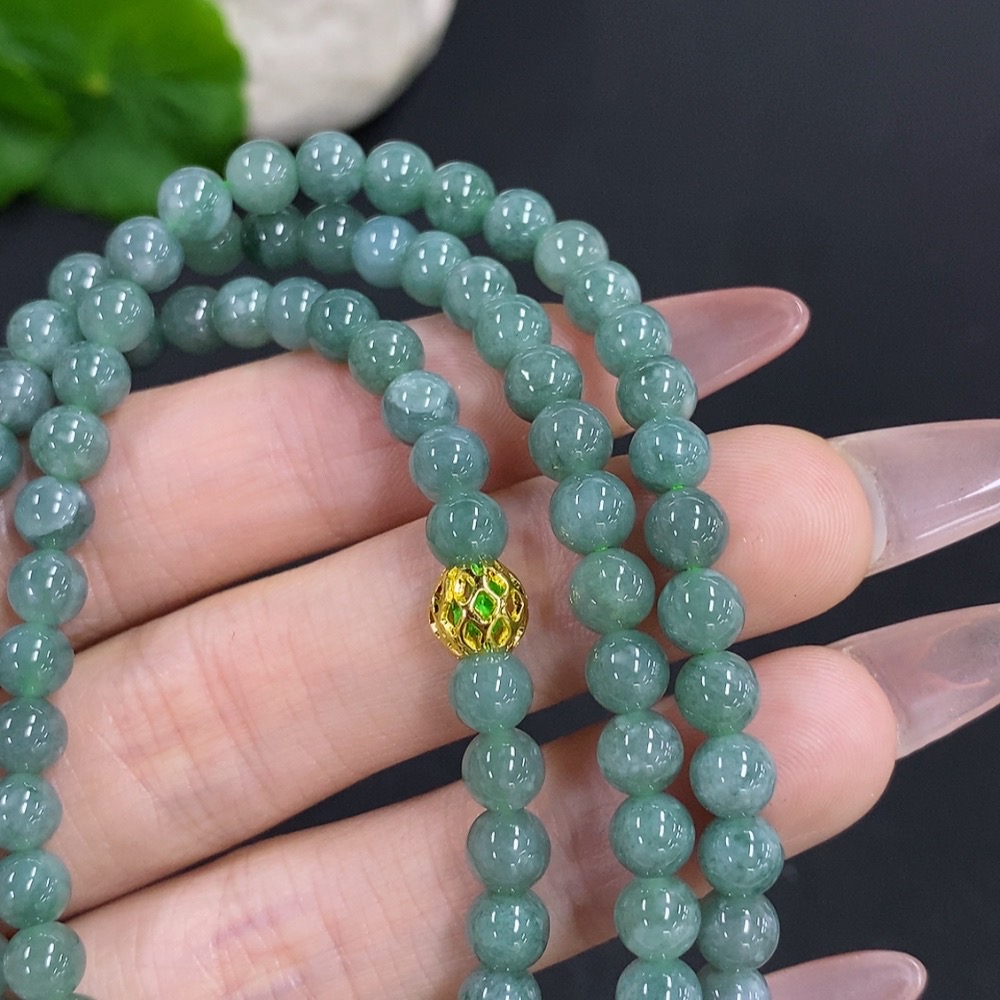 Jadeite Bead Necklace Approx. 5.3mm Non-Gold Total Weight Approx. 33.8g