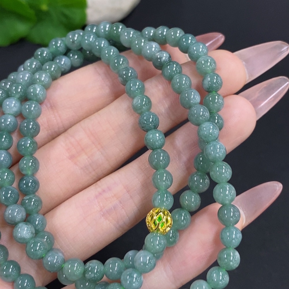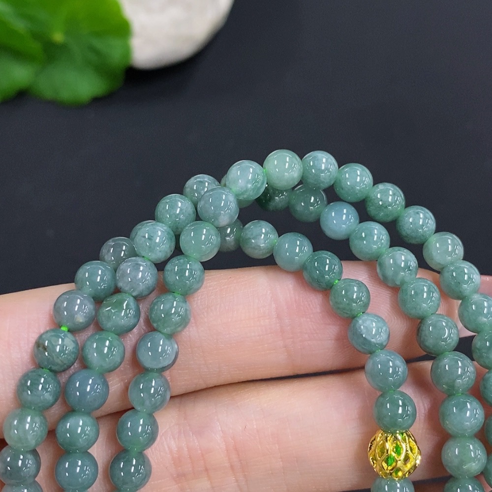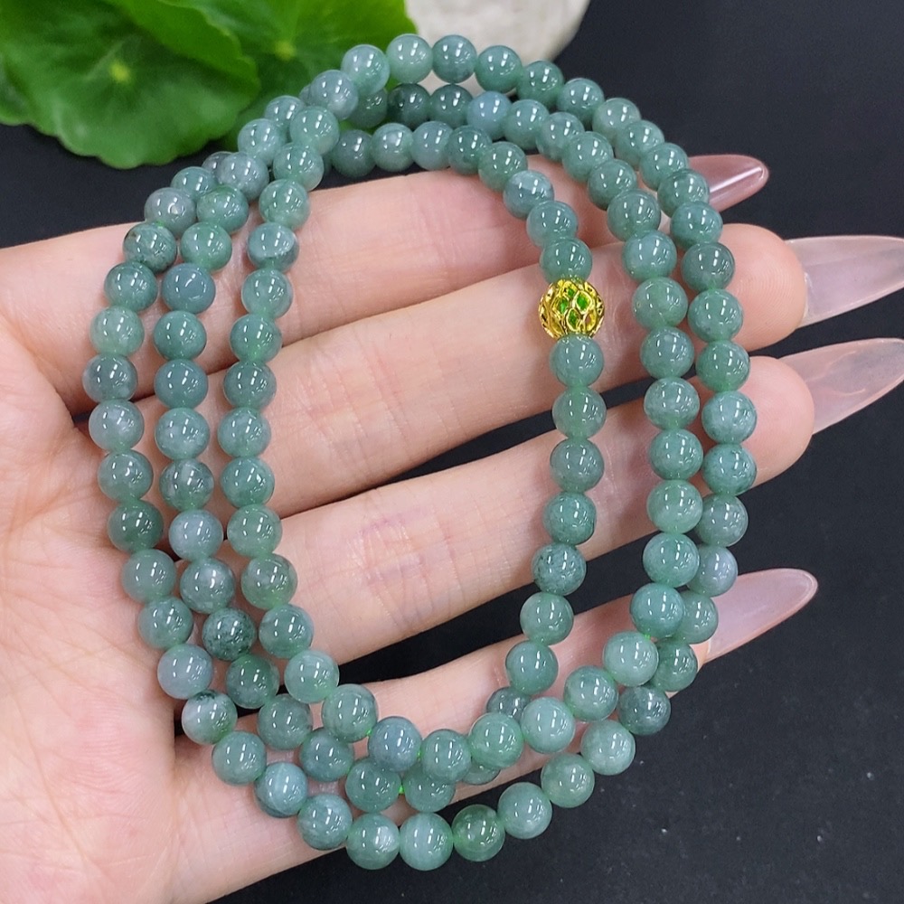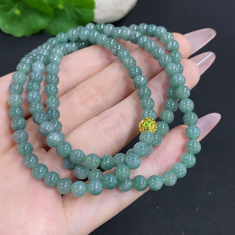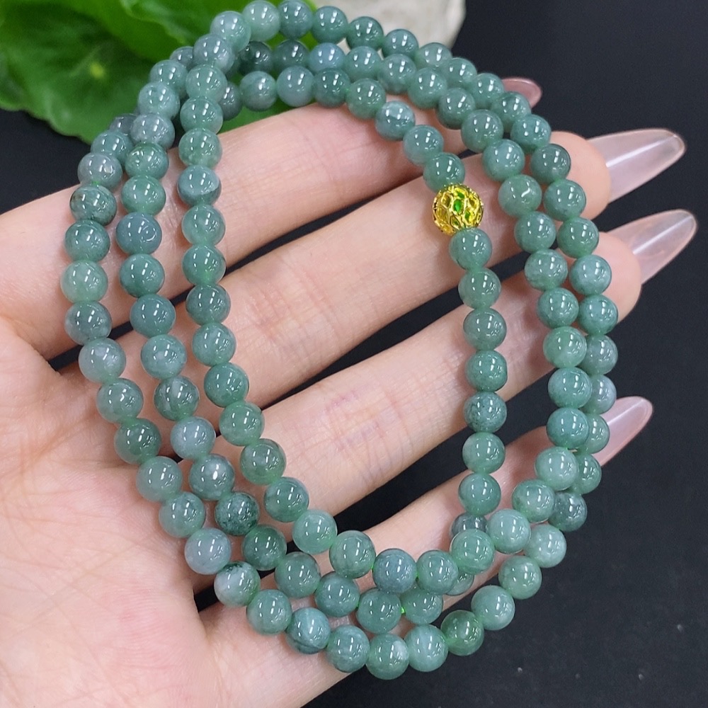 Jadeite Bead Necklace Approx. 5.3mm Non-Gold Total Weight Approx. 33.8g