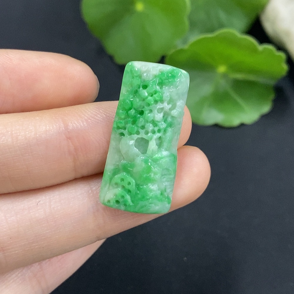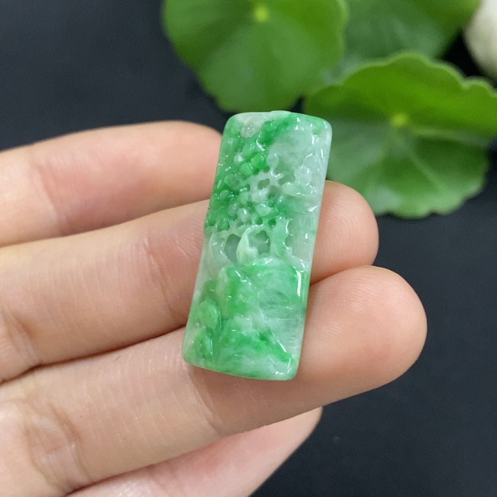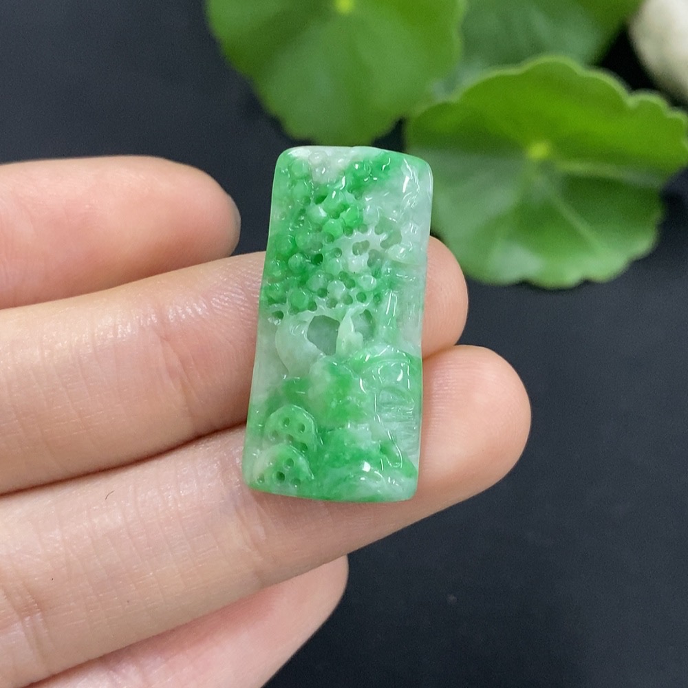 Jadeite Landscape Pendant, Total Weight Approximately 3.3g