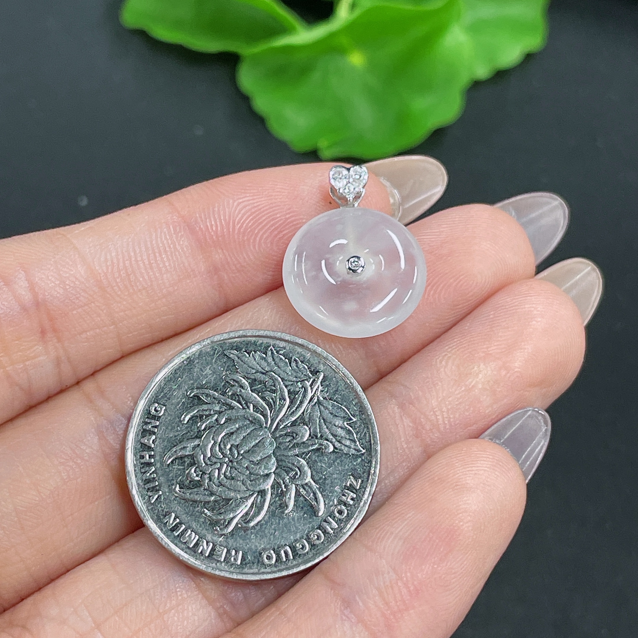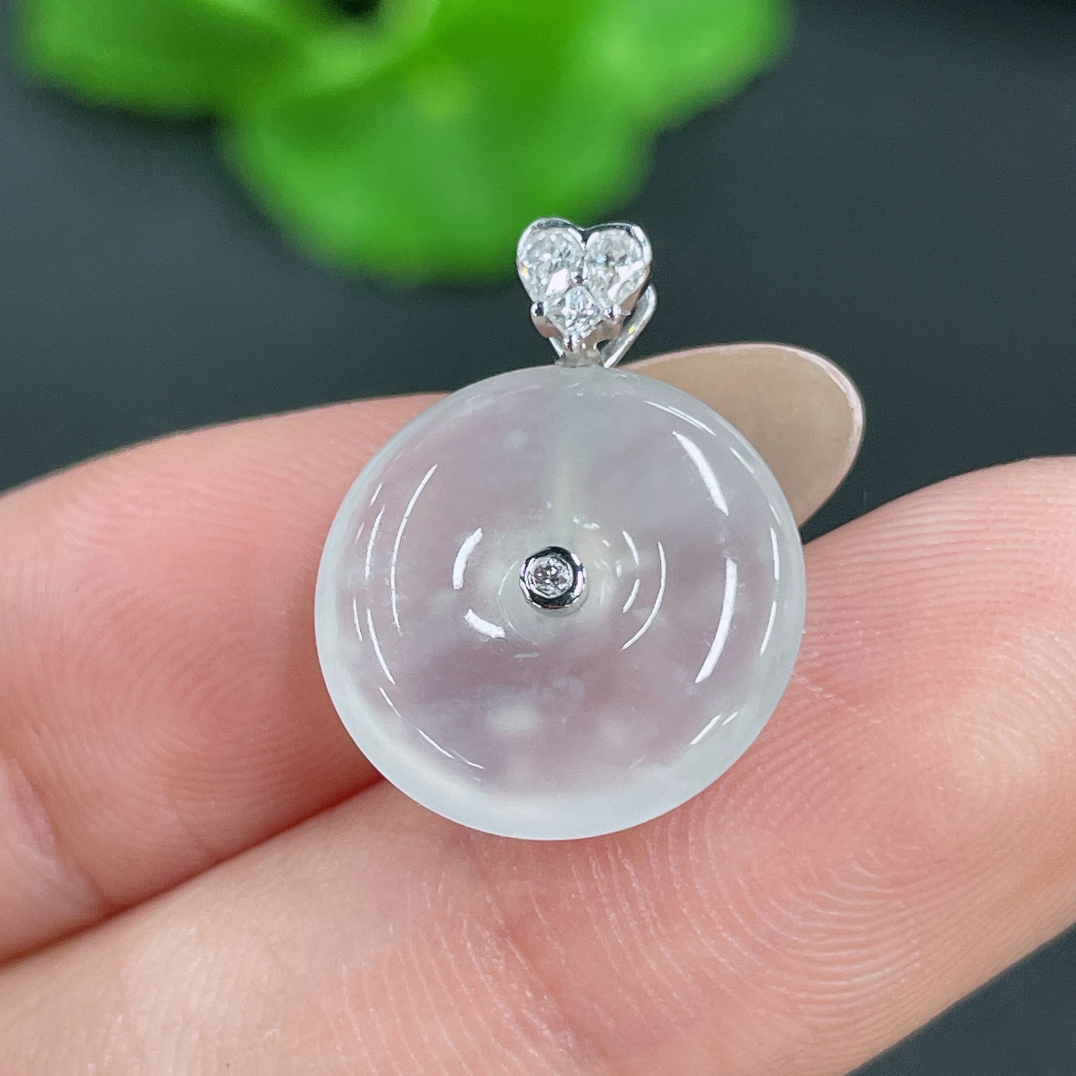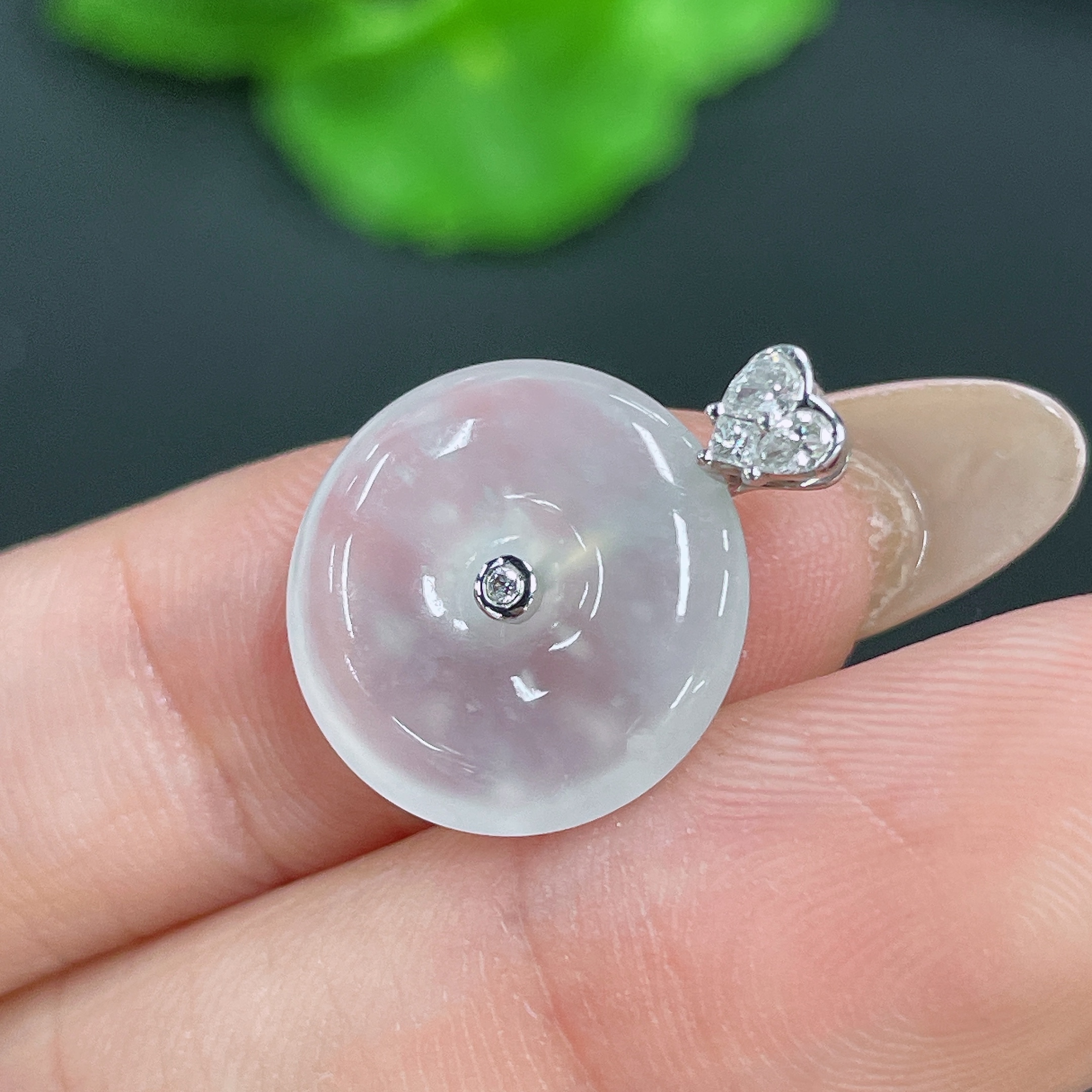 Jadeite Pendant 18k Gold Setting with Diamond Accent Total Weight Approx. 1.91g