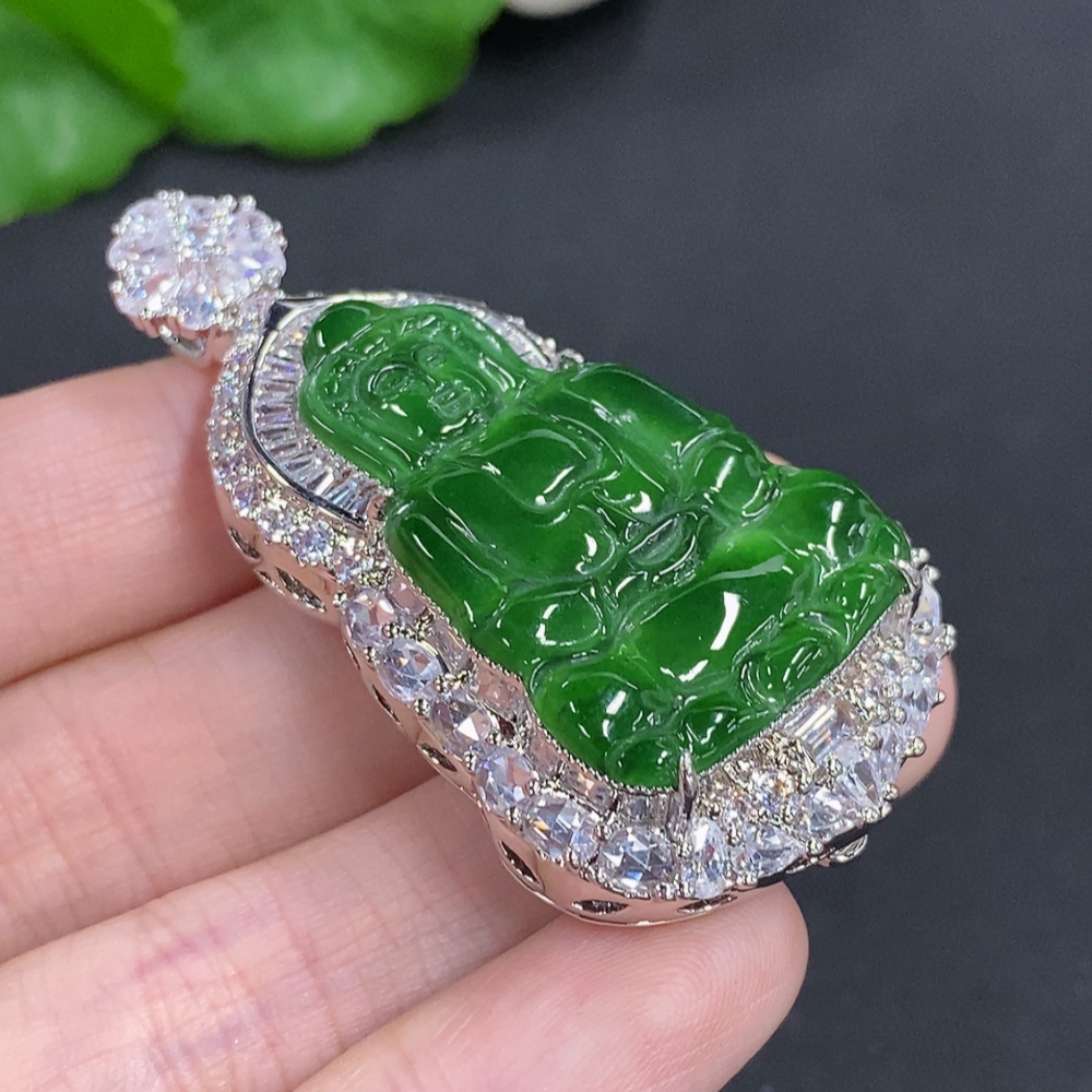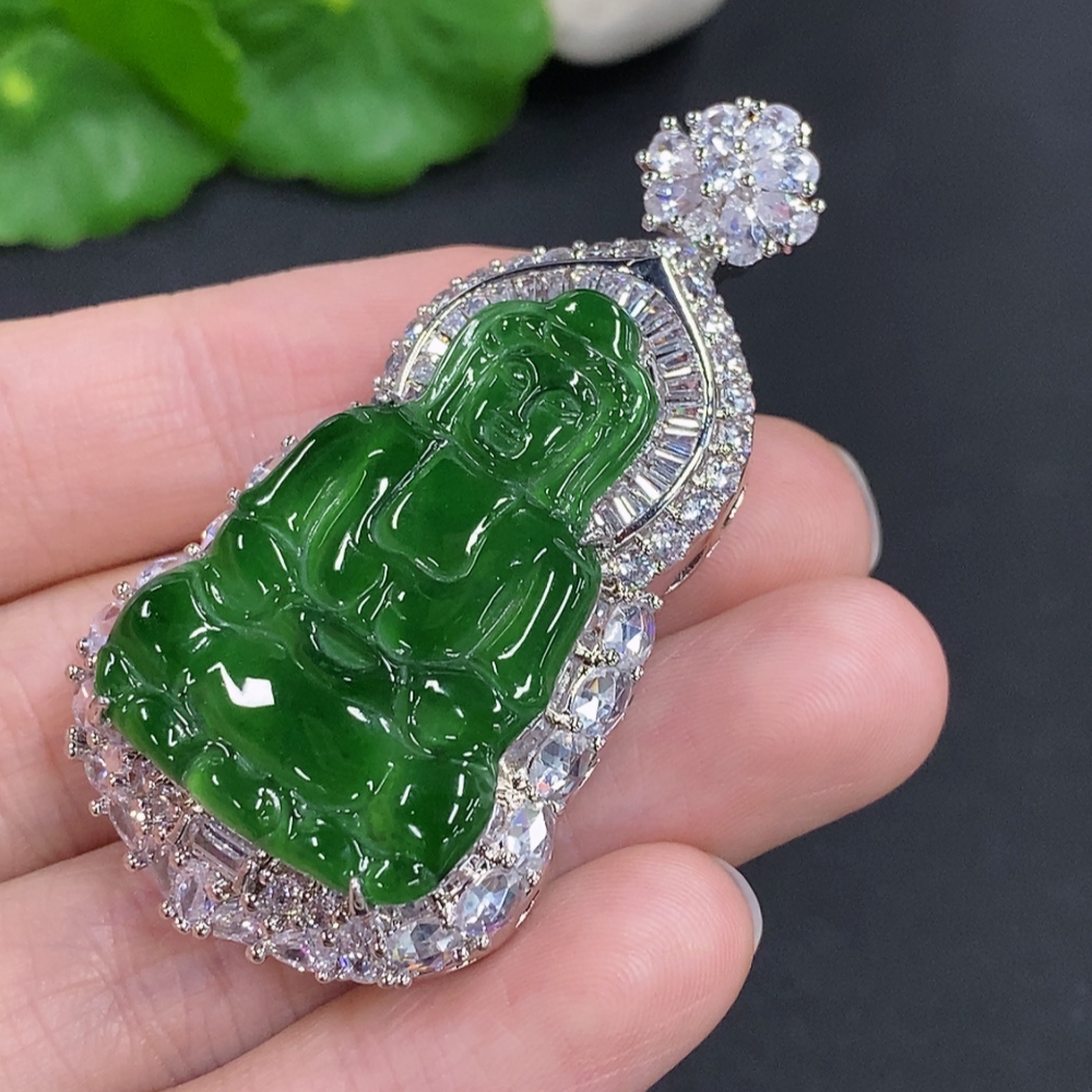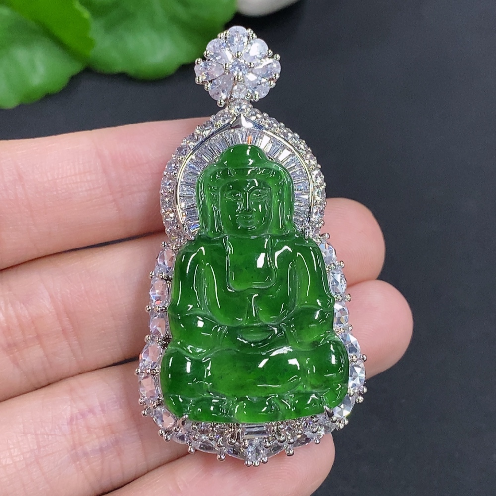 Jadeite Guanyin Inlaid Pendant Non-Gold Inlaid Total Weight Approx. 22.47g