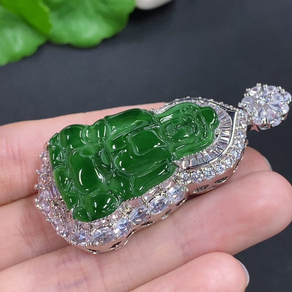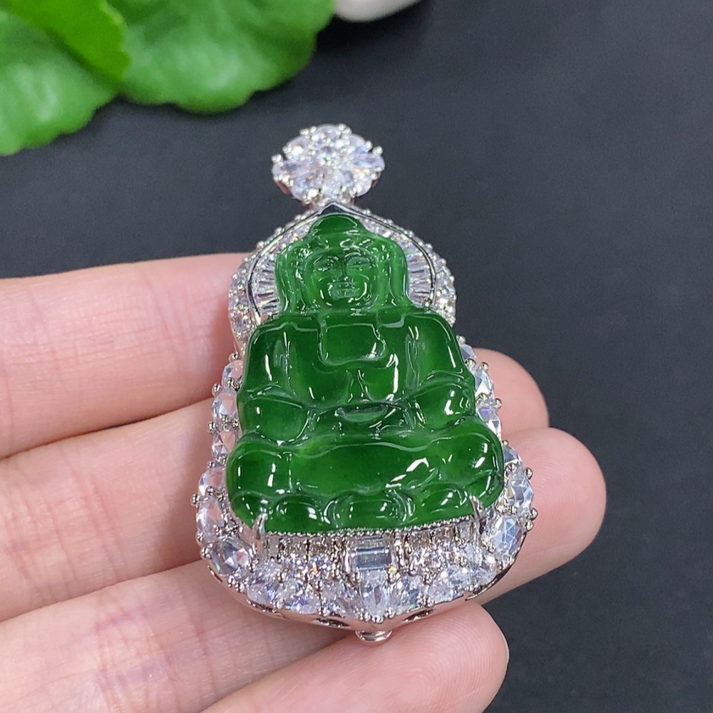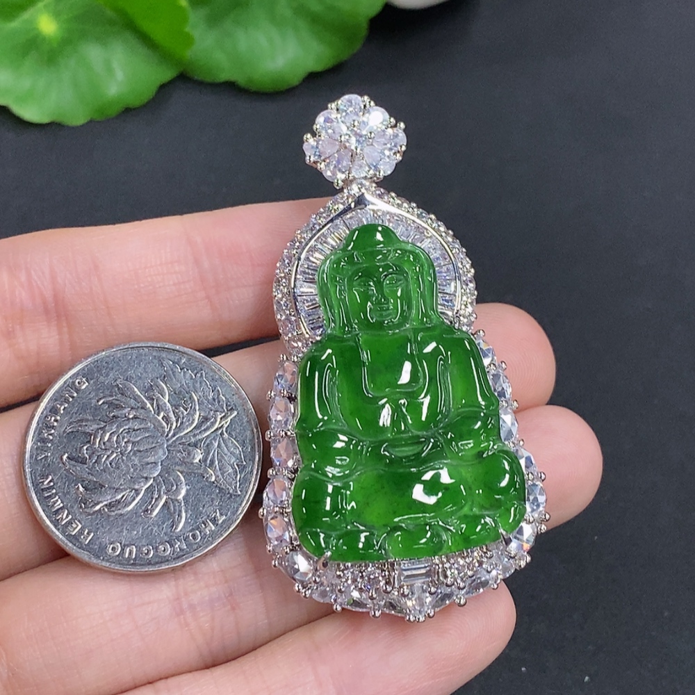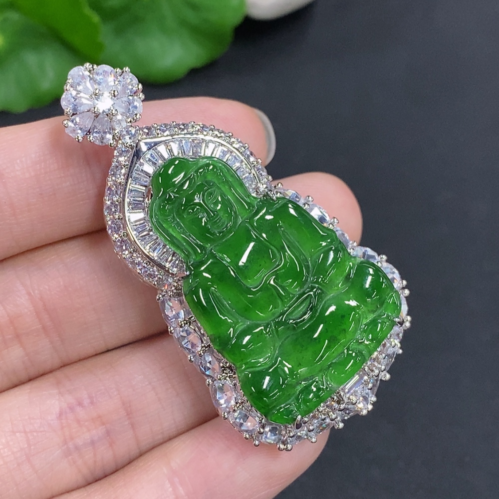 Jadeite Guanyin Inlaid Pendant Non-Gold Inlaid Total Weight Approx. 22.47g