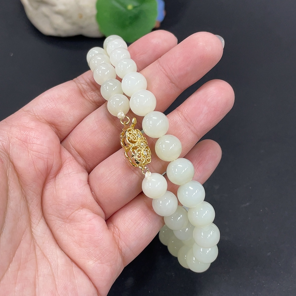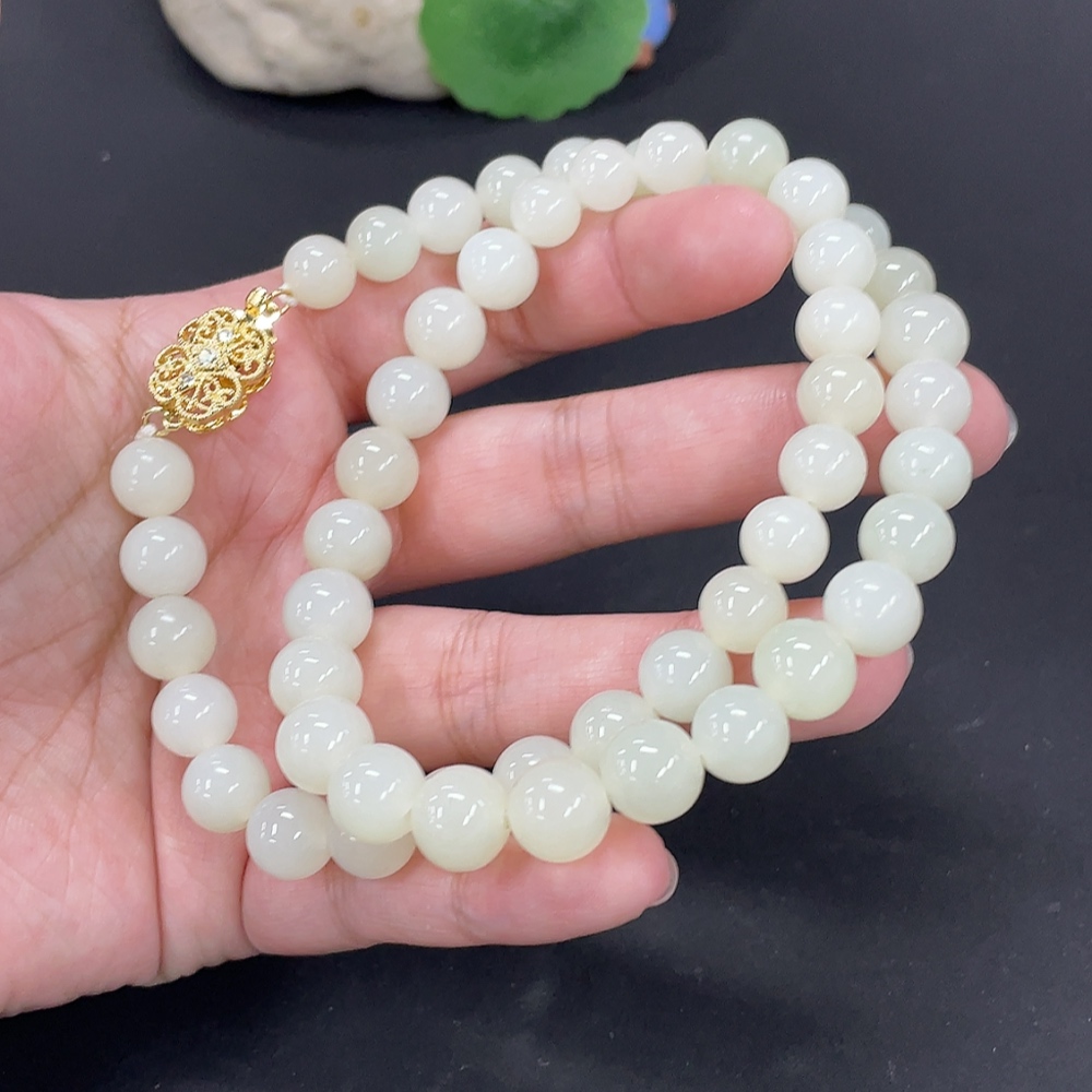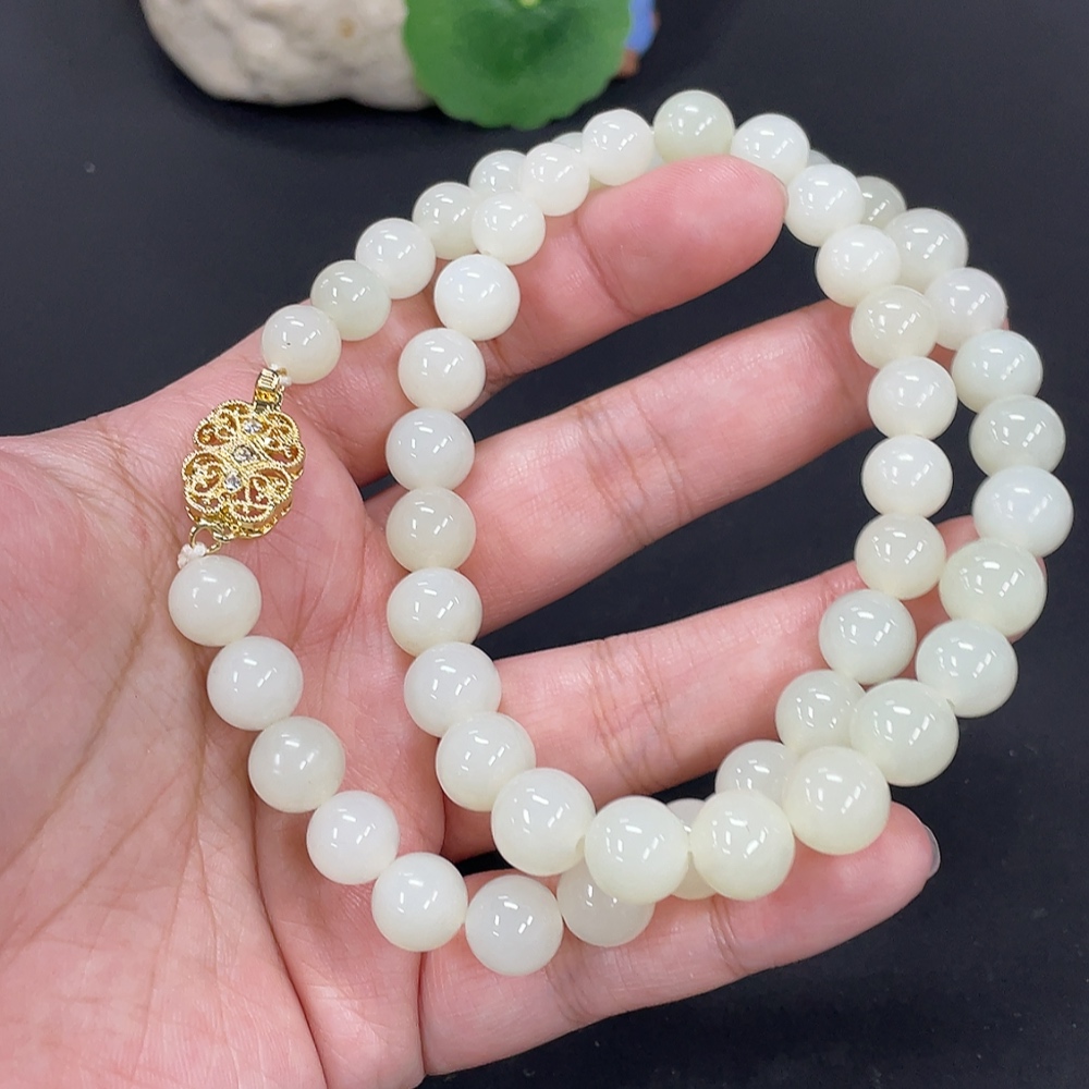 Hetian Jade Bead Necklace Approx. 9.5mm Total Weight About 65.9g Non-Gold