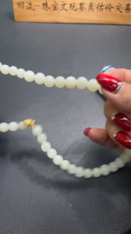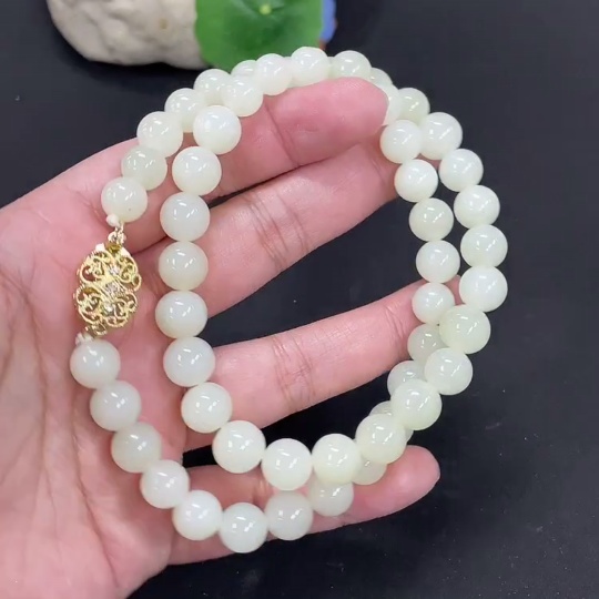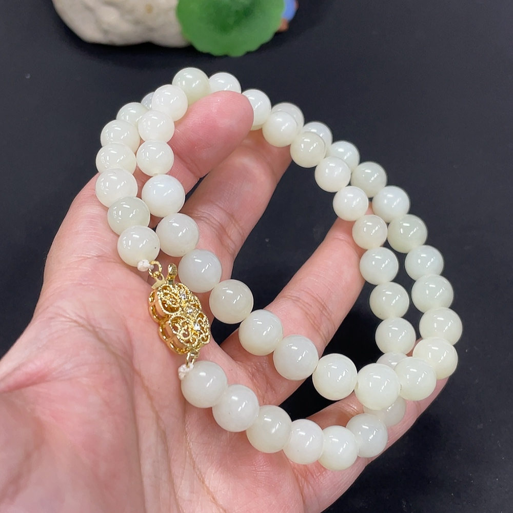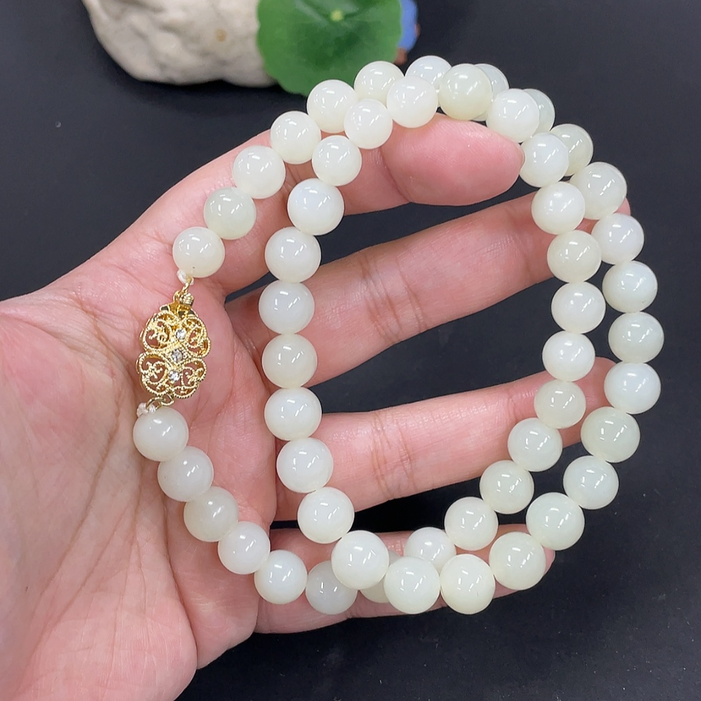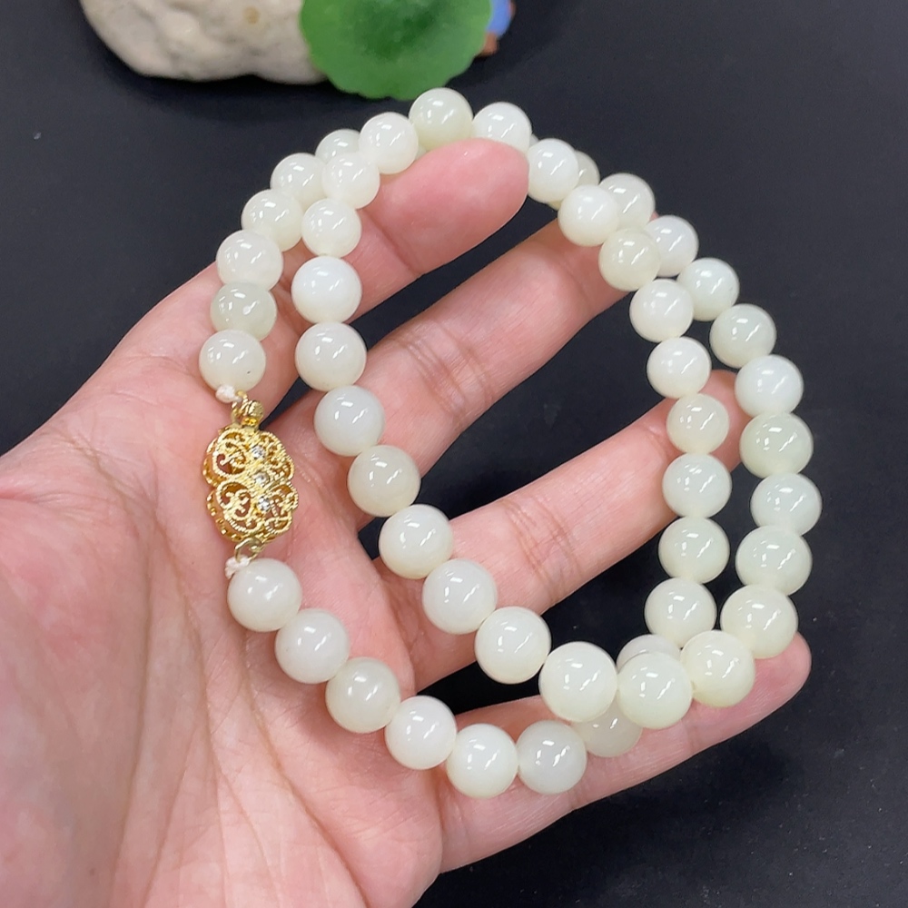 Hetian Jade Bead Necklace Approx. 9.5mm Total Weight About 65.9g Non-Gold