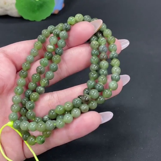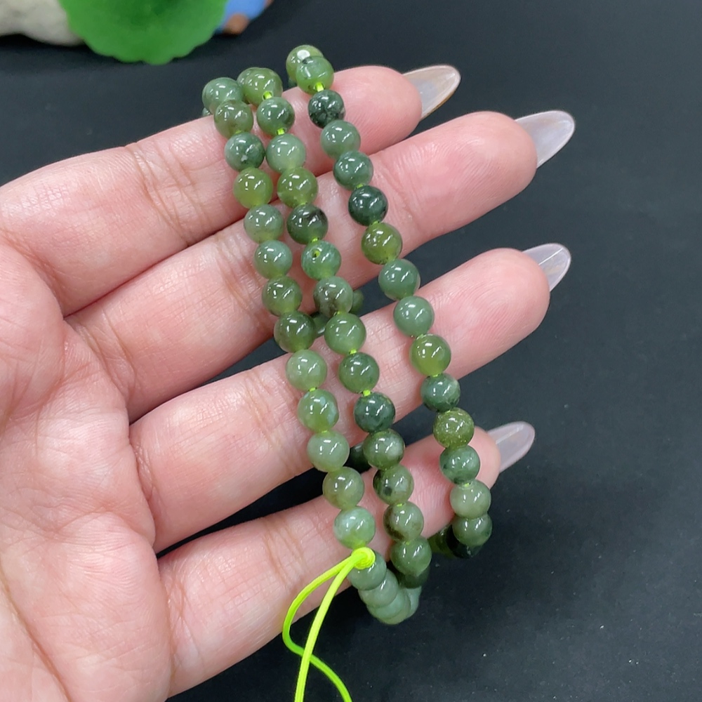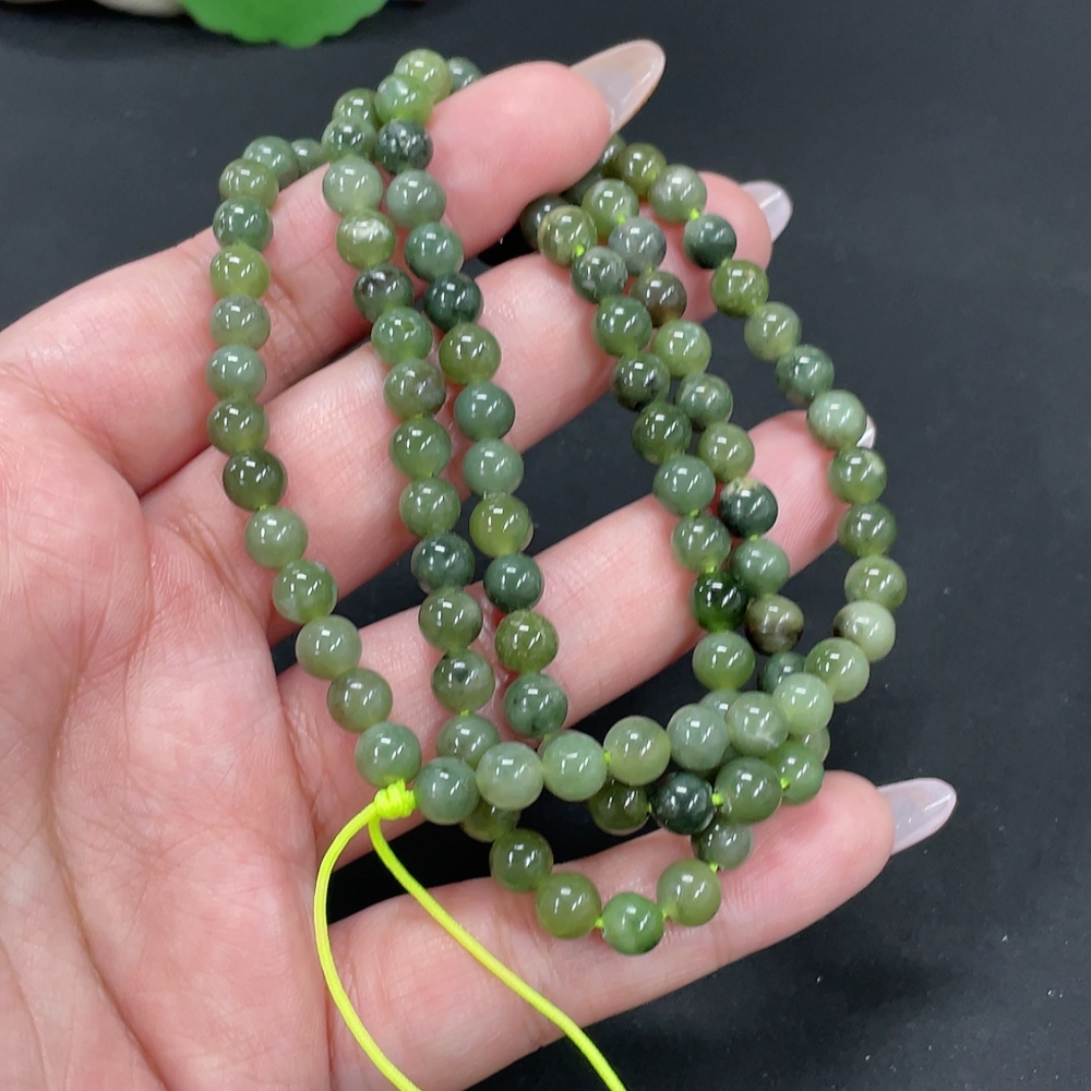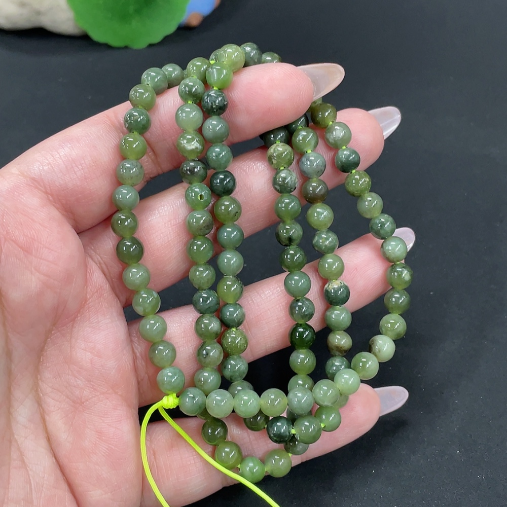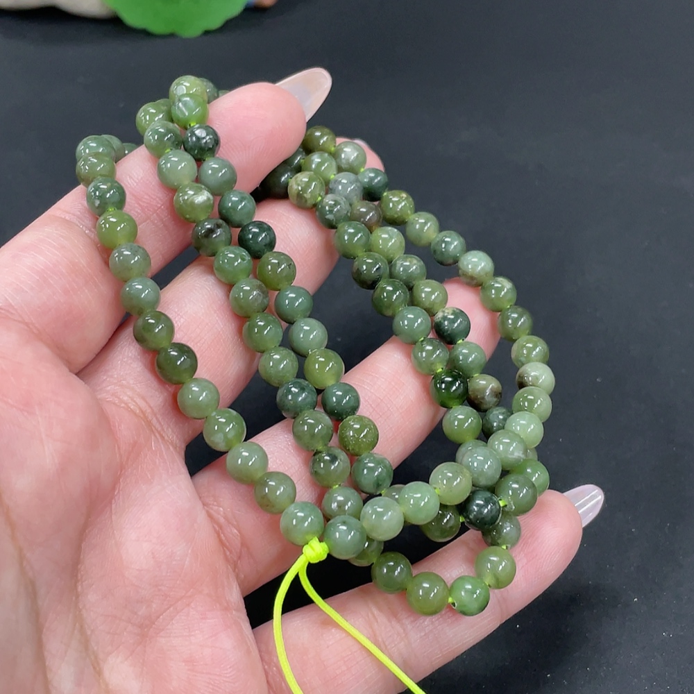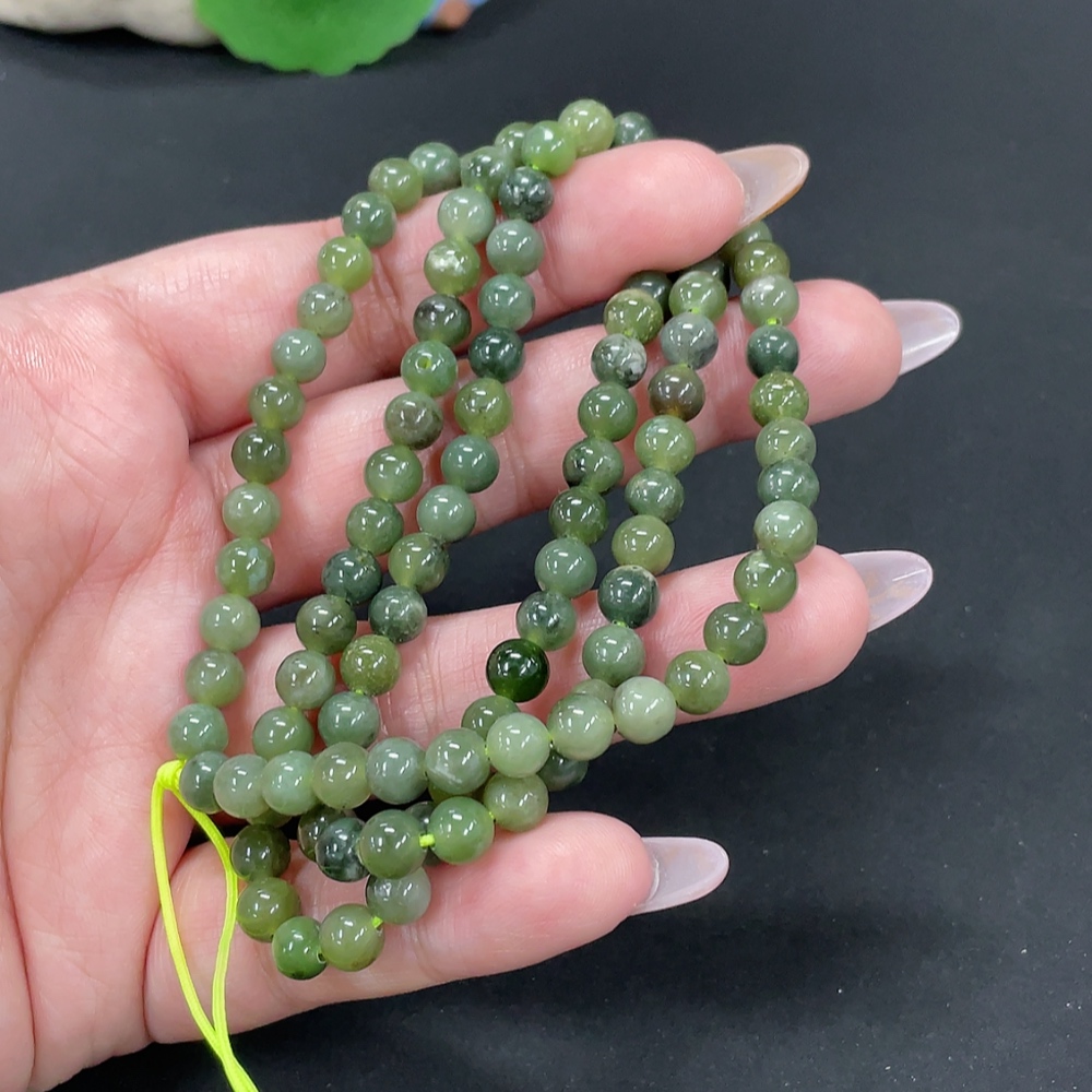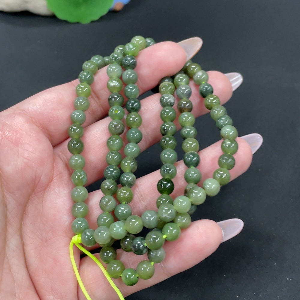 Hetian Jade Bead Necklace Approx. 6mm Total Weight About 35g Containing Other Mineral Components