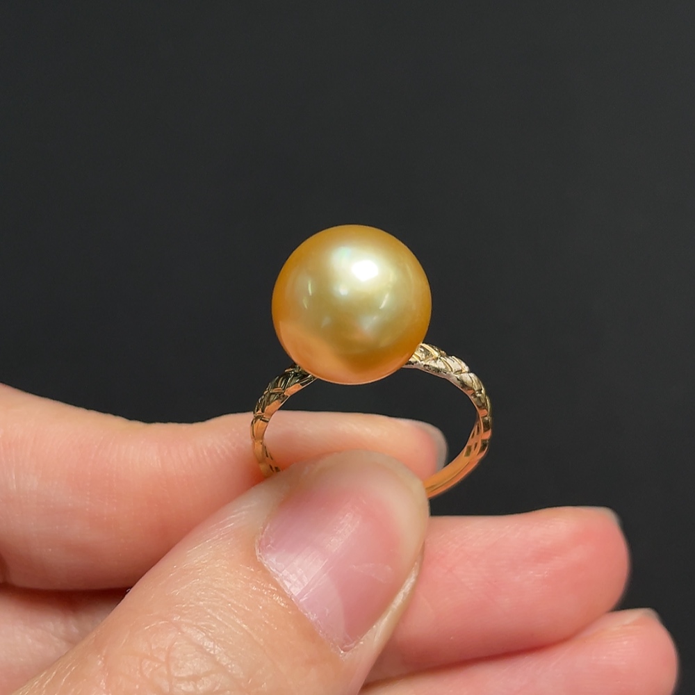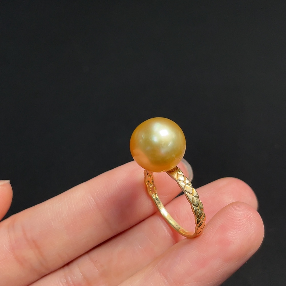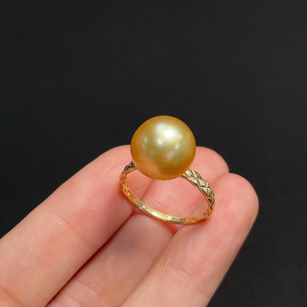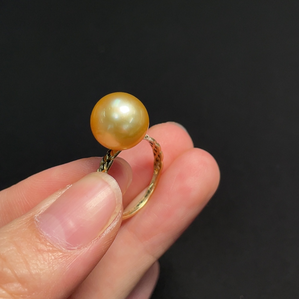 18K Sea Water Pearl Ring, Color Origin Undetermined, Total Weight Approx. 3.9g, Size 16, Stone 11.5mm