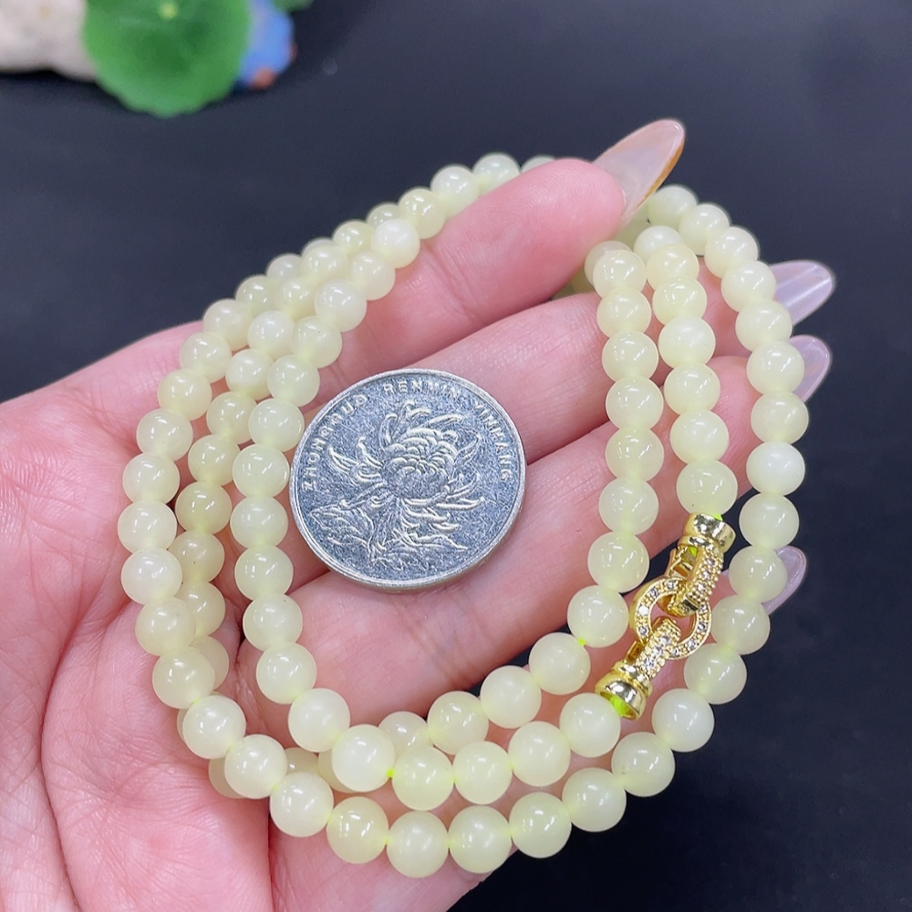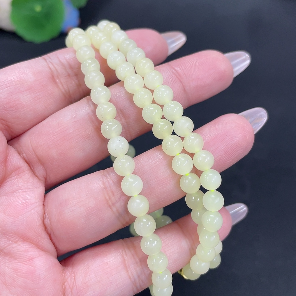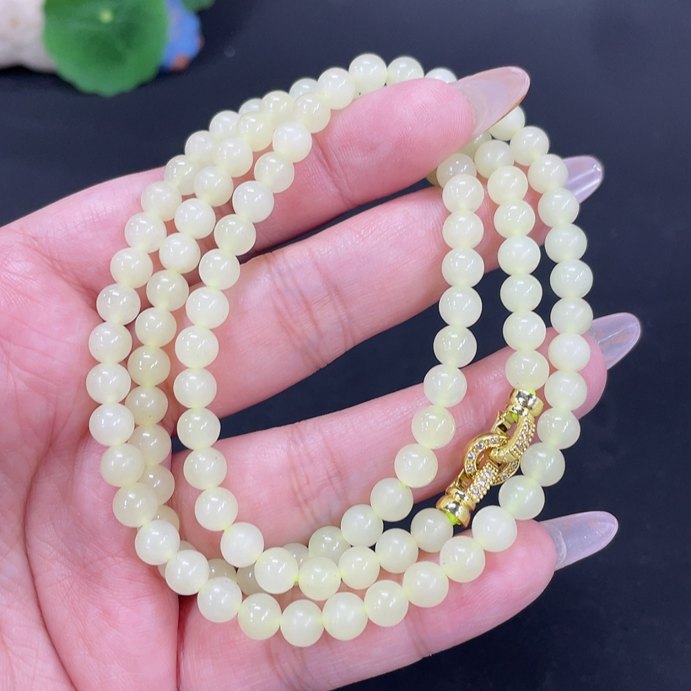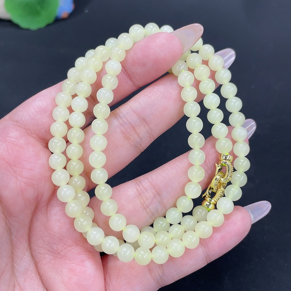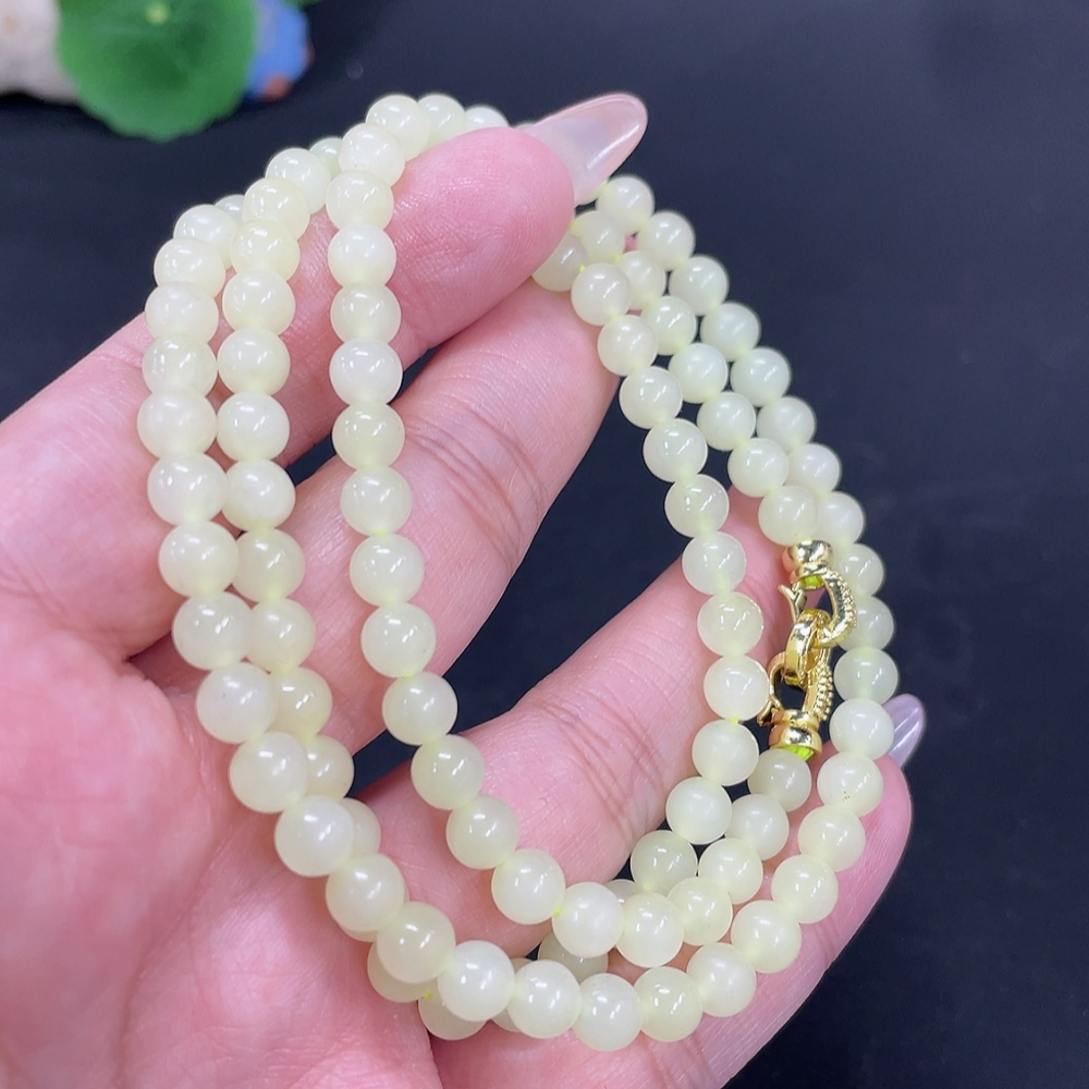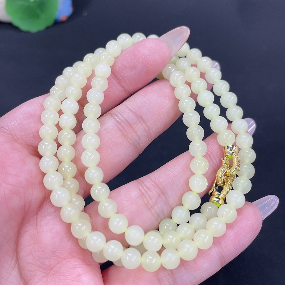 Hetian Jade Bead Necklace Approx. 5.8mm Total Weight Approx. 33g Non-Gold