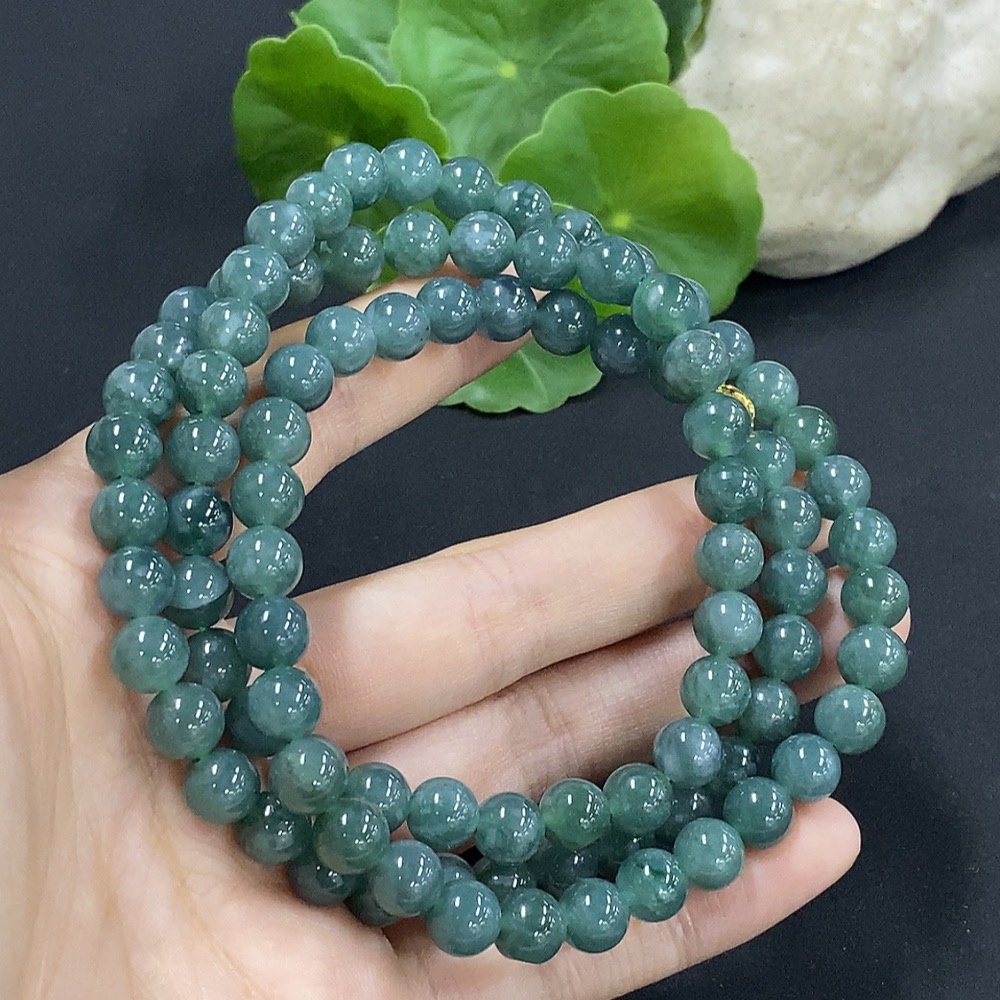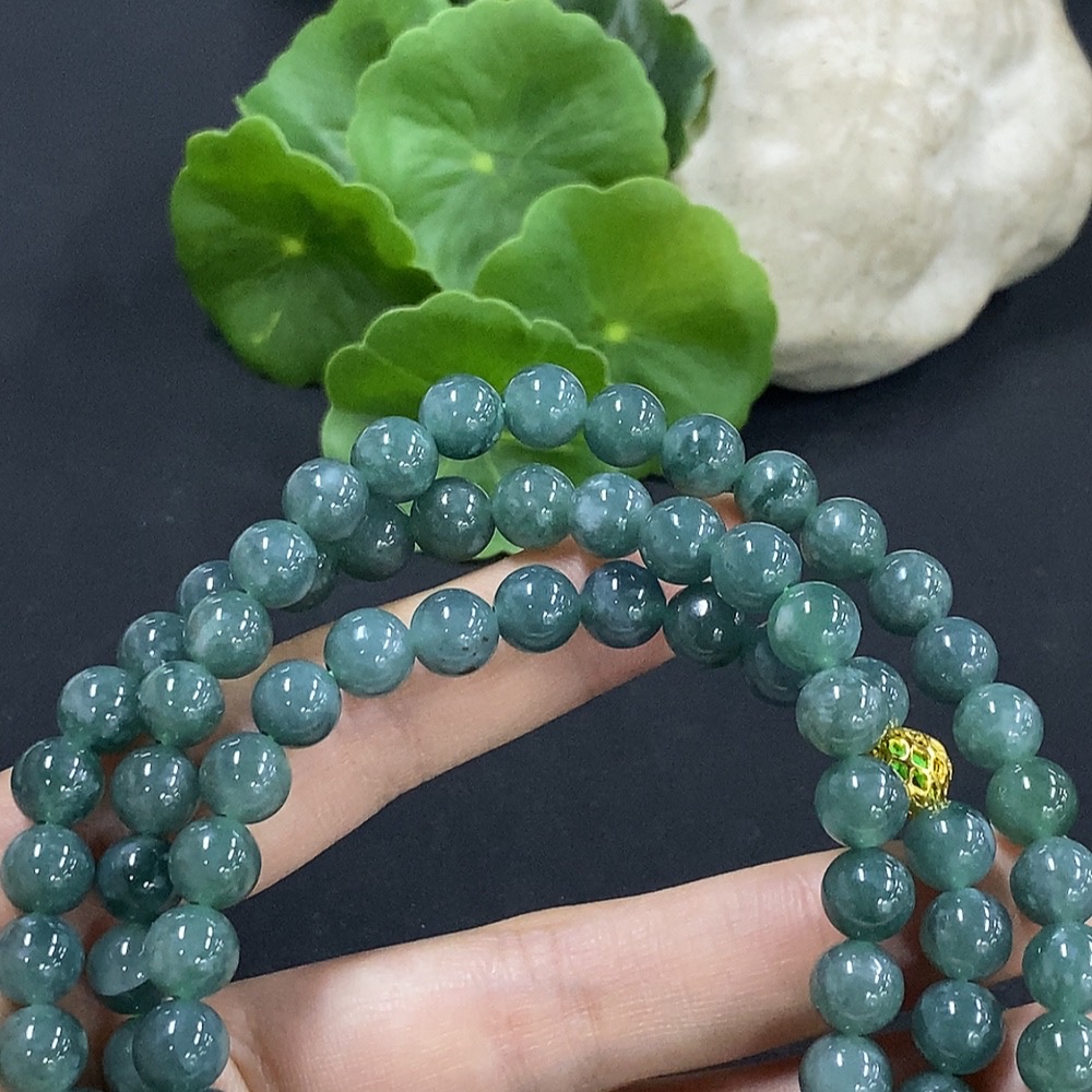 Jadeite Bead Necklace Approx. 7.5mm Non-Gold Setting Total Weight Approx. 71.27g