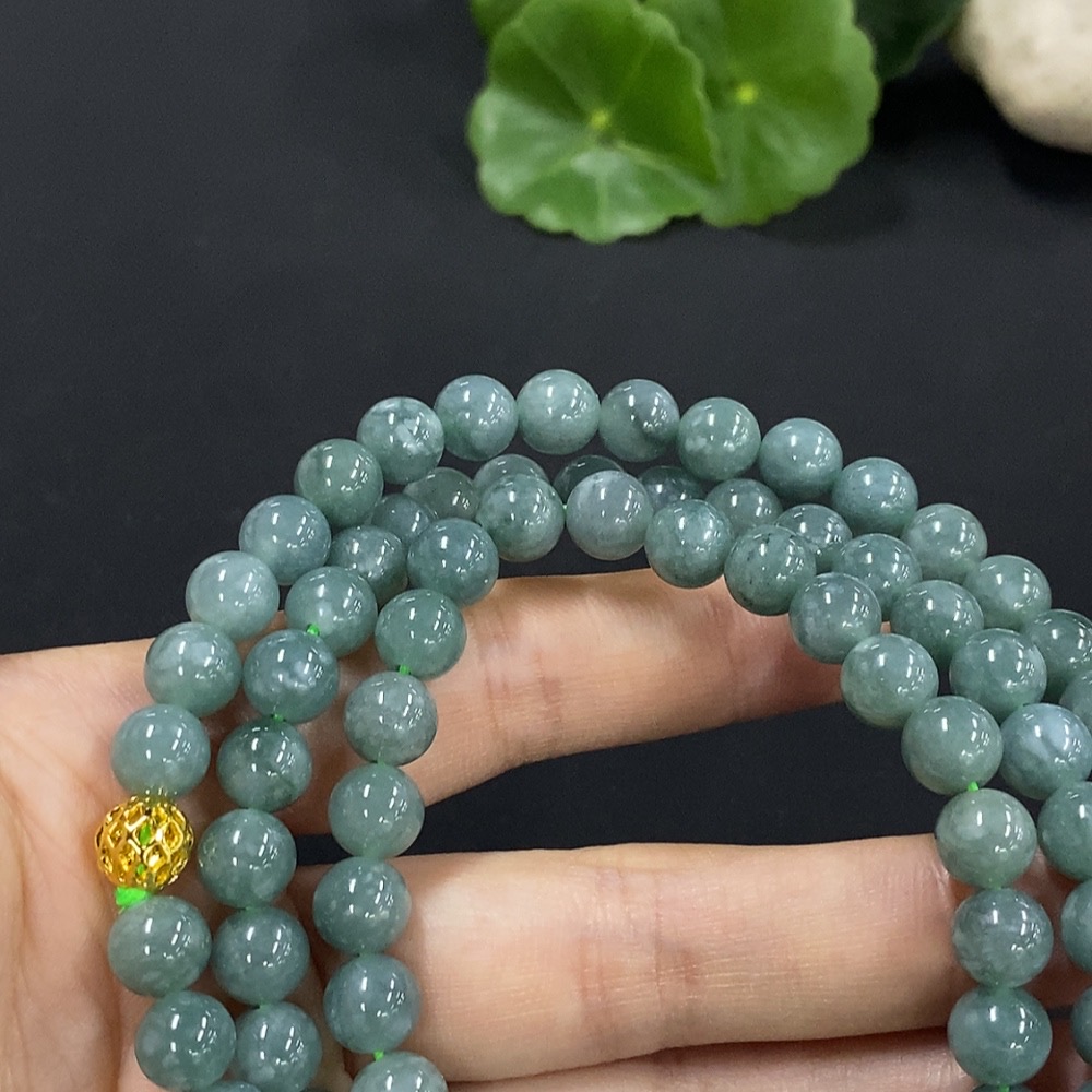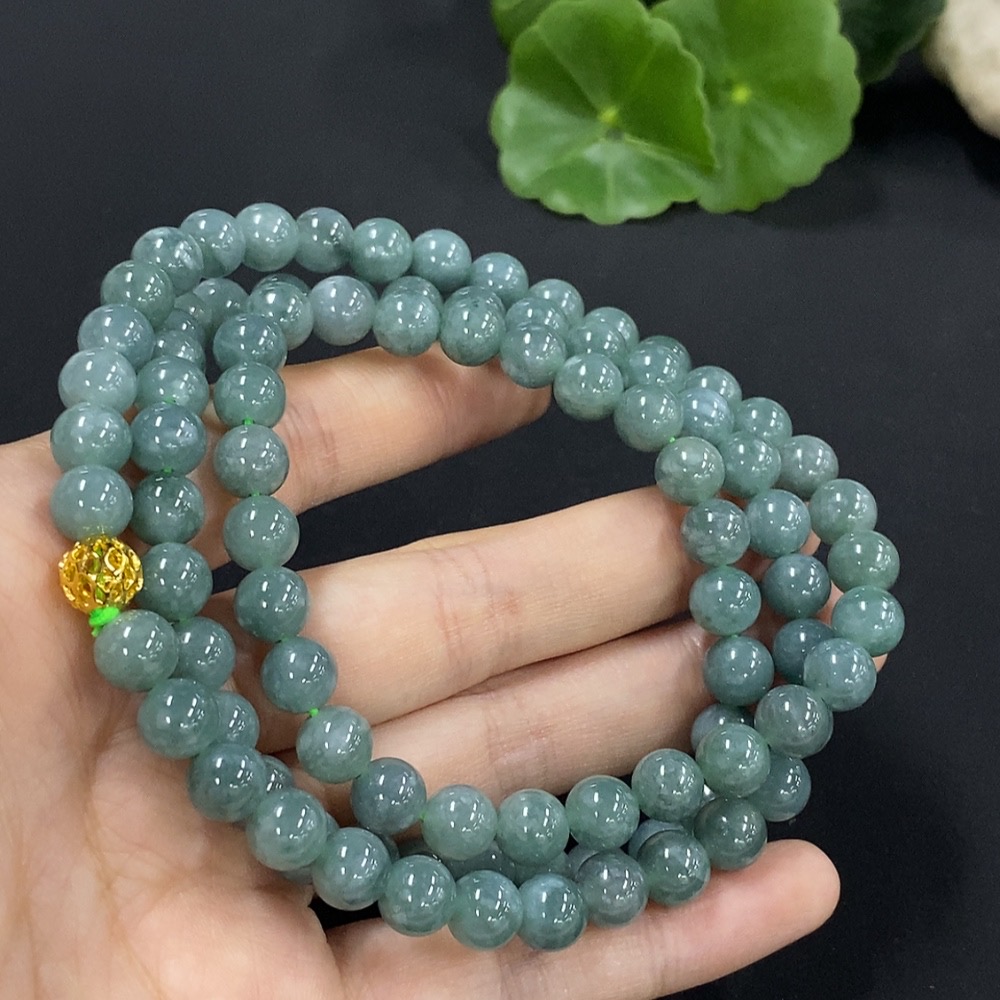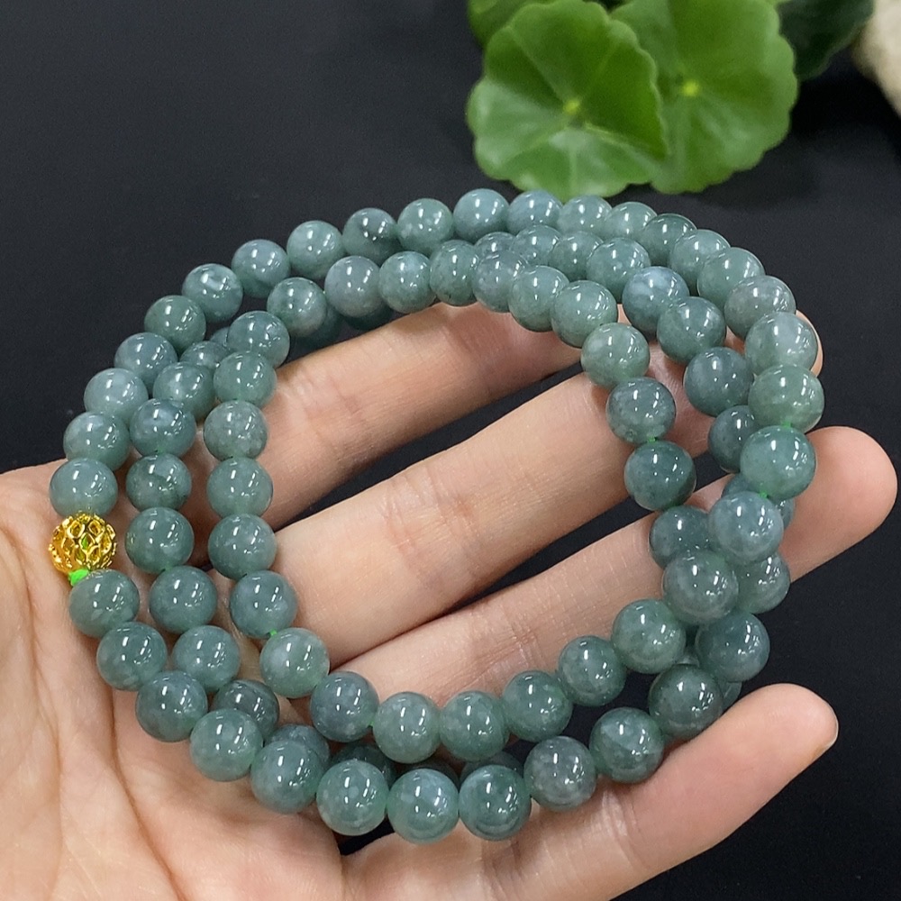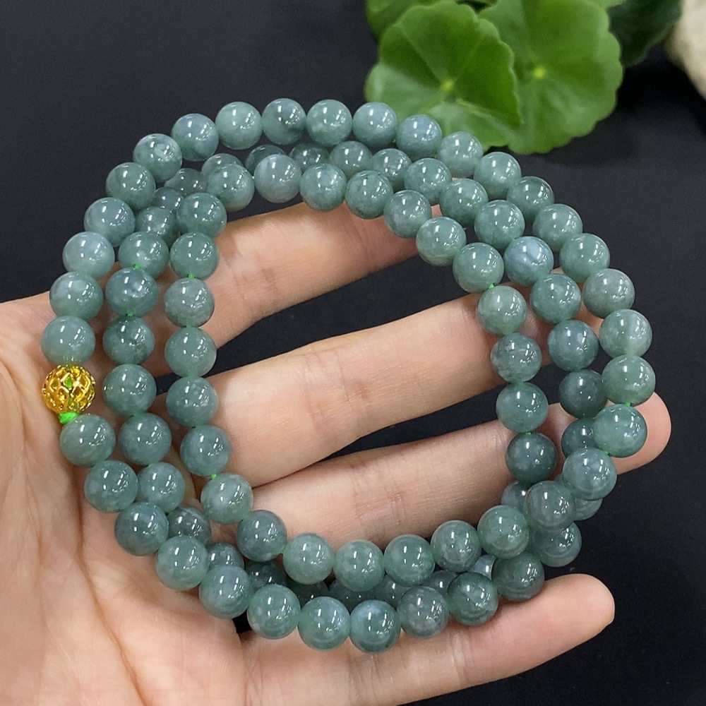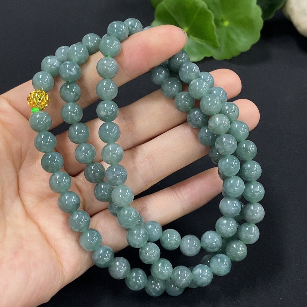 Jadeite Bead Necklace Approx. 7.6mm Non-Gold Setting Total Weight Approx. 71.26g