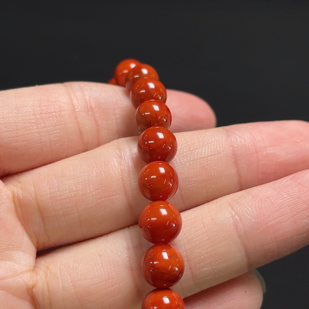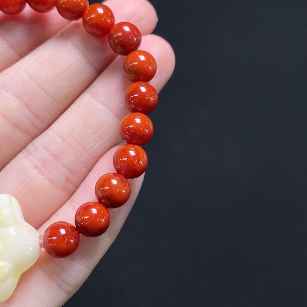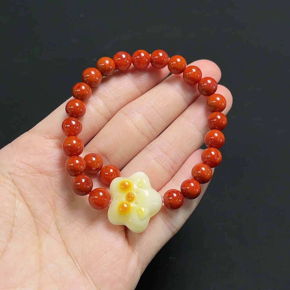 Red Agate Bracelet + Loose Beads with Amber, Visible Organic Matter, Total Weight Approx. 13.1g, Size About 6.9mm