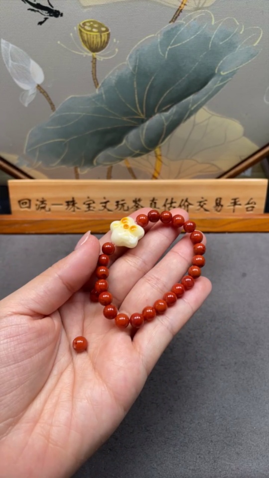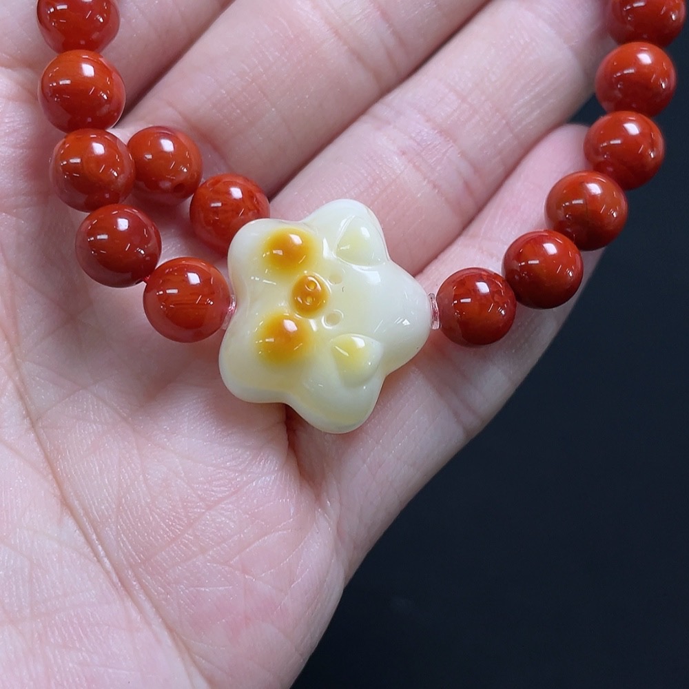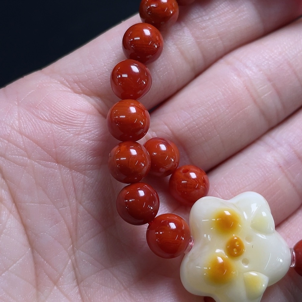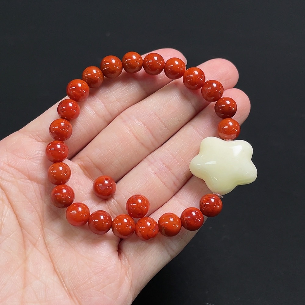 Red Agate Bracelet + Loose Beads with Amber, Visible Organic Matter, Total Weight Approx. 13.1g, Size About 6.9mm