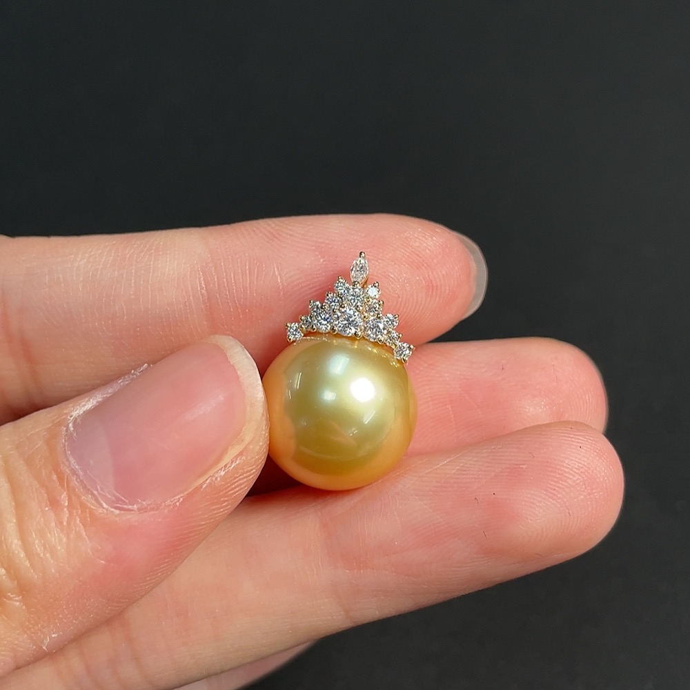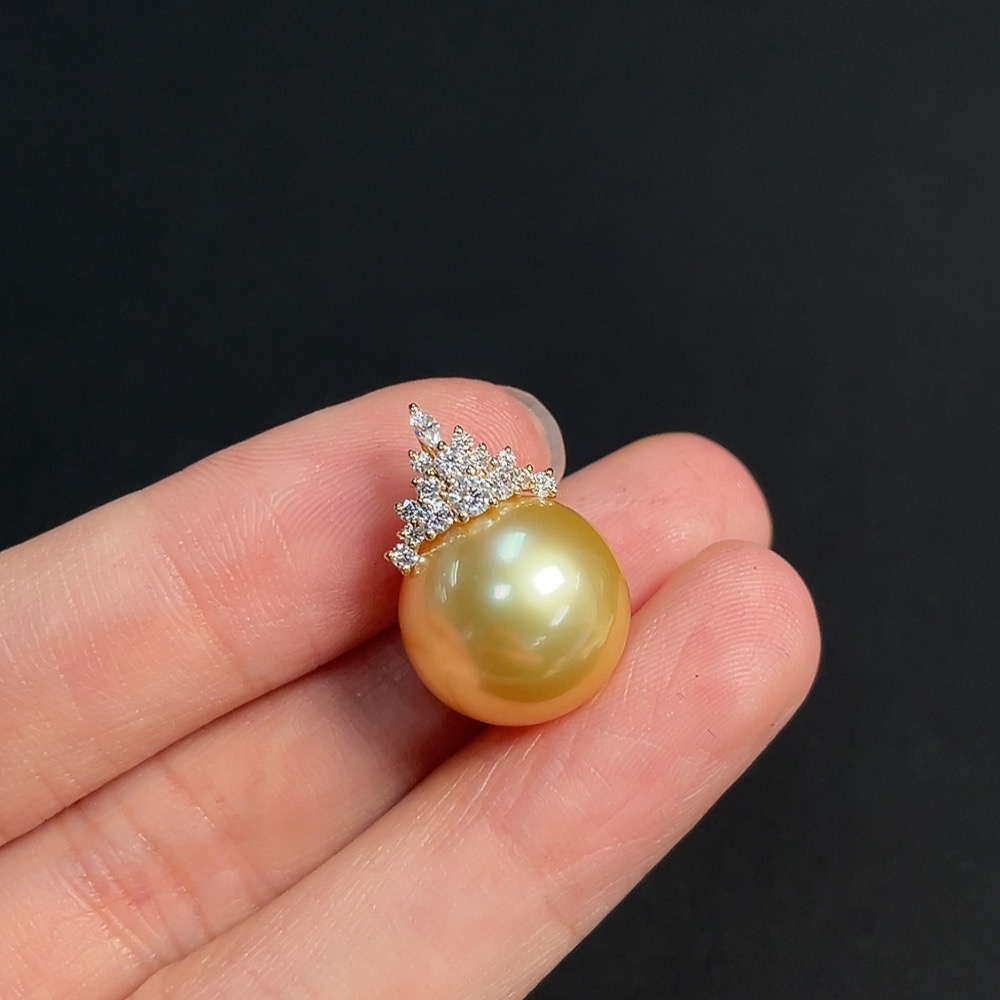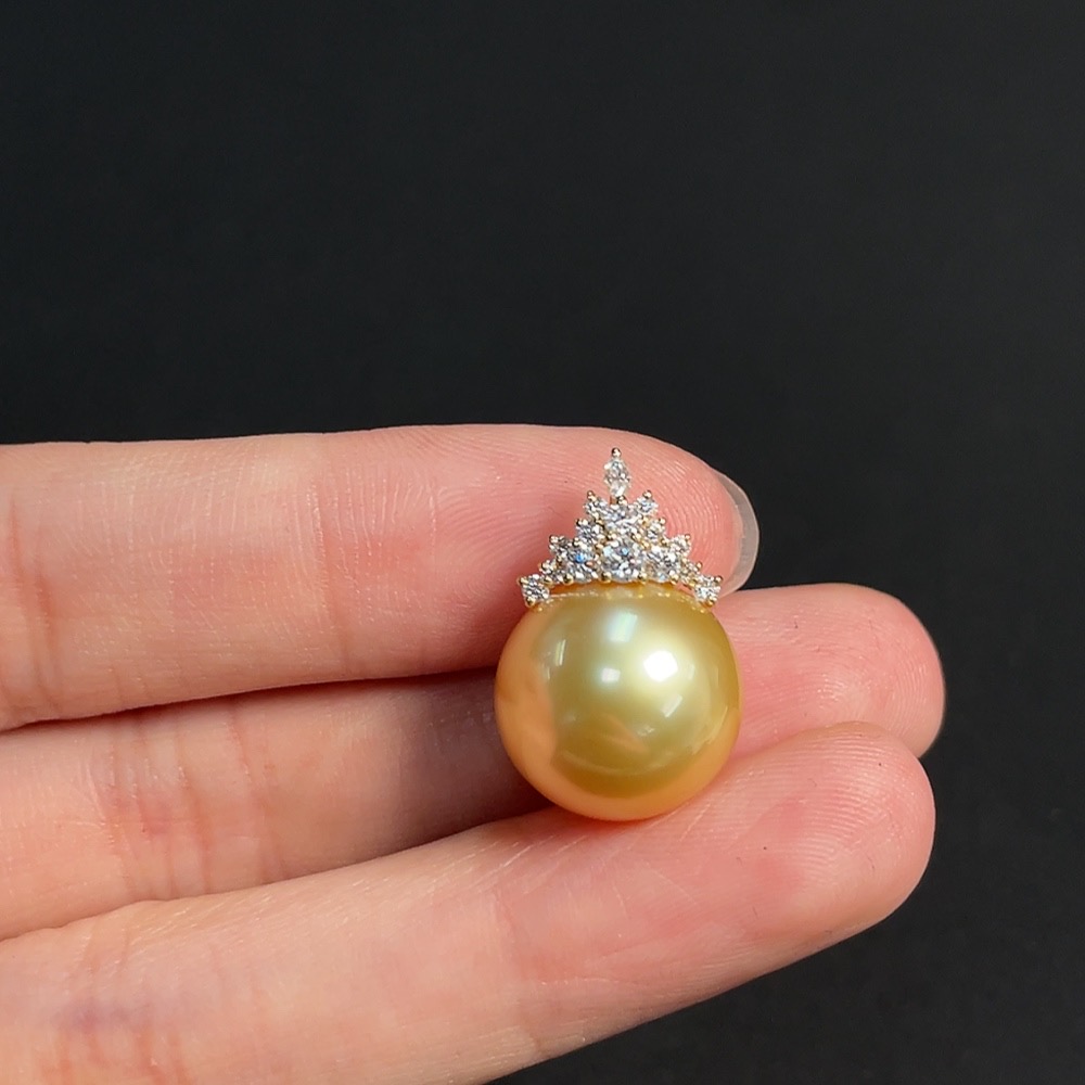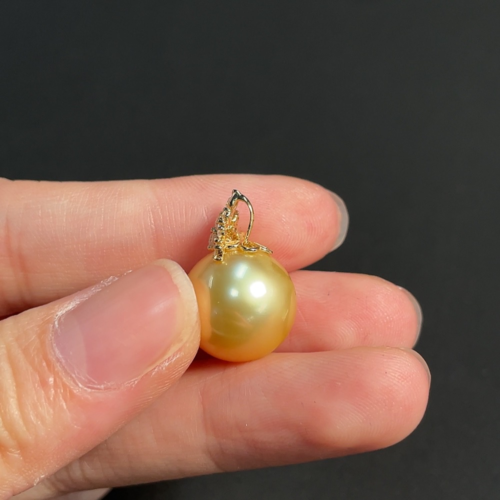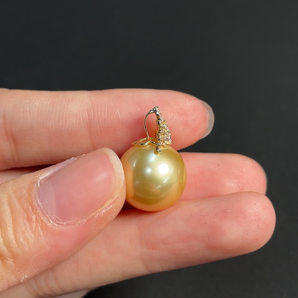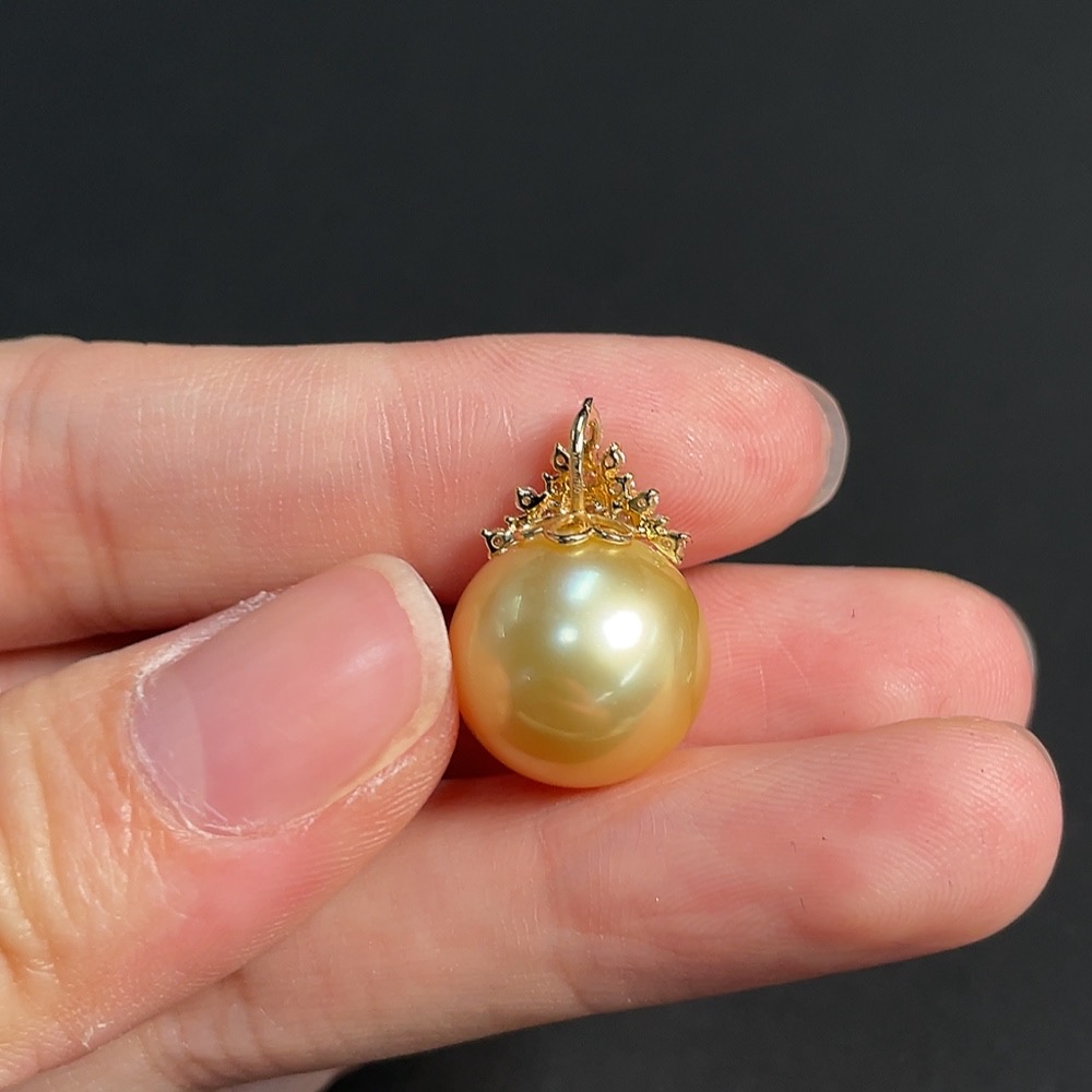 Seawater Pearl Pendant in 18k Gold, Approximately 13.8mm, Total Weight About 4.37g, Color Origin Undetermined, Non-Diamond