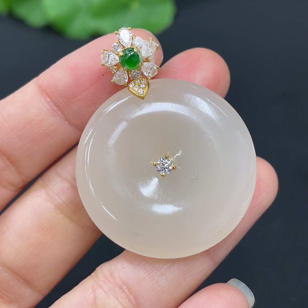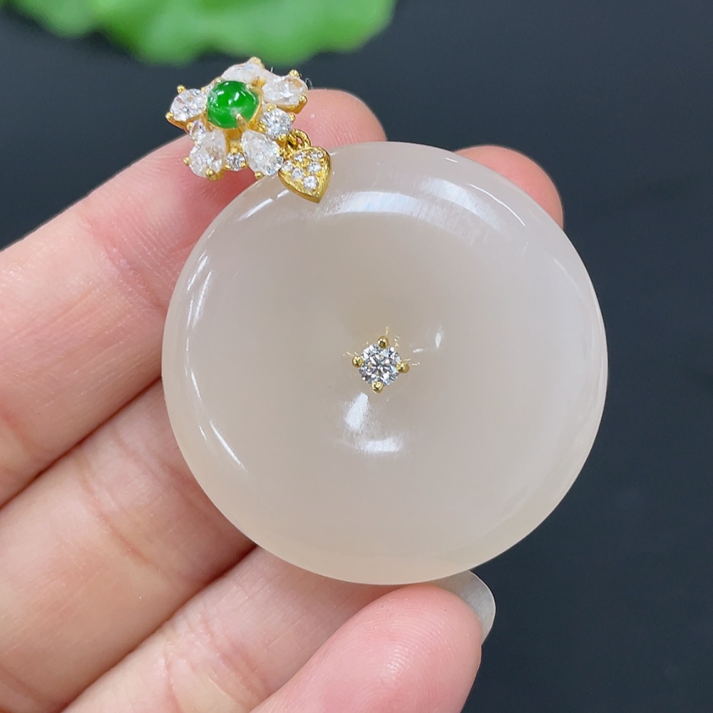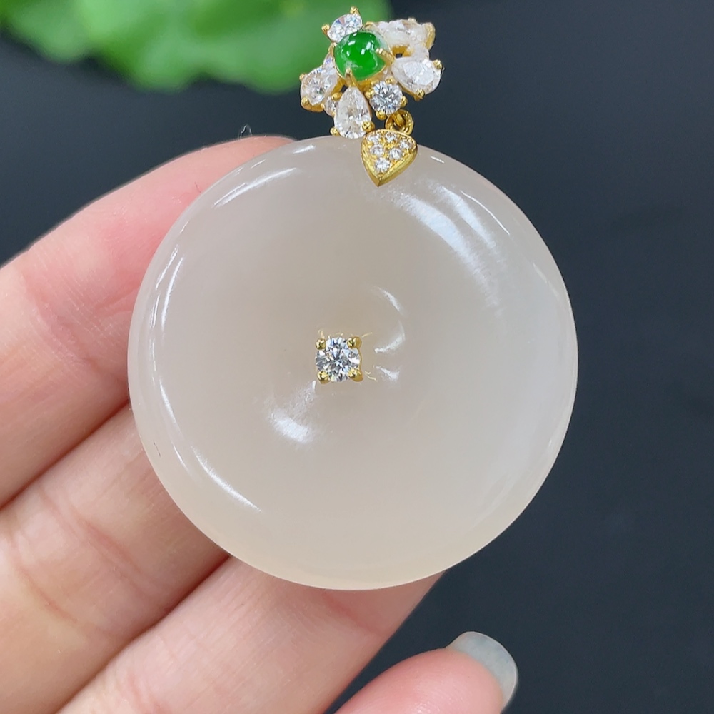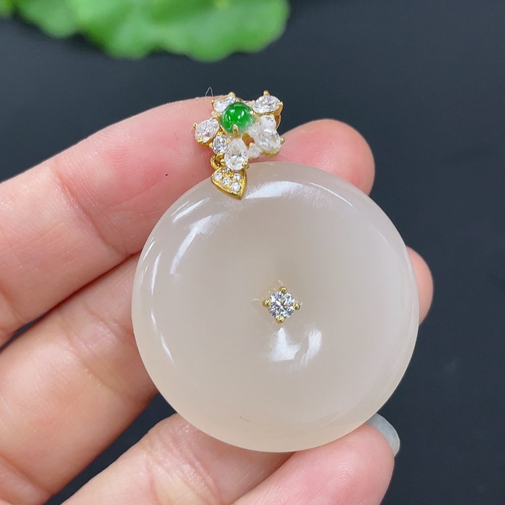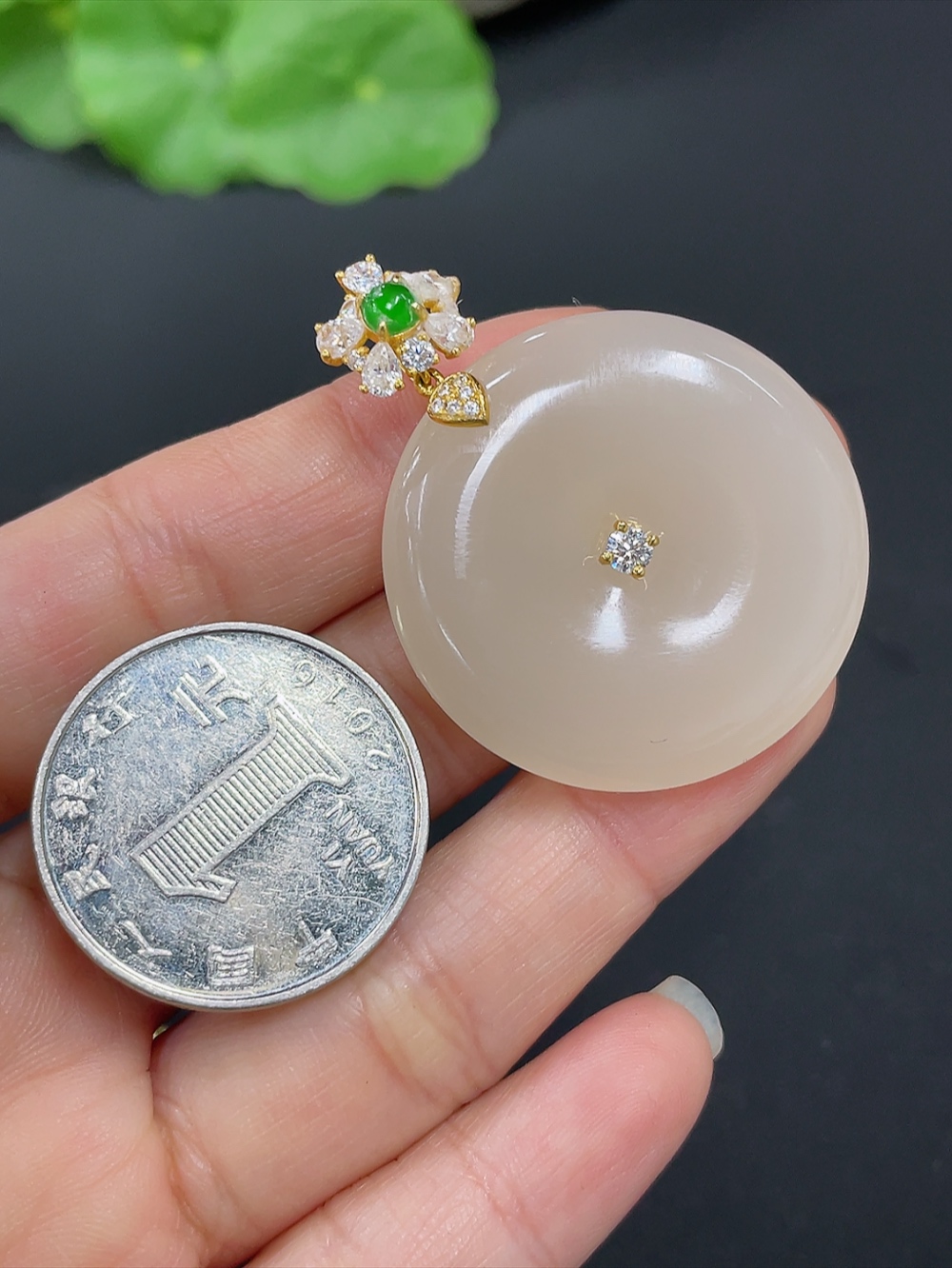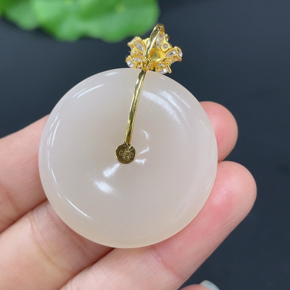 Hetian Jade Pendant, Peace Knot, 18k Gold Clasp, Total Weight Approx. 14.4g, Non-Diamond
