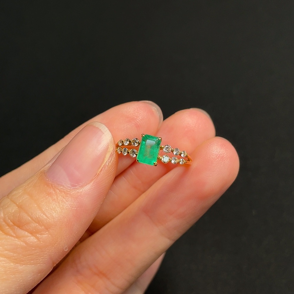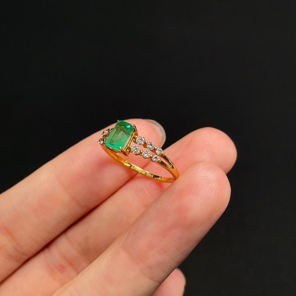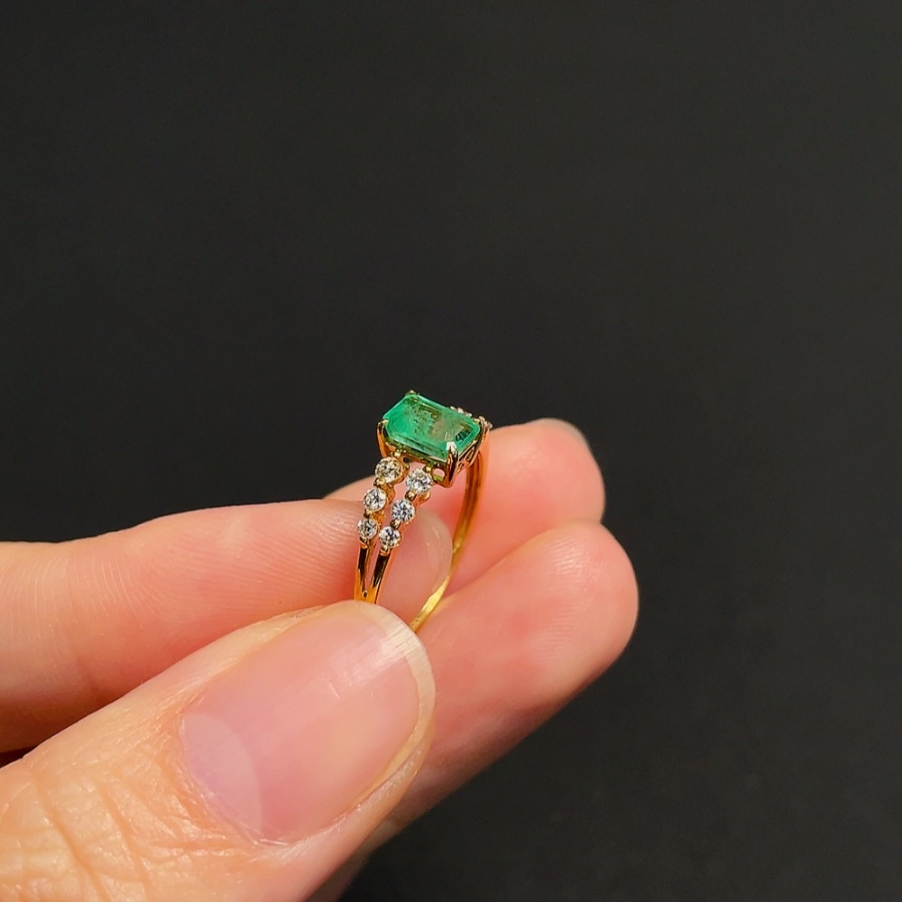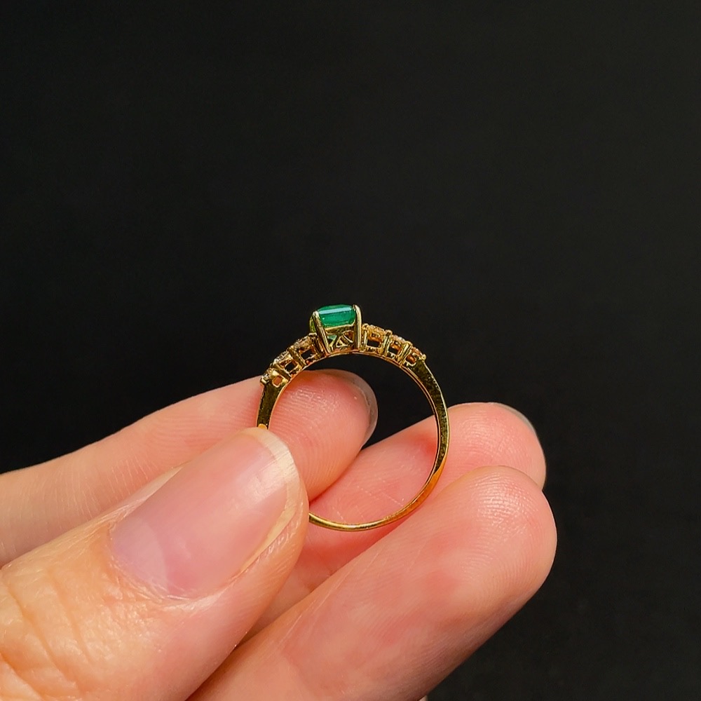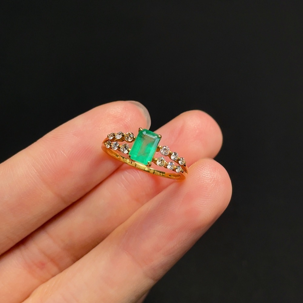 Emerald Ring in 18K Gold, Size 10, Total Weight Approx. 1.37g, Clarity Enhanced, Accented with Diamonds