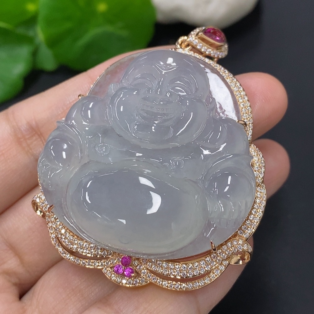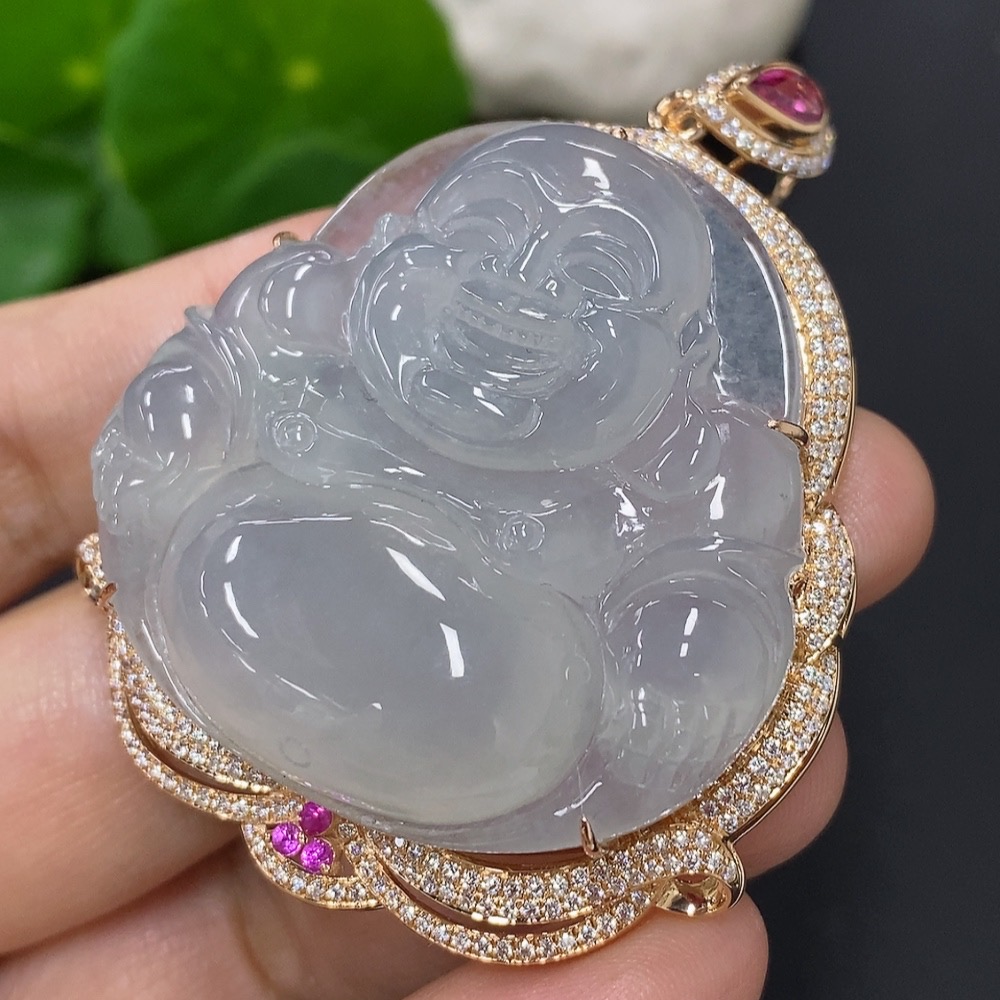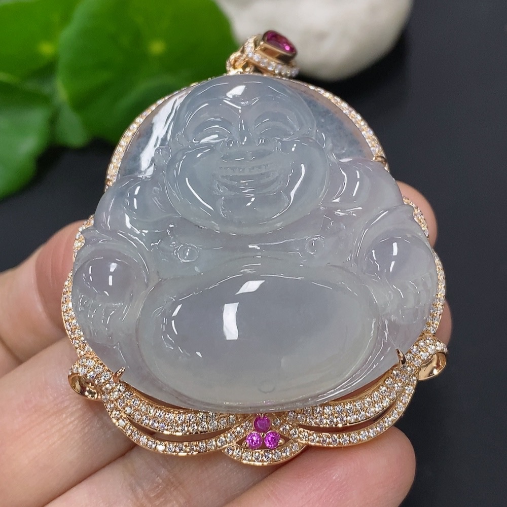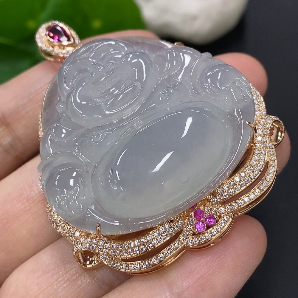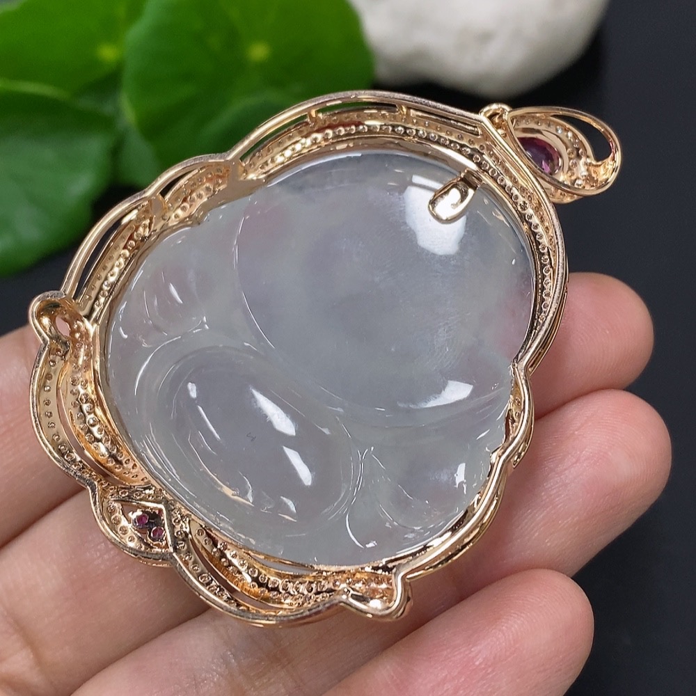 Jadeite Buddha Pendant with 18K Gold Mounting, Total Weight Approx. 35.4g (Non-Diamond)