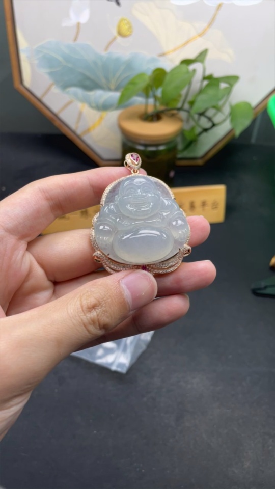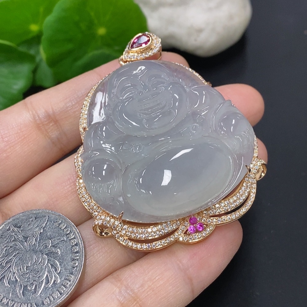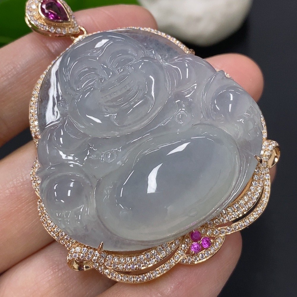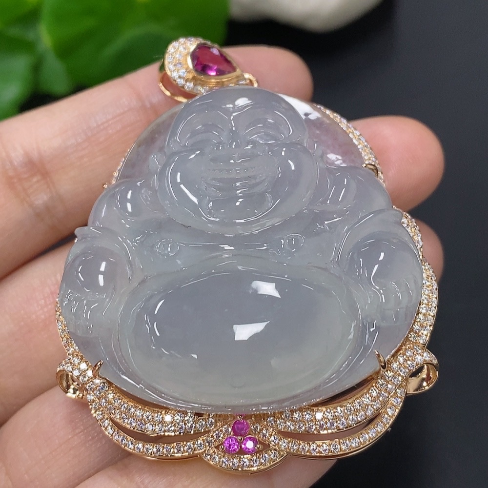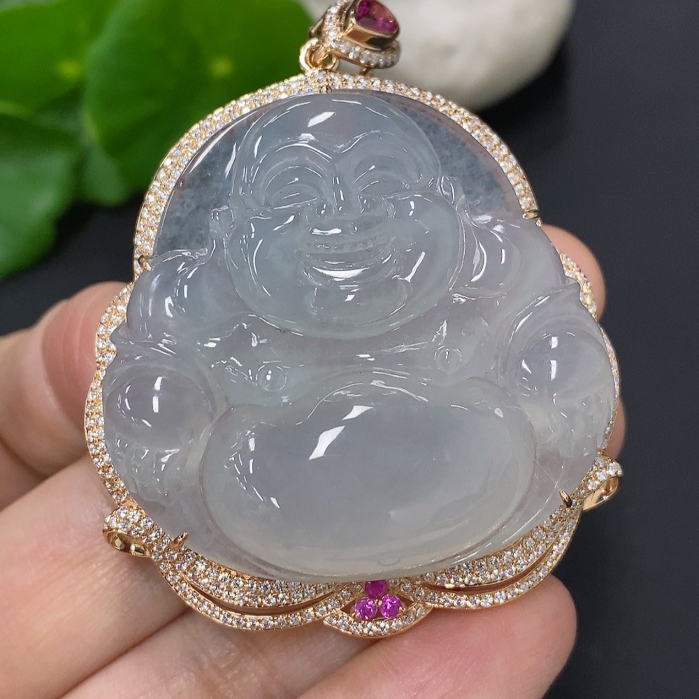 Jadeite Buddha Pendant with 18K Gold Mounting, Total Weight Approx. 35.4g (Non-Diamond)