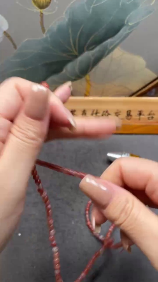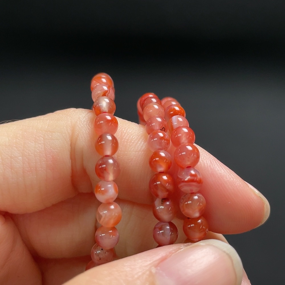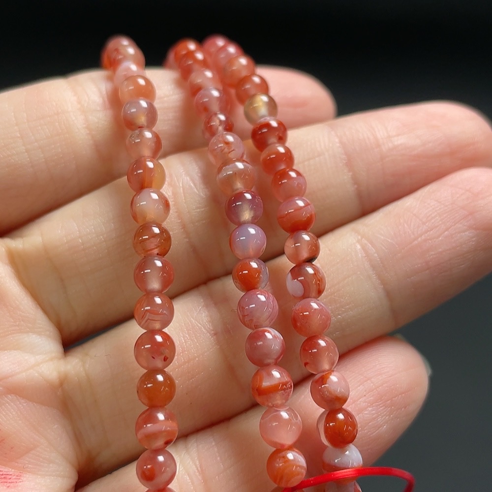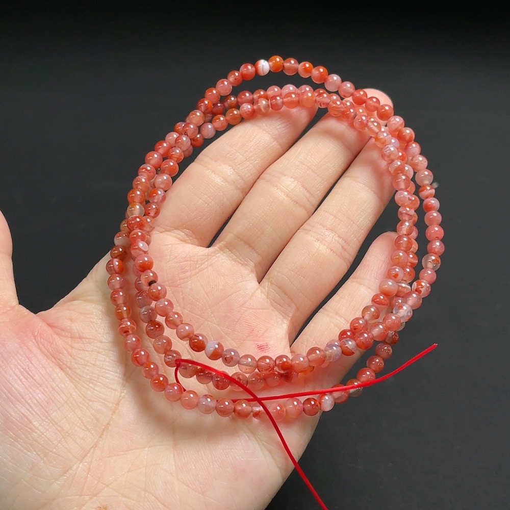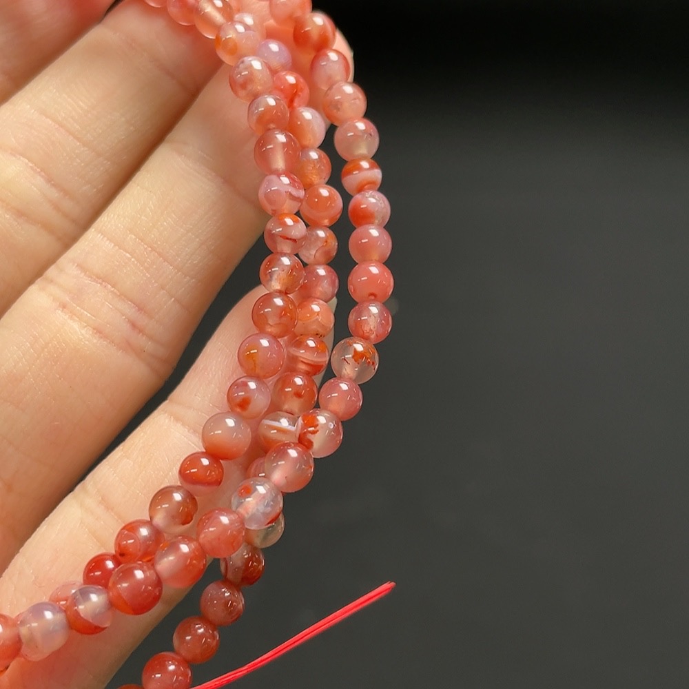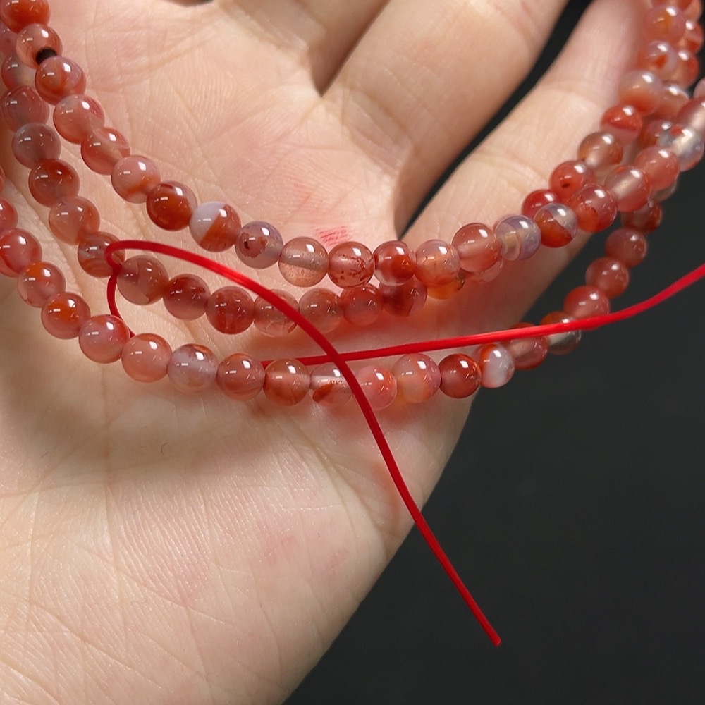 South Red Agate Bead Necklace with Visible Organic Matter, Total Weight Approximately 17g, Bead Size Around 4.2mm