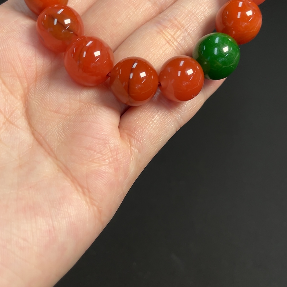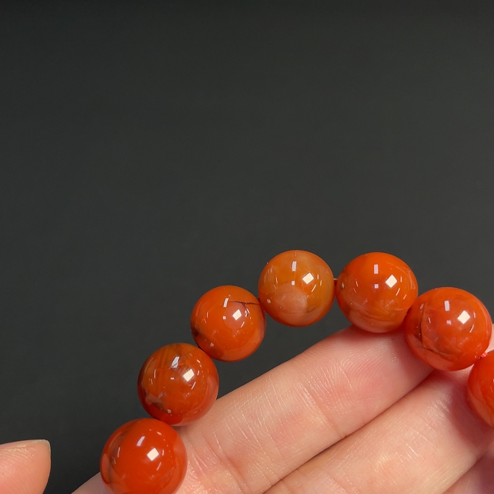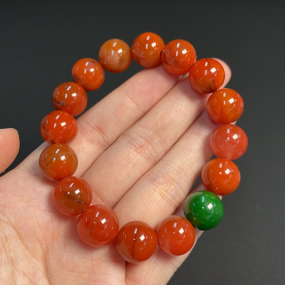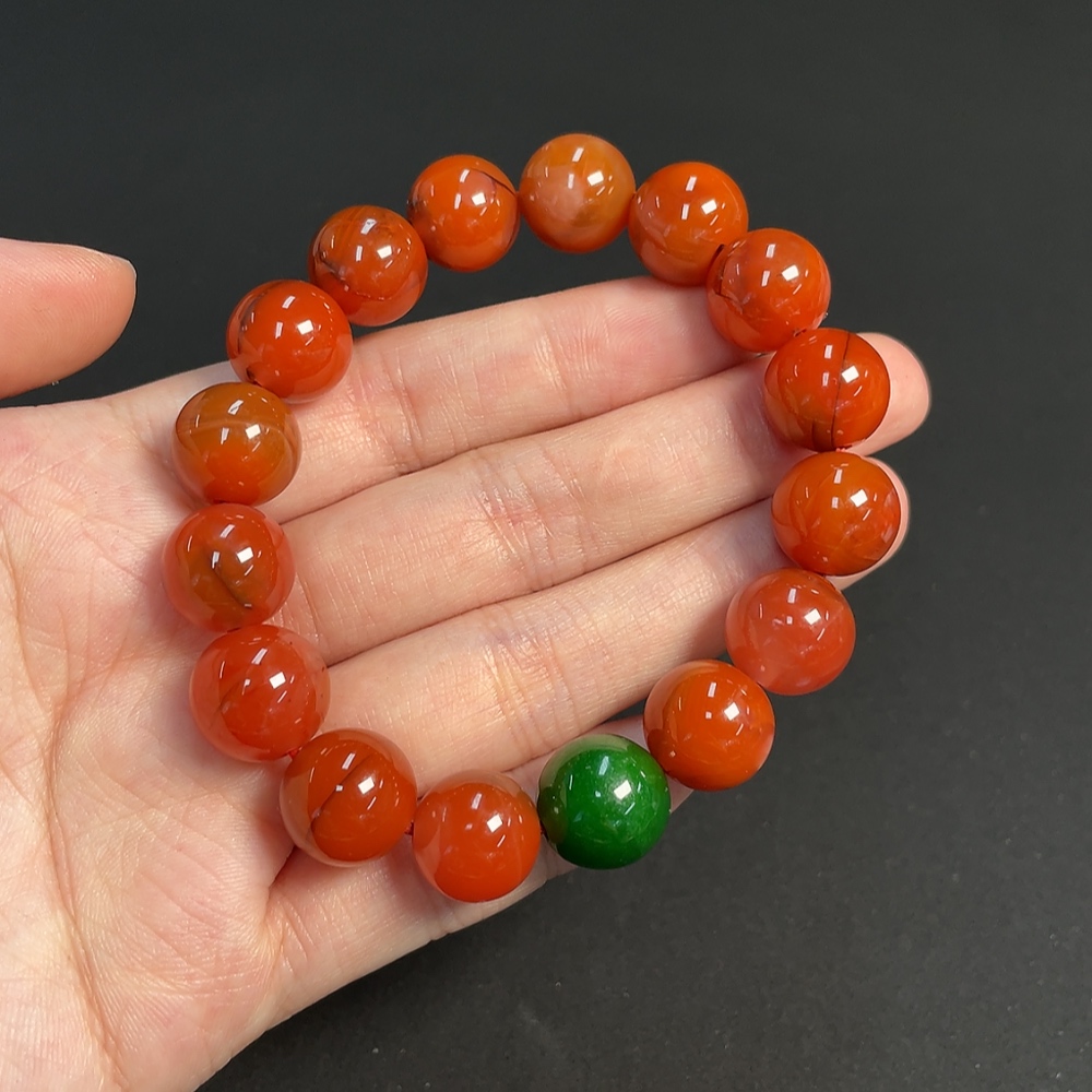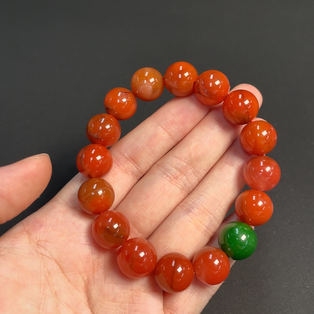 Red Agate Bracelet with Visible Organic Matter, Total Weight Approx. 43.97g, Size About 12.2mm