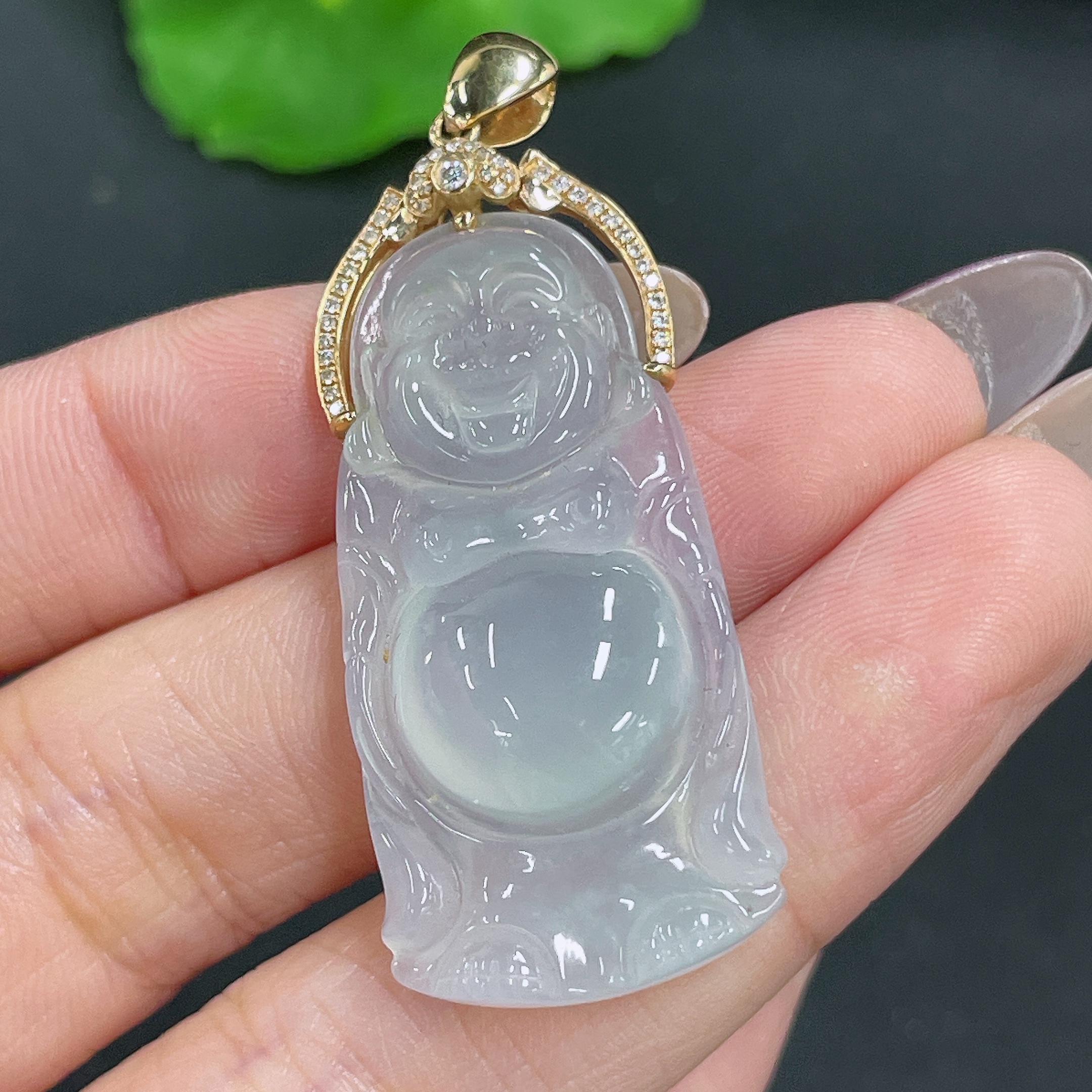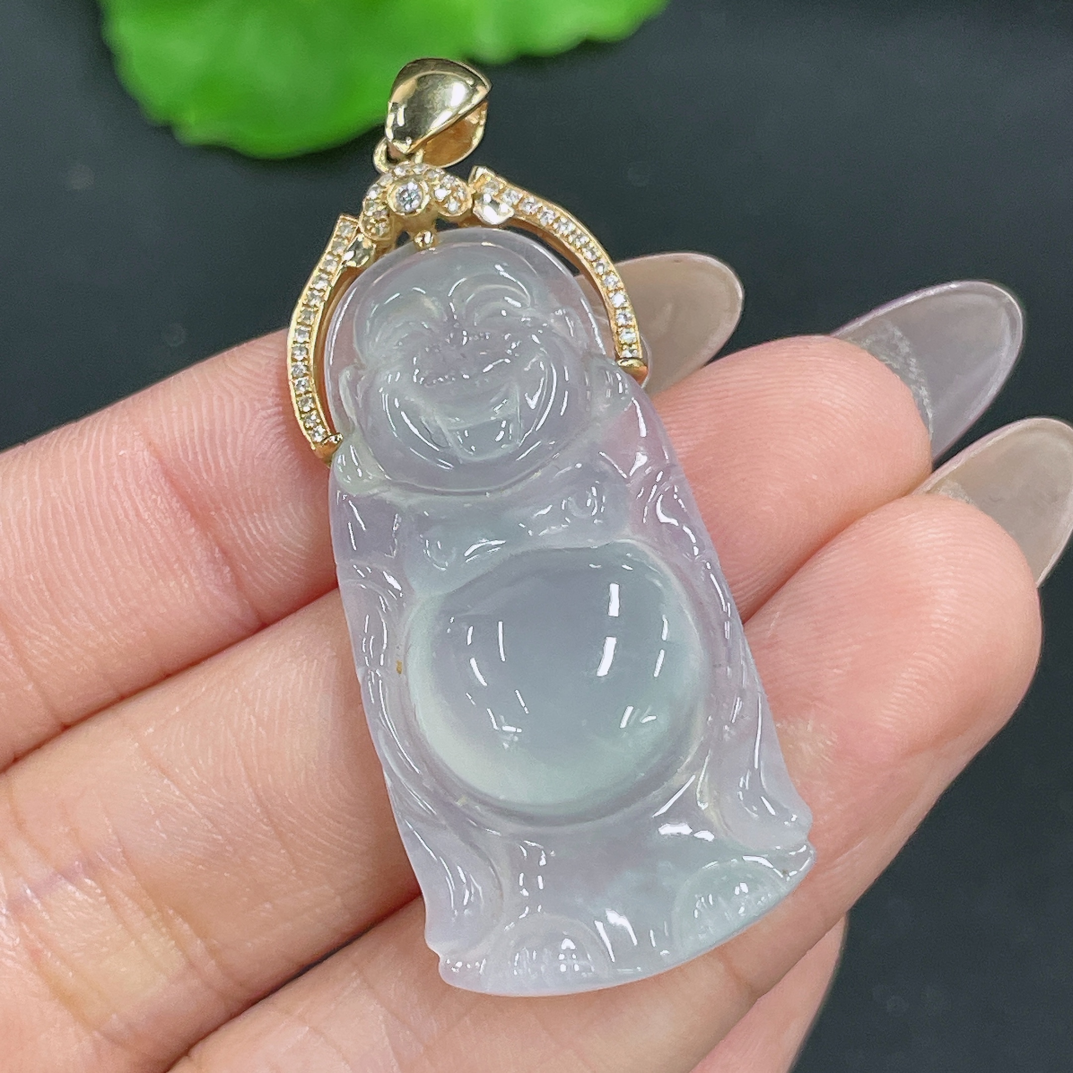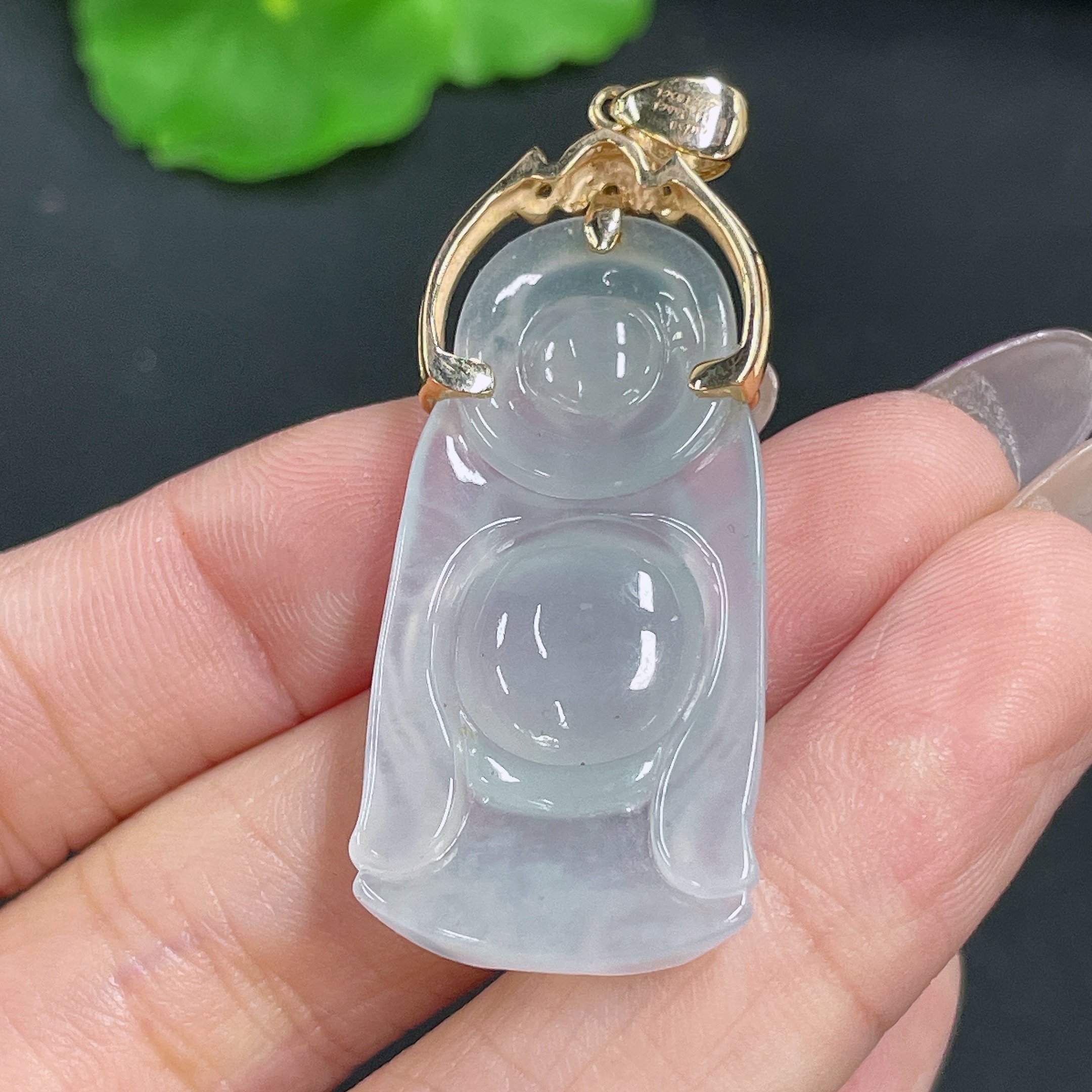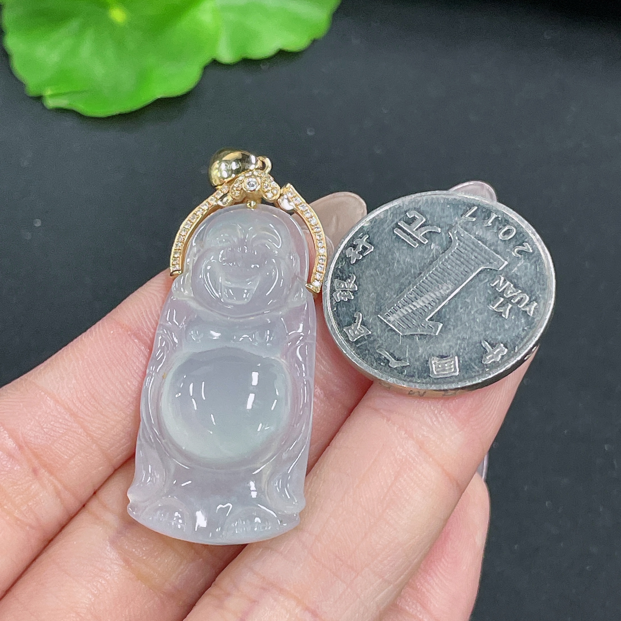 Jadeite Pendant Buddha 18K Gold Inlaid with Diamonds Total Weight Approx. 8.88g