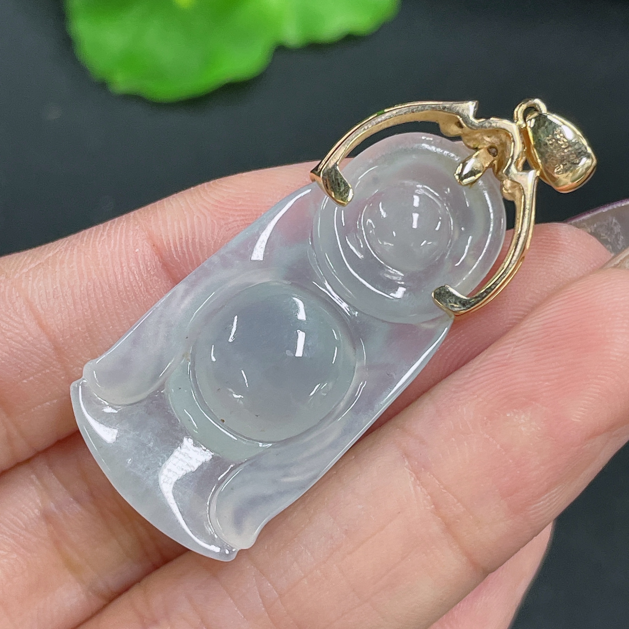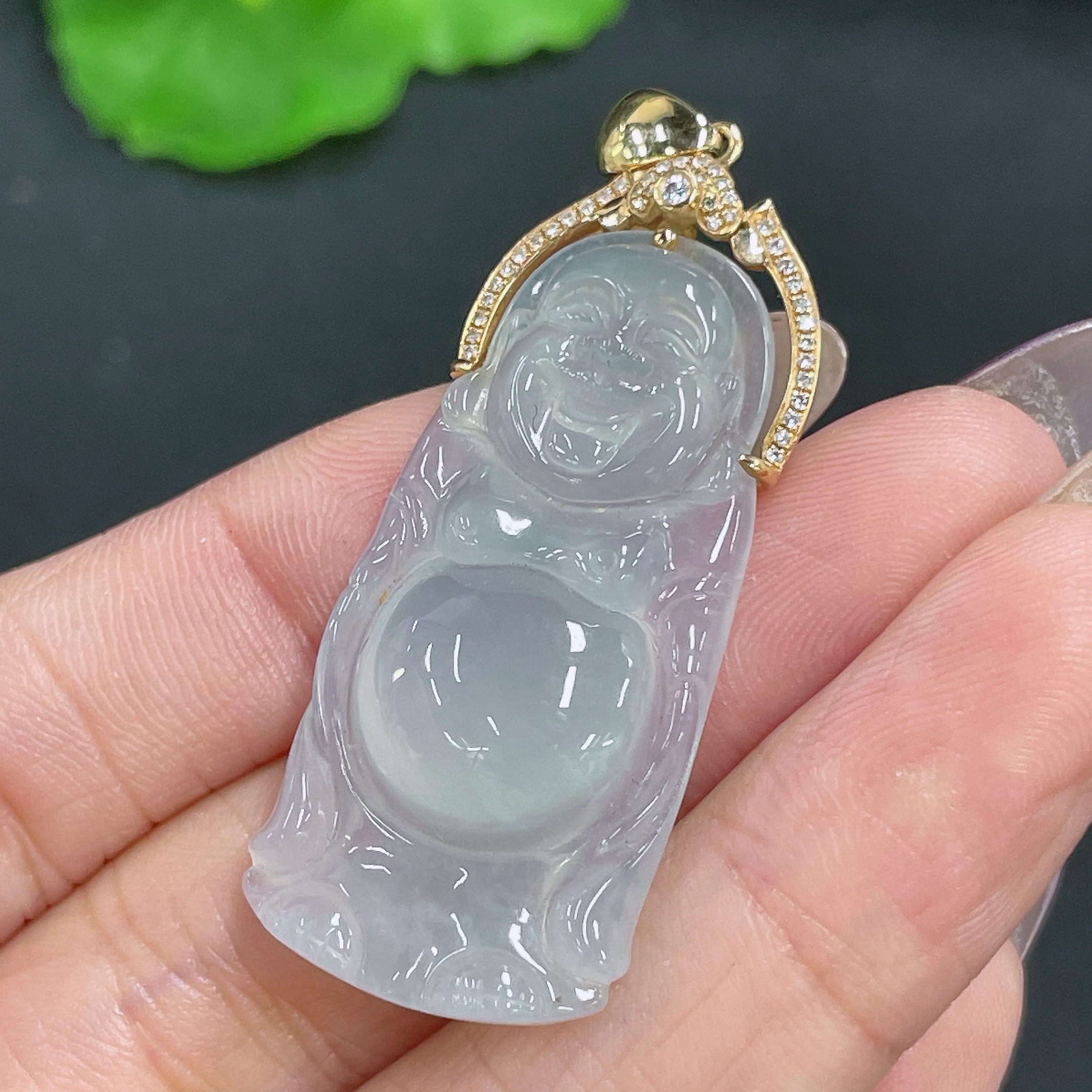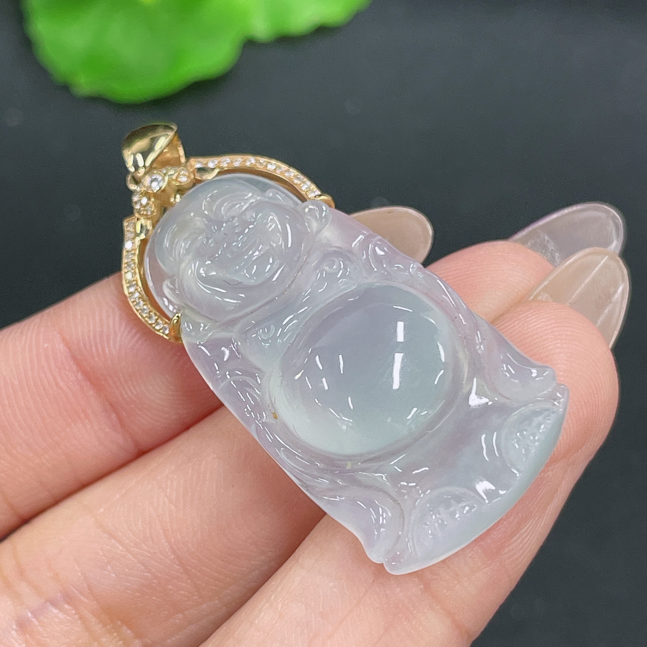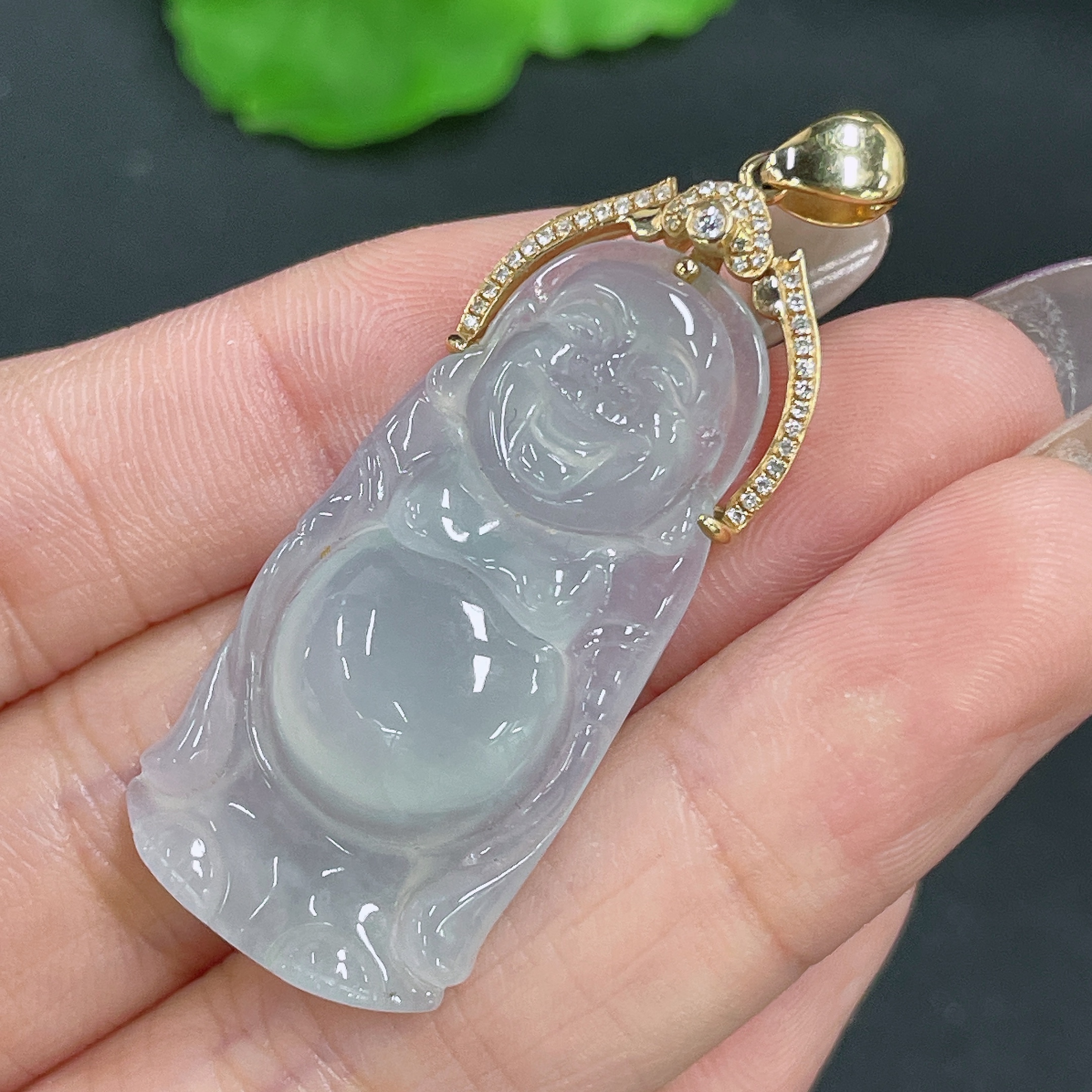Jadeite Pendant Buddha 18K Gold Inlaid with Diamonds Total Weight Approx. 8.88g