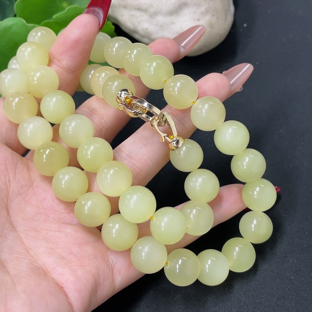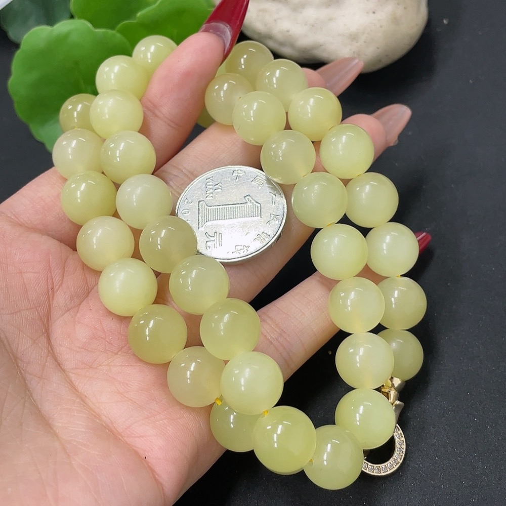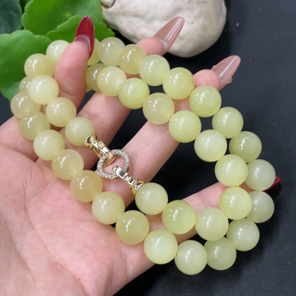 Hetian Jade Bead Necklace Non-Gold Card 12.1mm Approx. Total Weight About 110g