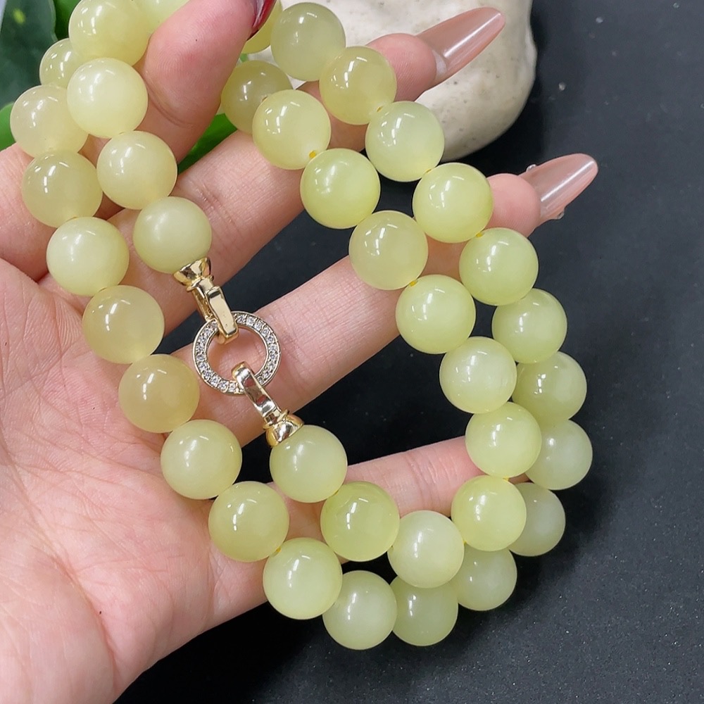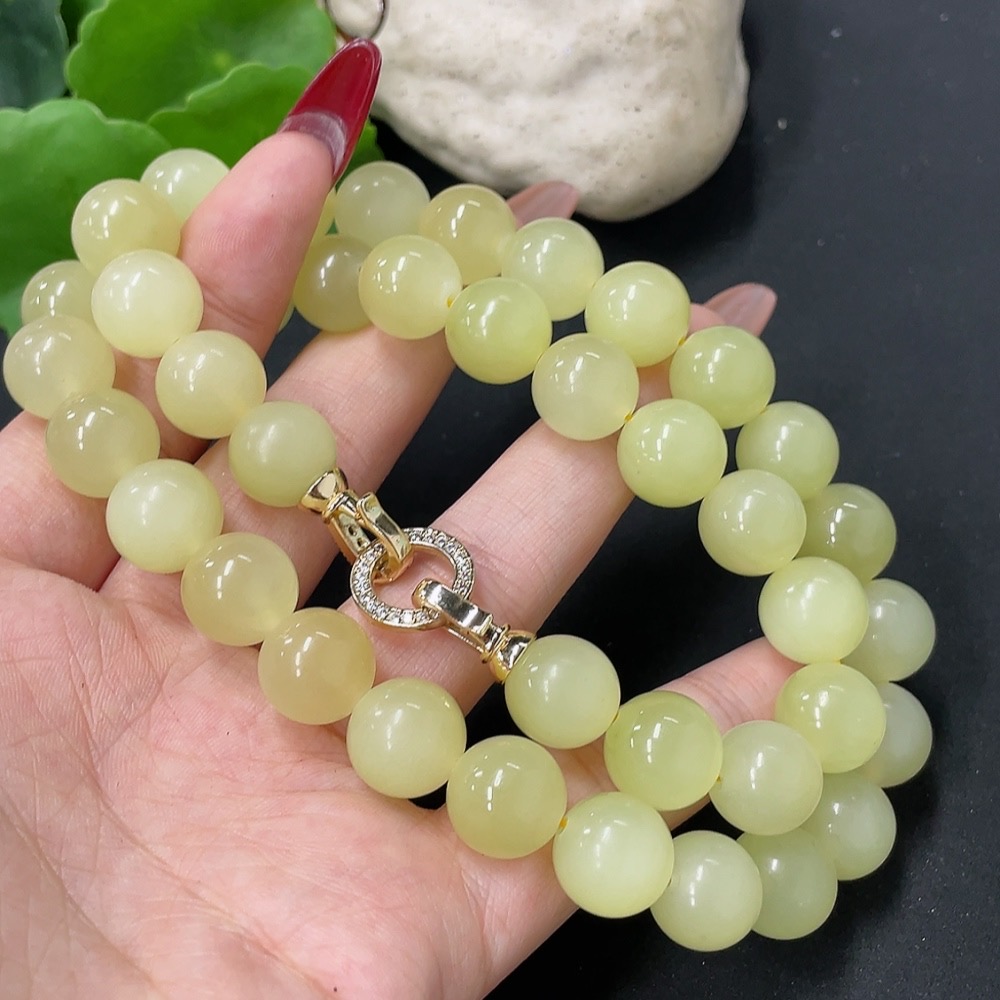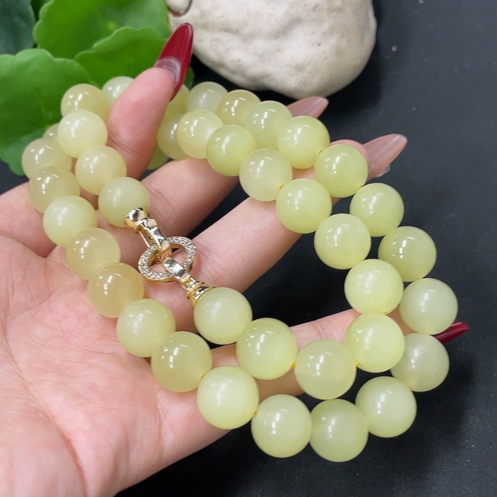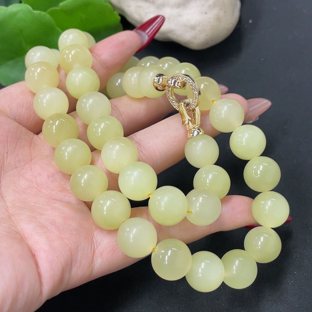 Hetian Jade Bead Necklace Non-Gold Card 12.1mm Approx. Total Weight About 110g