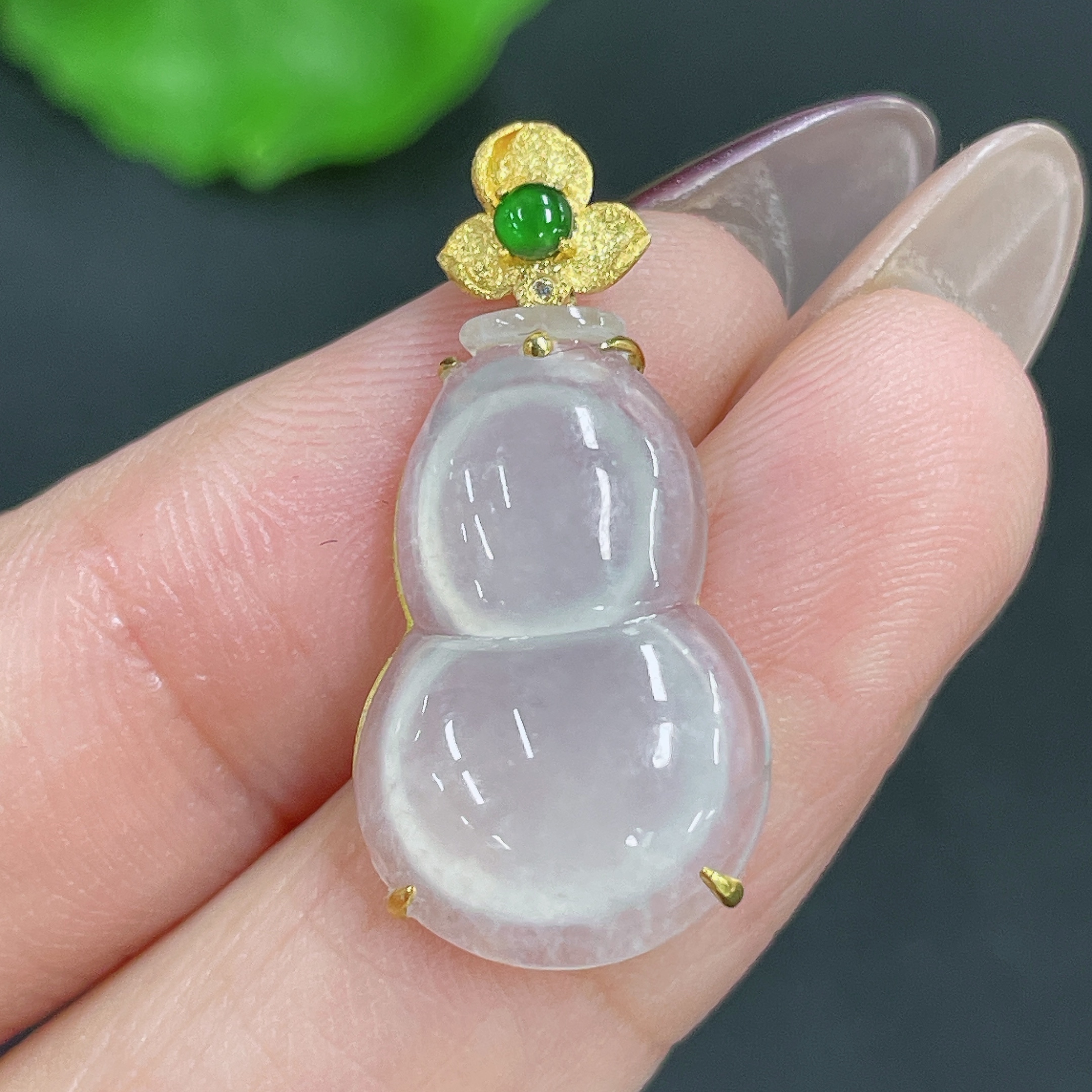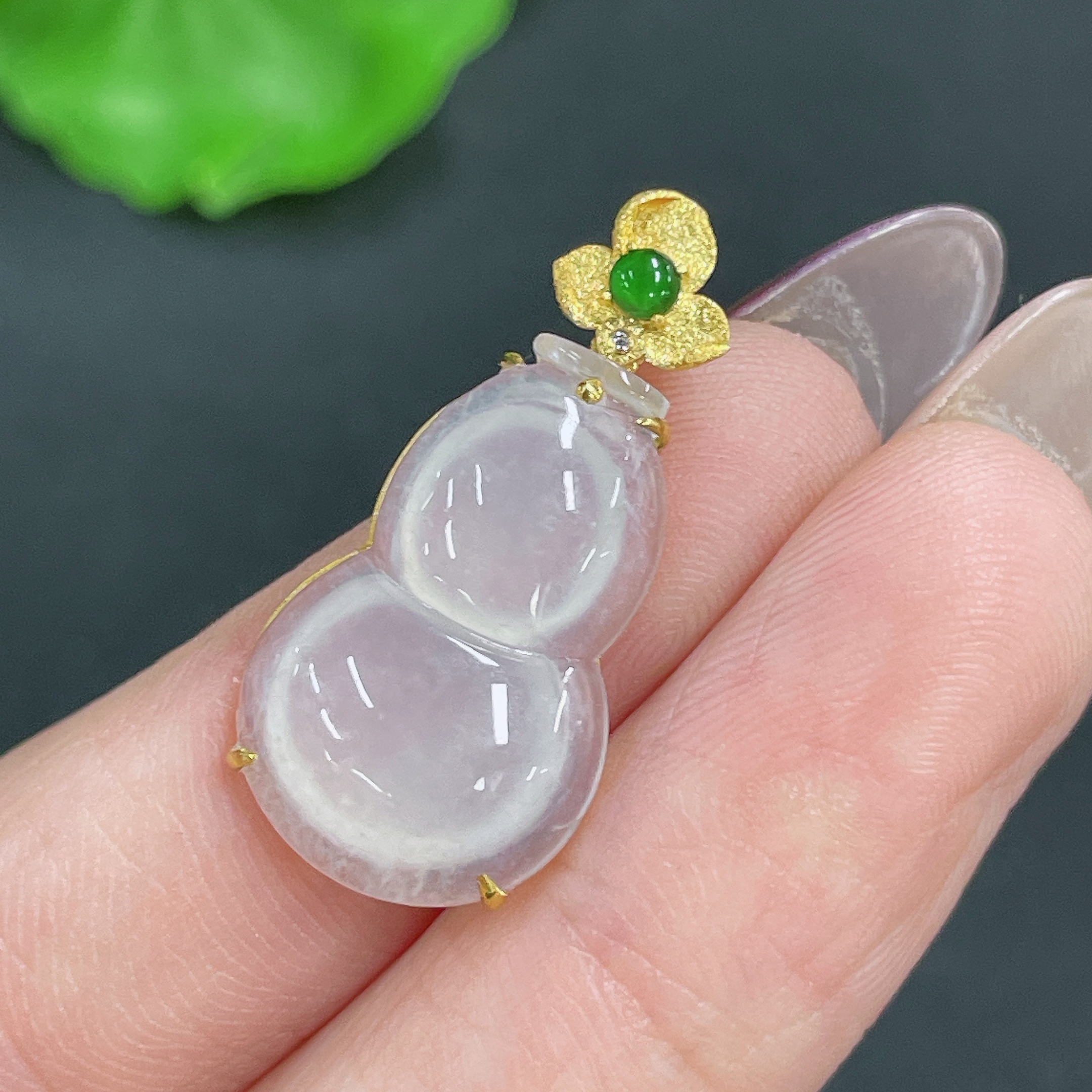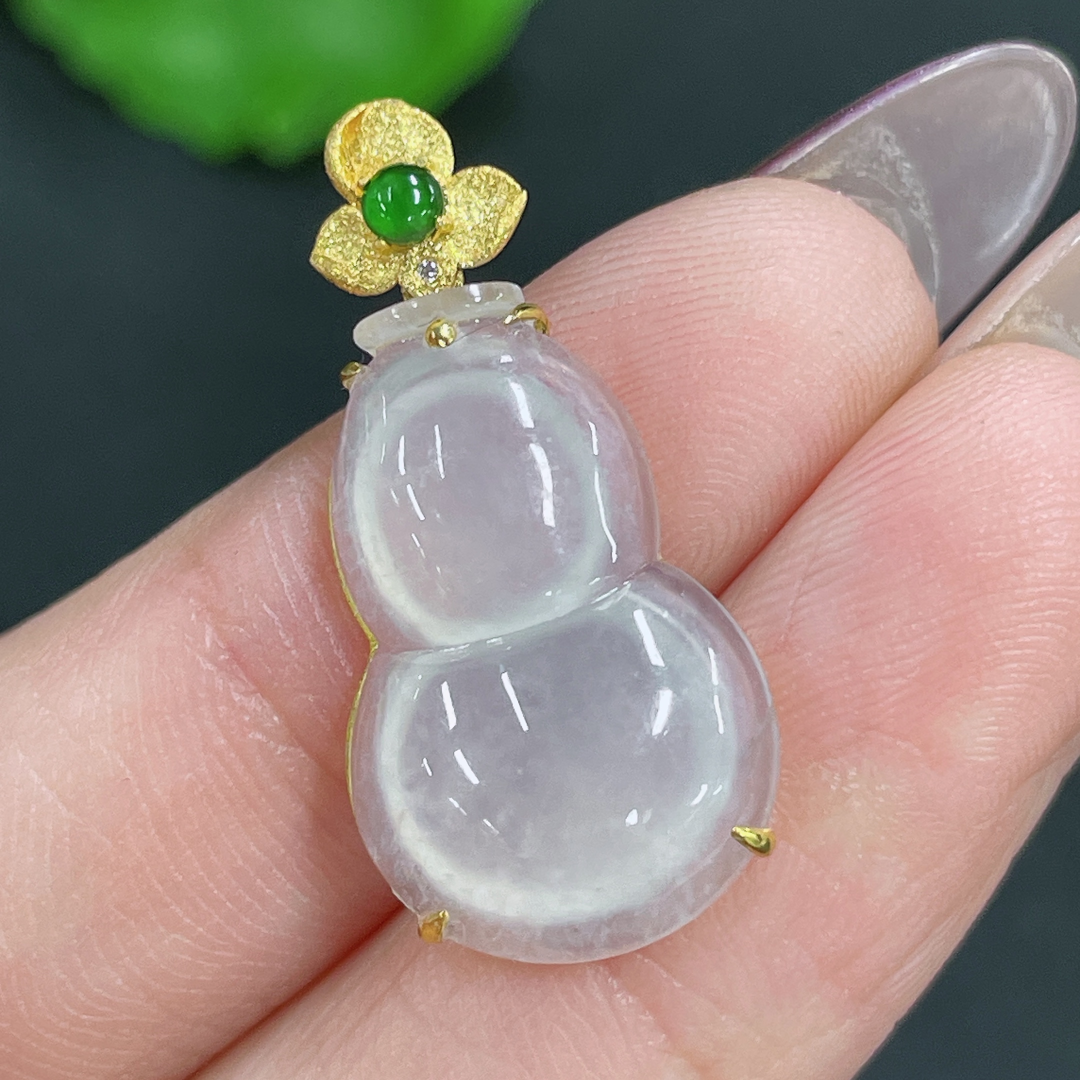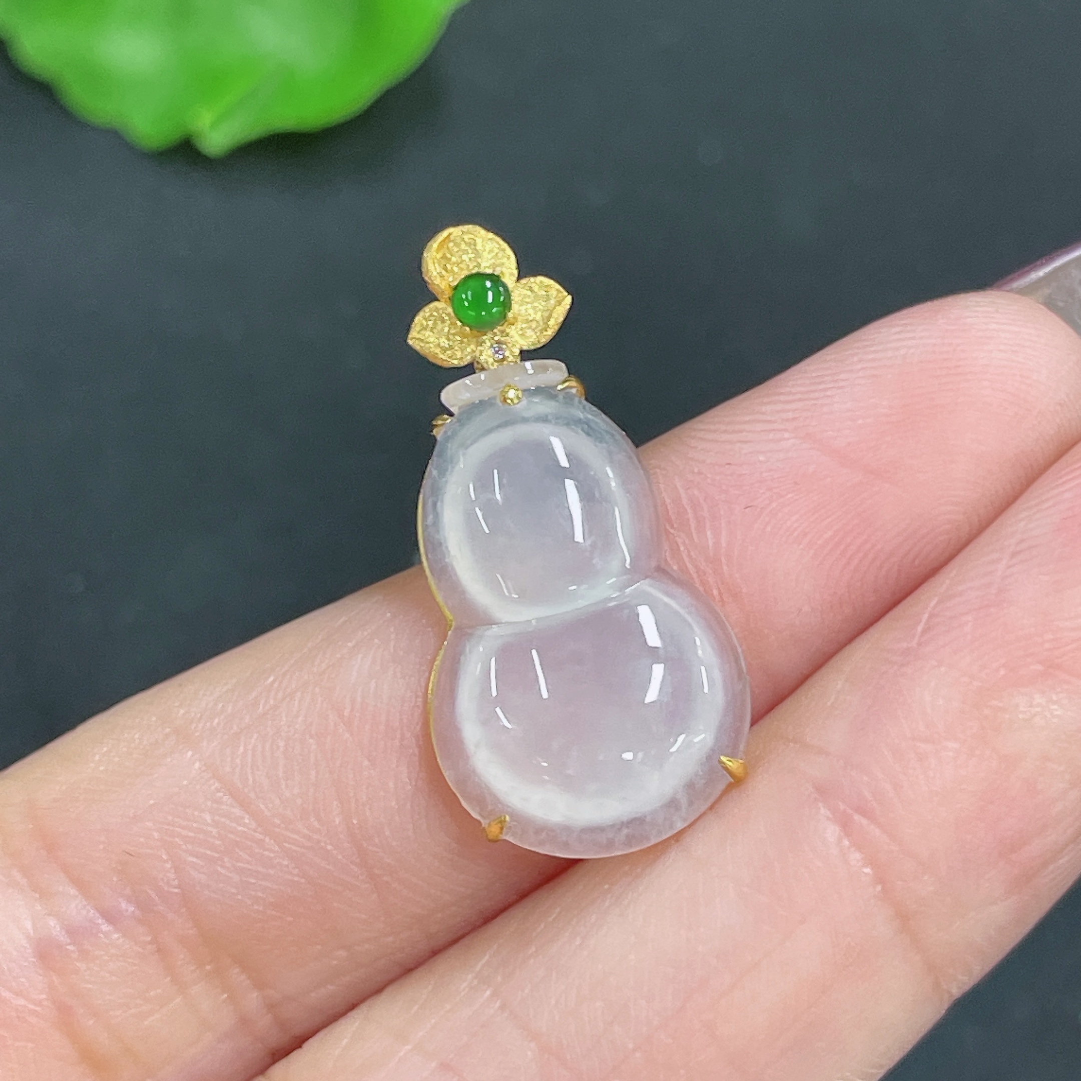 Jadeite Pendant Gourd 18k Gold Inlaid No Diamond Total Weight Approx. 1.99g