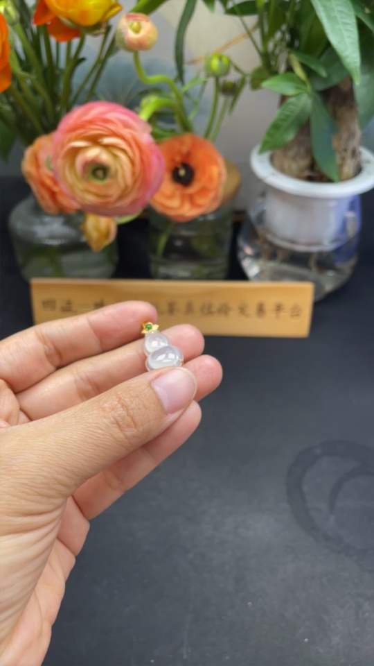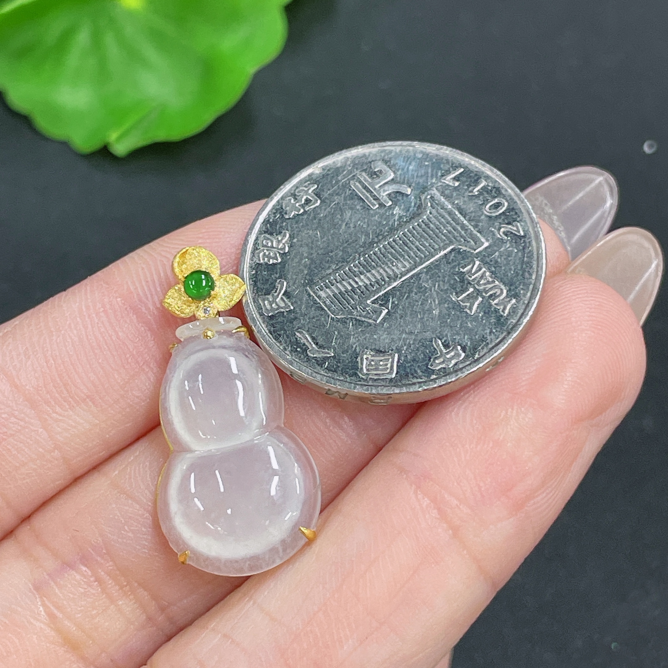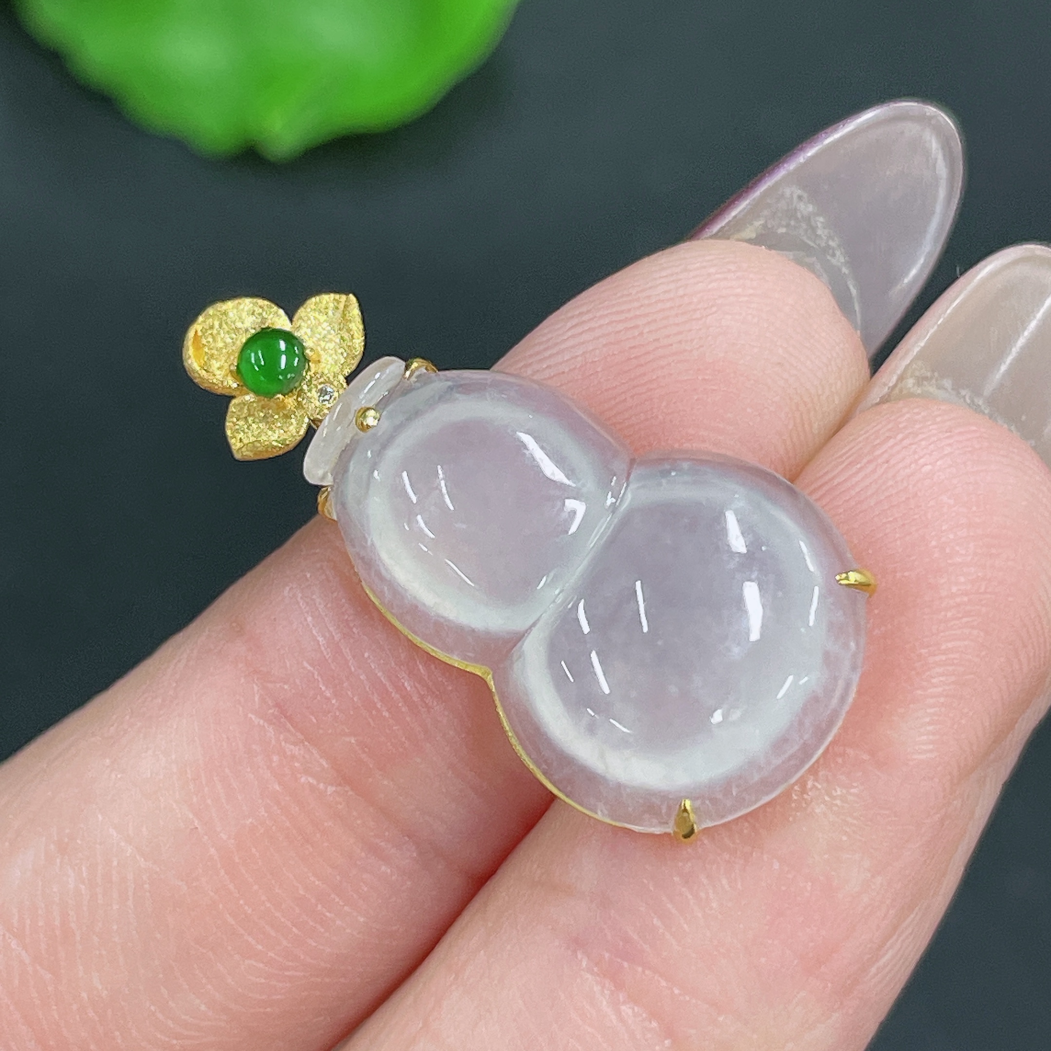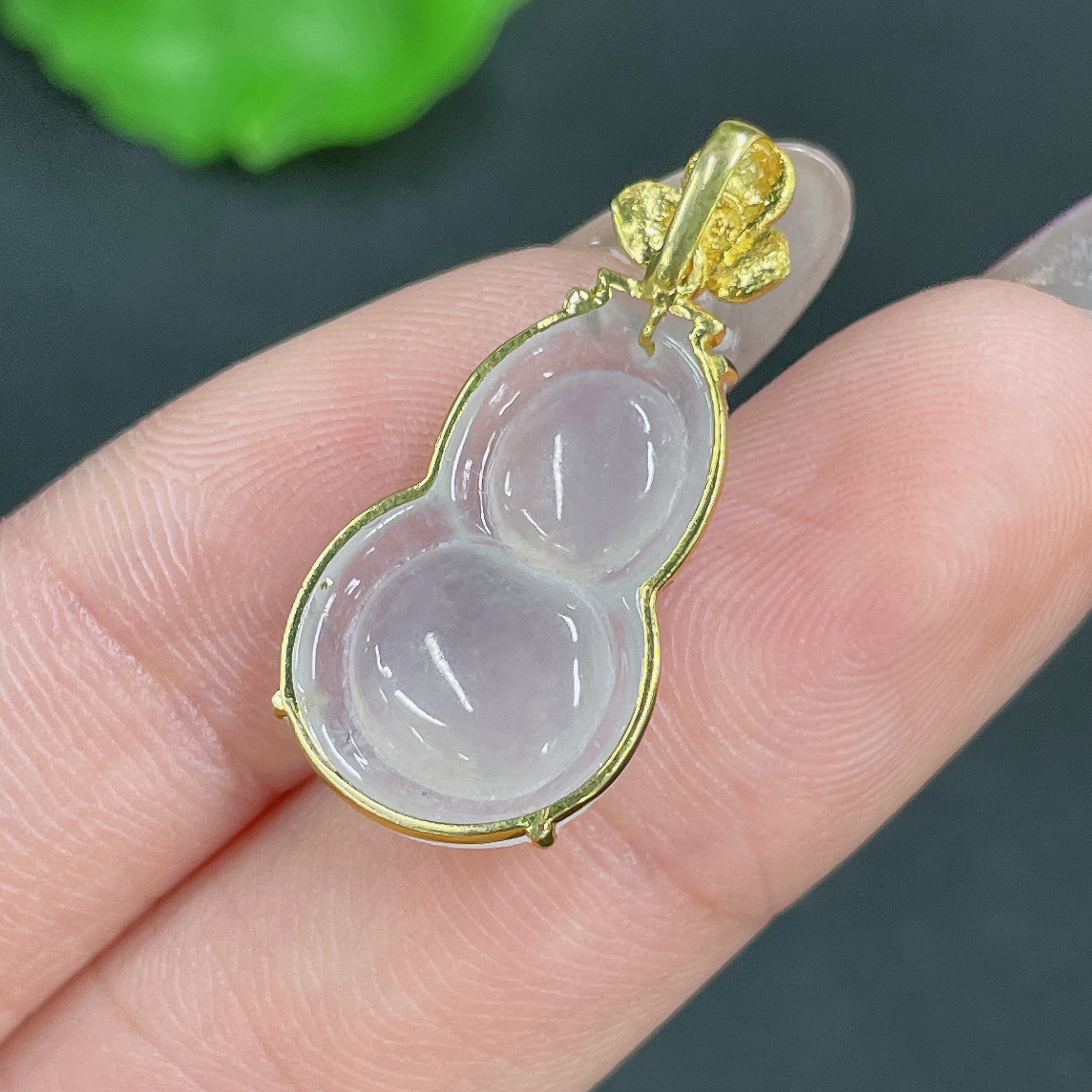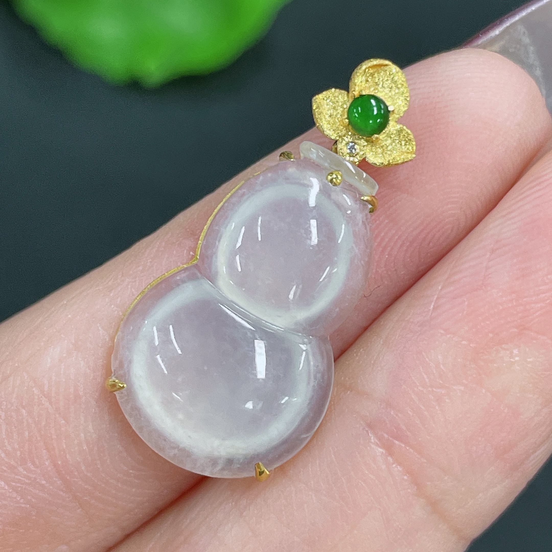 Jadeite Pendant Gourd 18k Gold Inlaid No Diamond Total Weight Approx. 1.99g