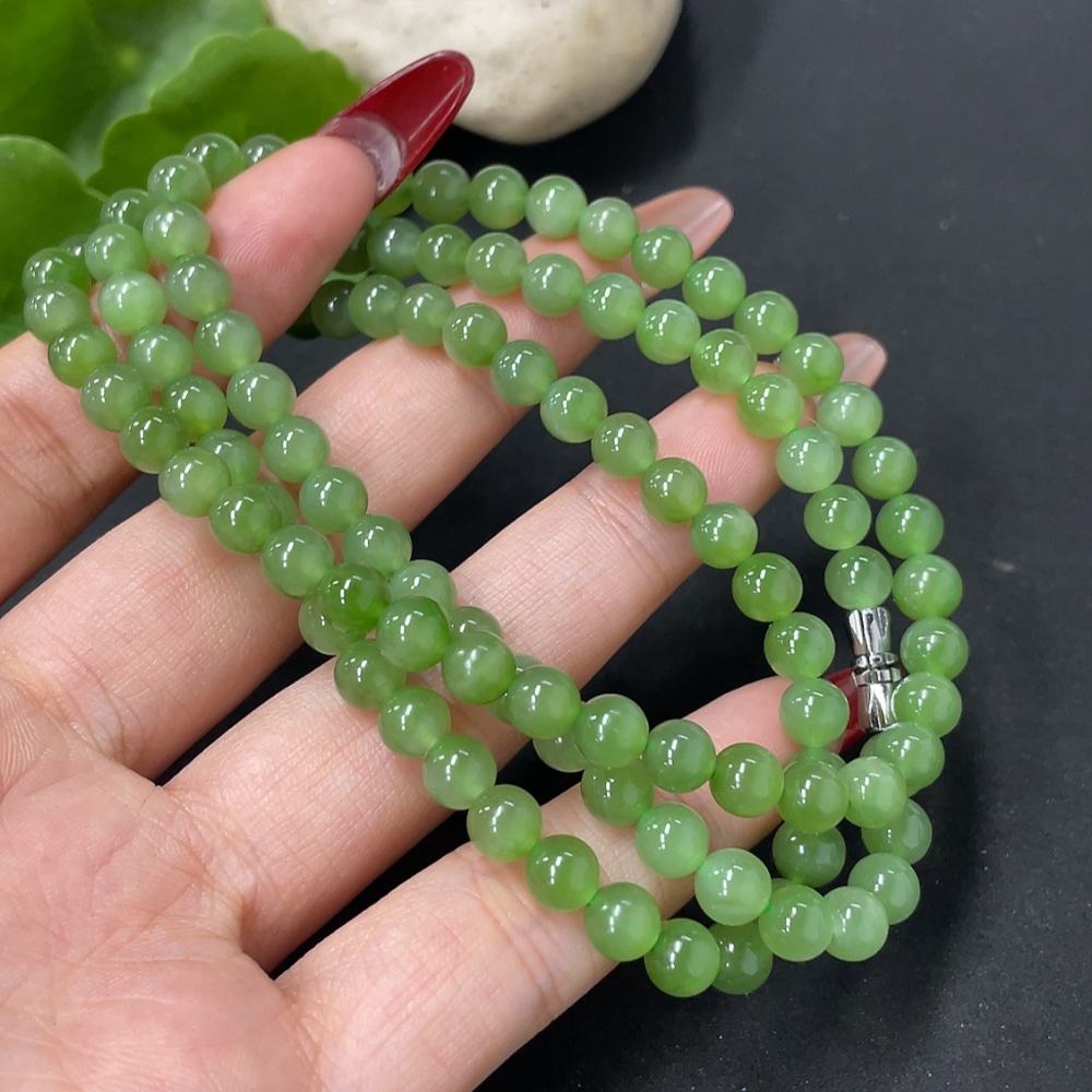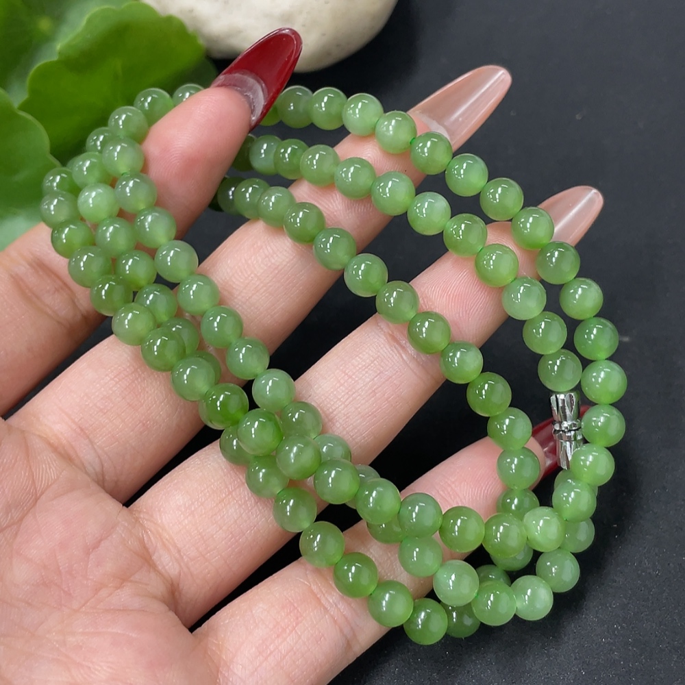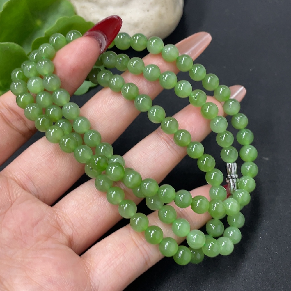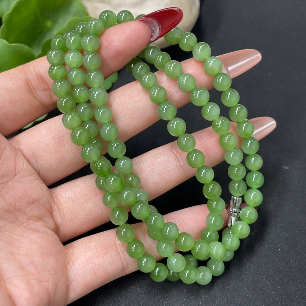 Hetian Jade Bead Necklace, approx. 5.8mm, total weight approx. 36.2g