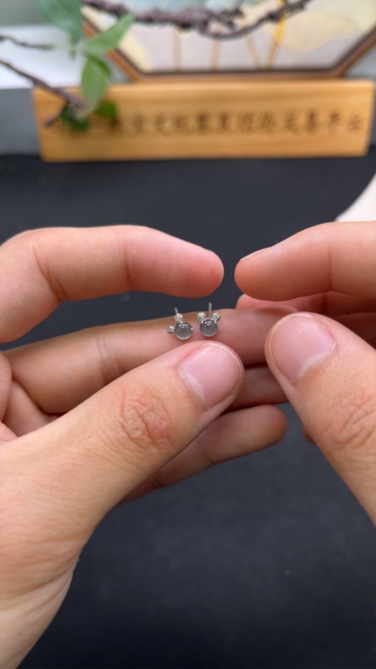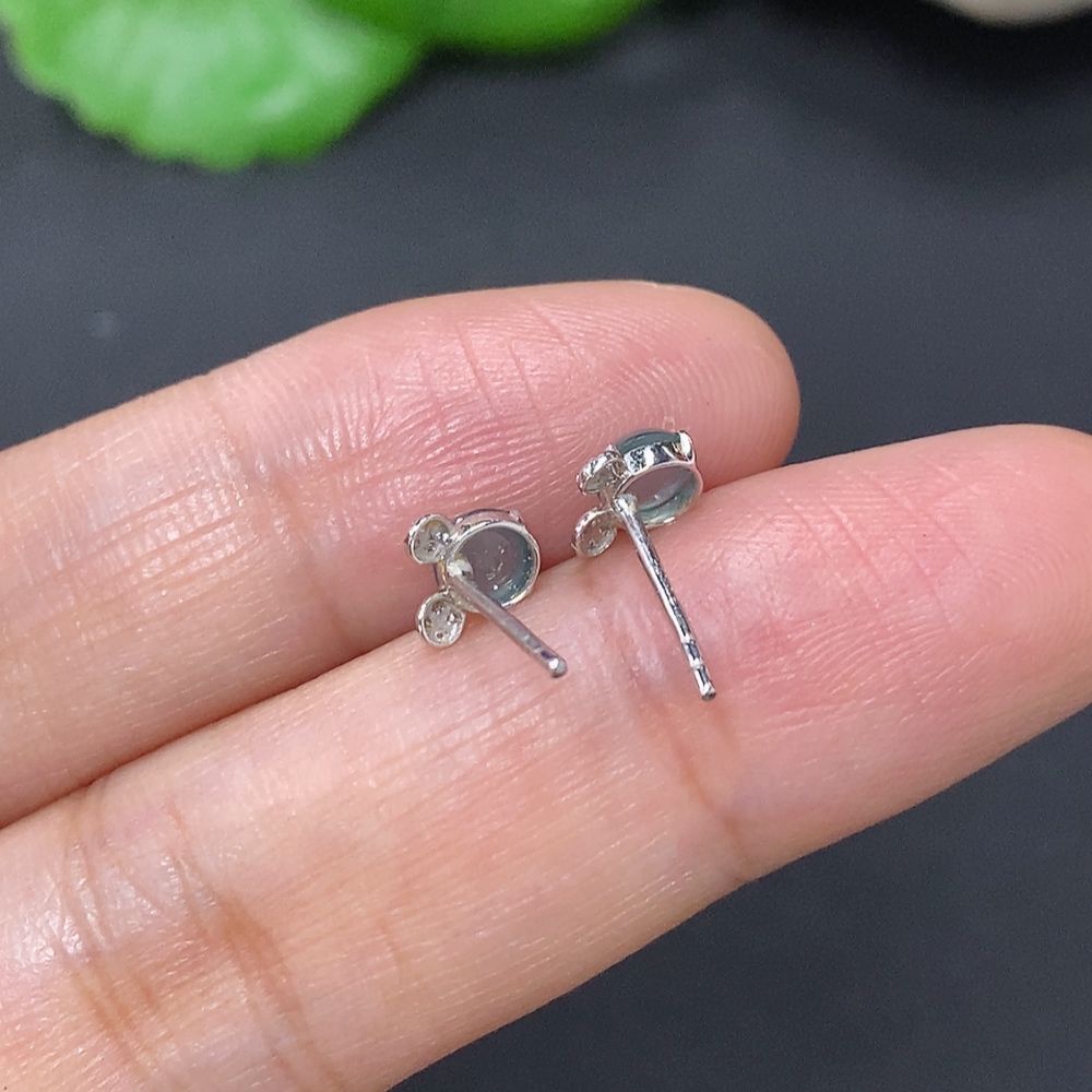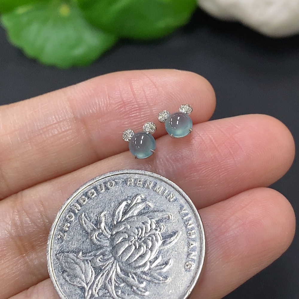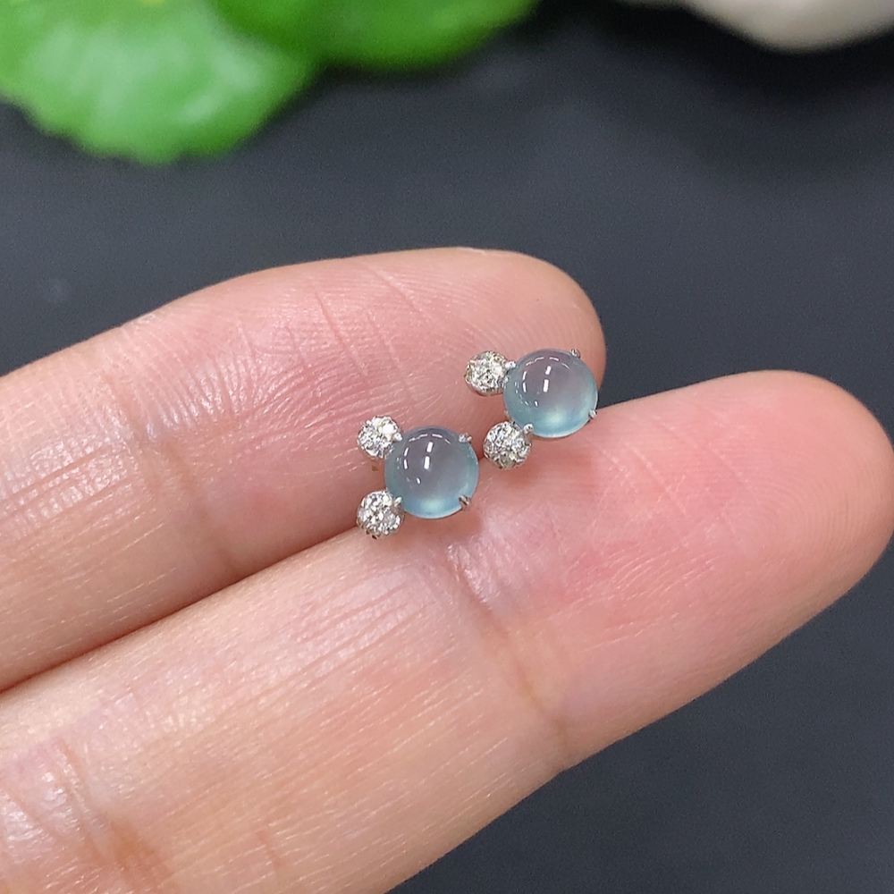 Jadeite cabochon ear studs in 18K gold, total weight approximately 0.5g (excluding ear stoppers) with diamond accents